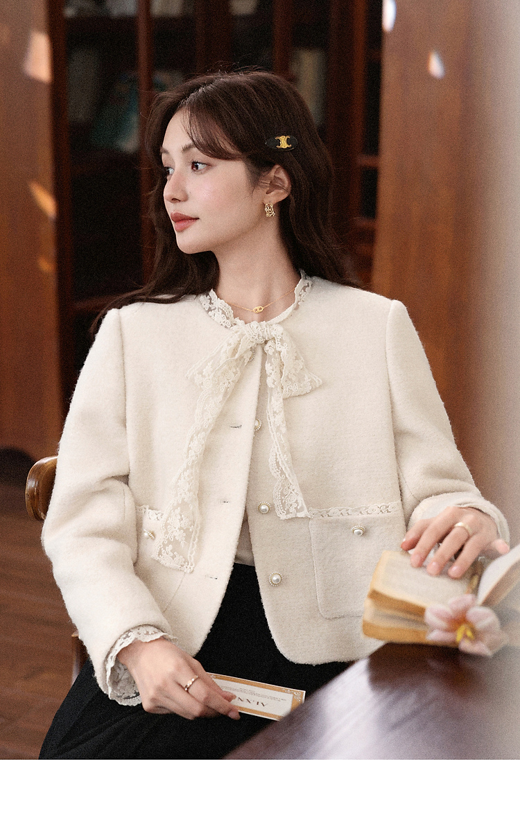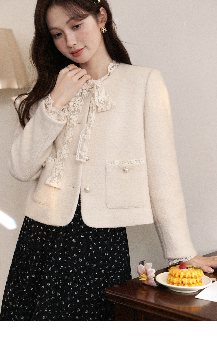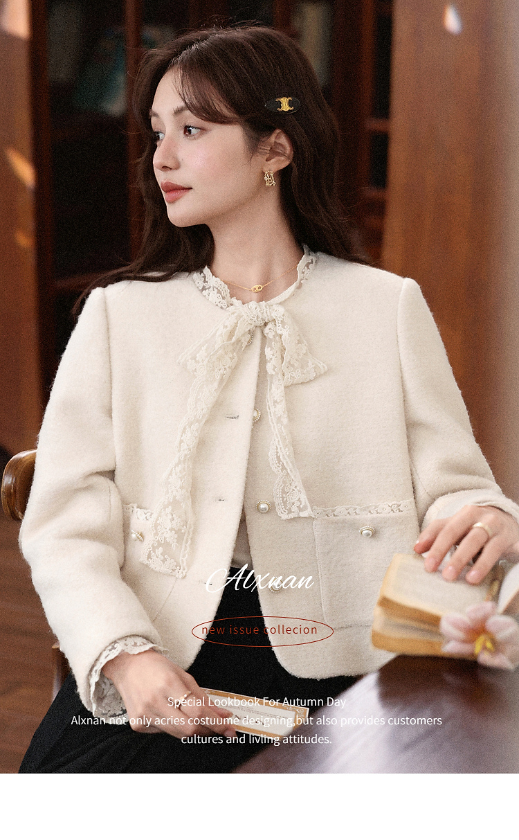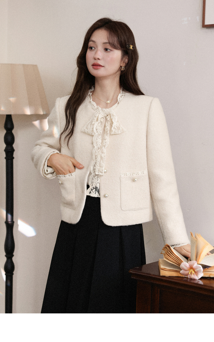 鹿向南「温赫蒂尔」杏色小香风短款外套女气质高级感洋气开衫上衣