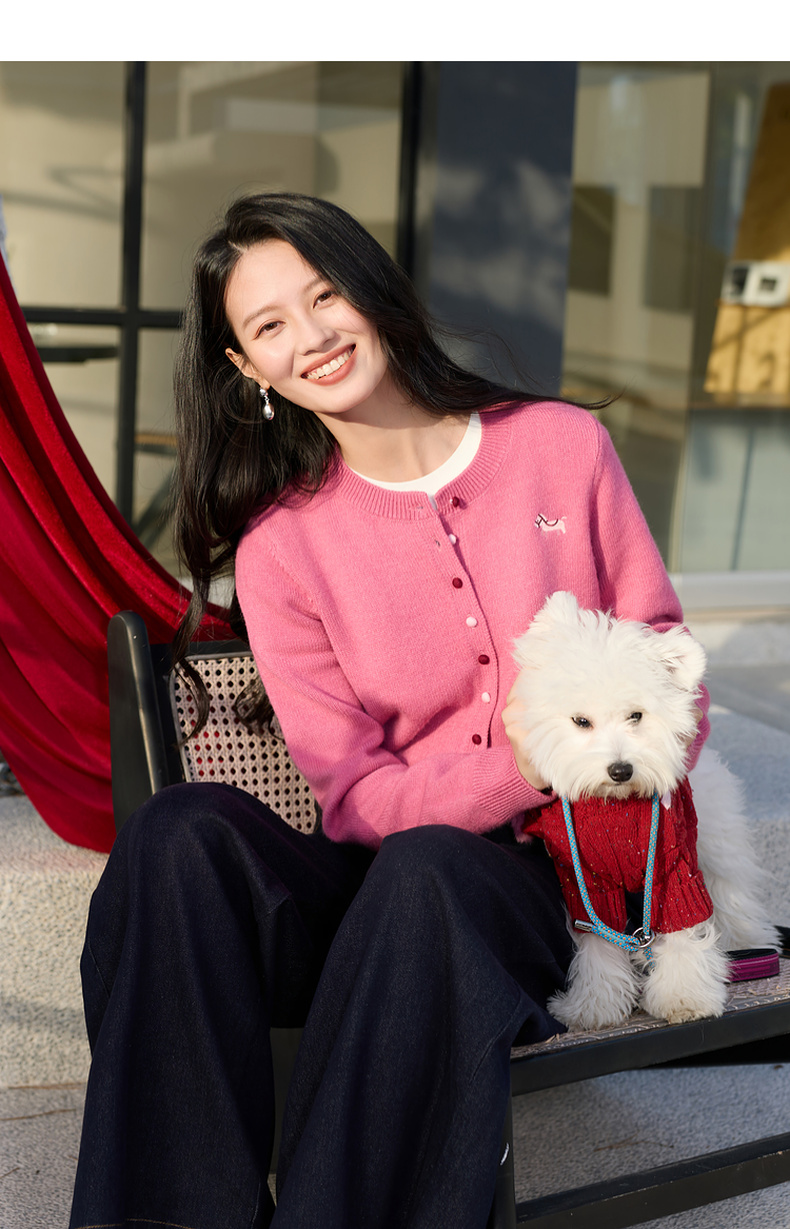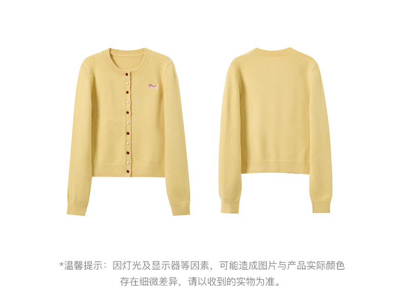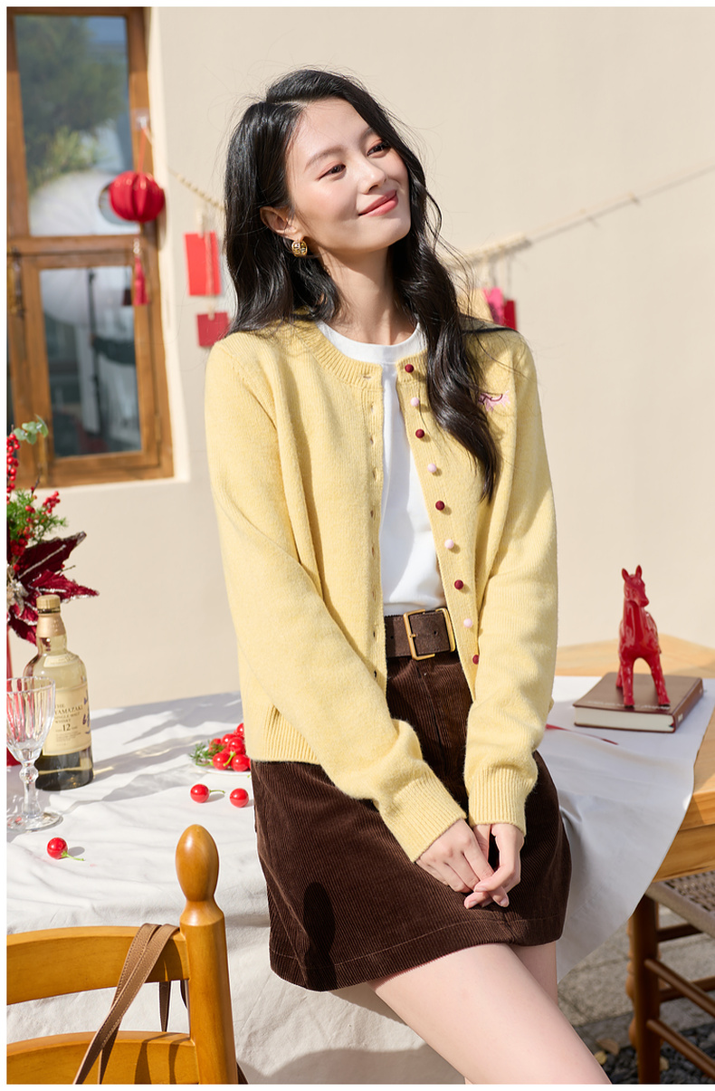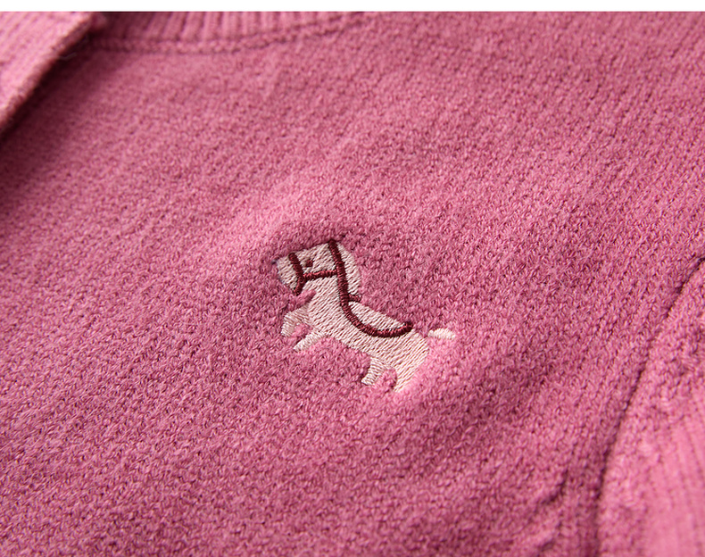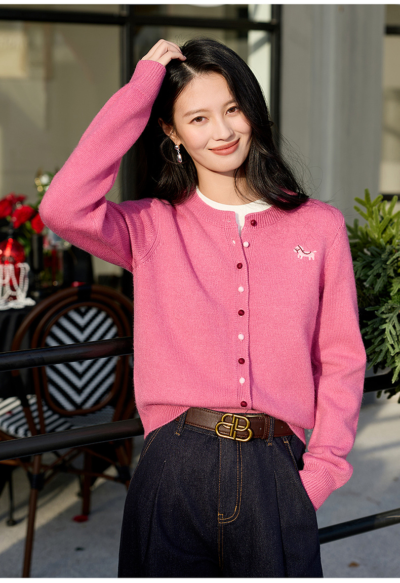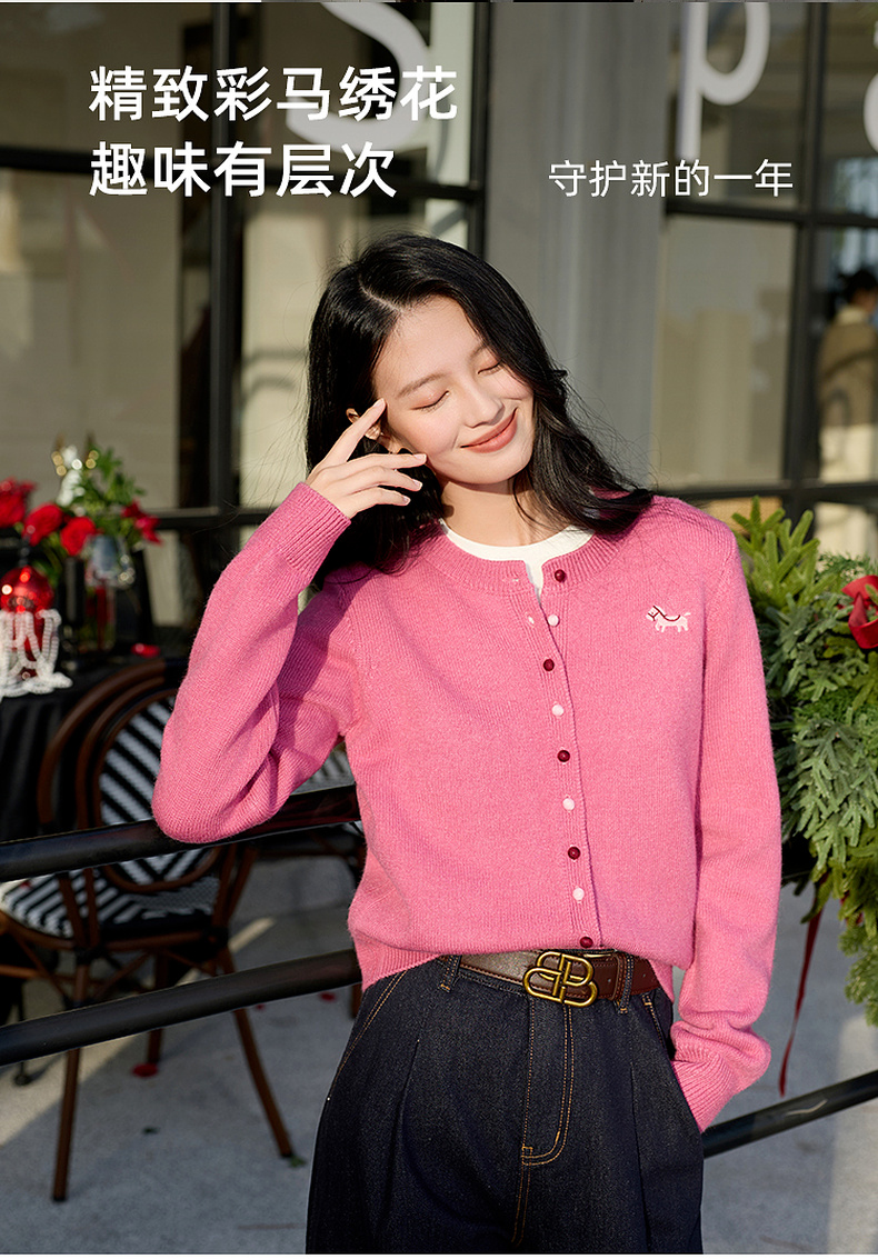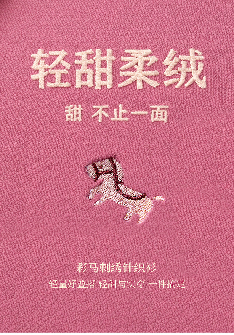 三彩2026春季新款小马绣花针织衫长袖圆领开衫外套上衣S