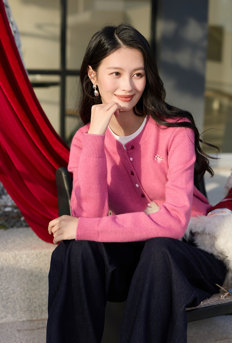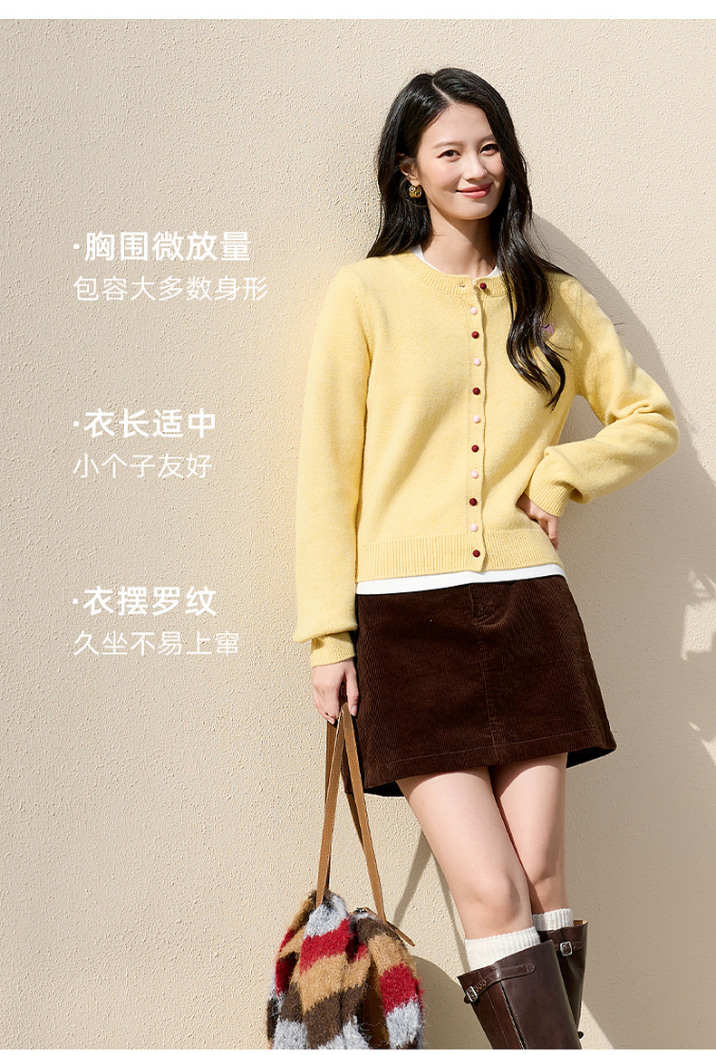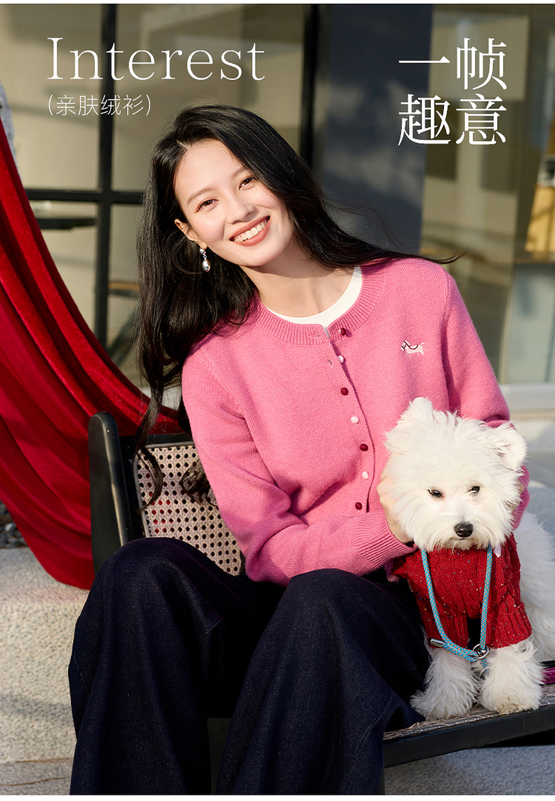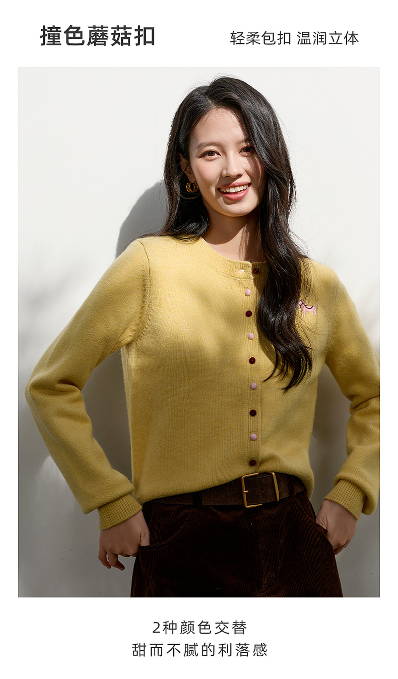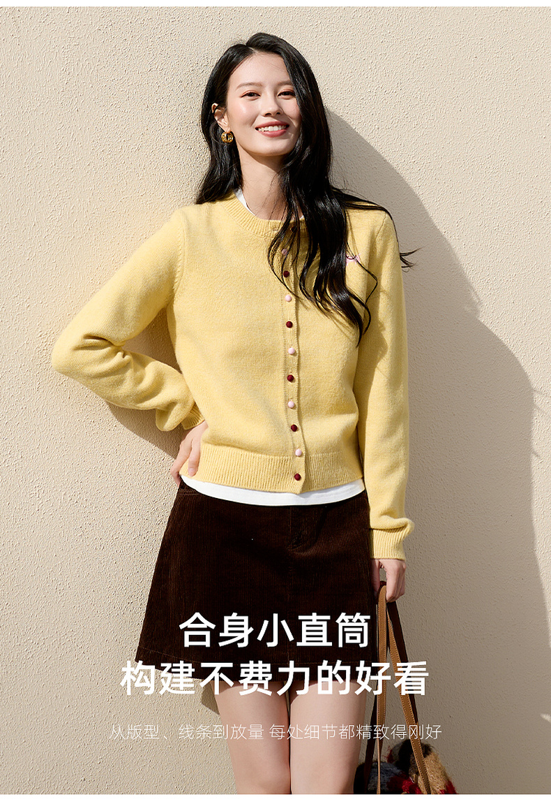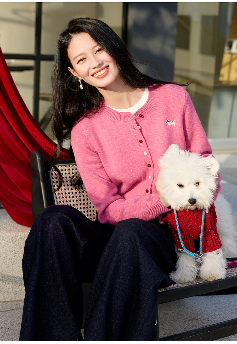 三彩2026春季新款小马绣花针织衫长袖圆领开衫外套上衣S
