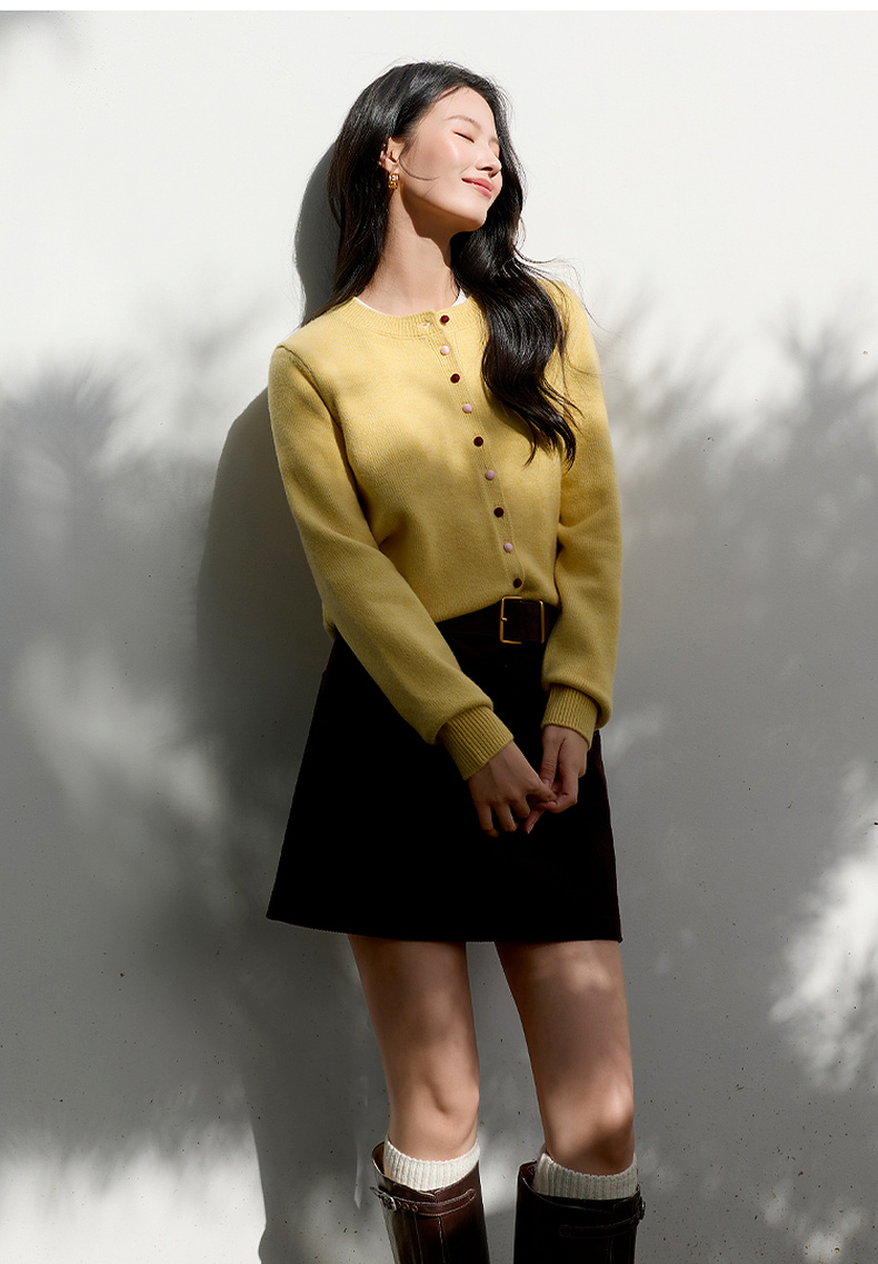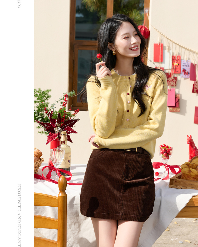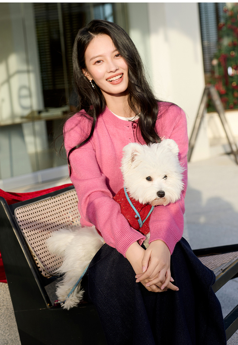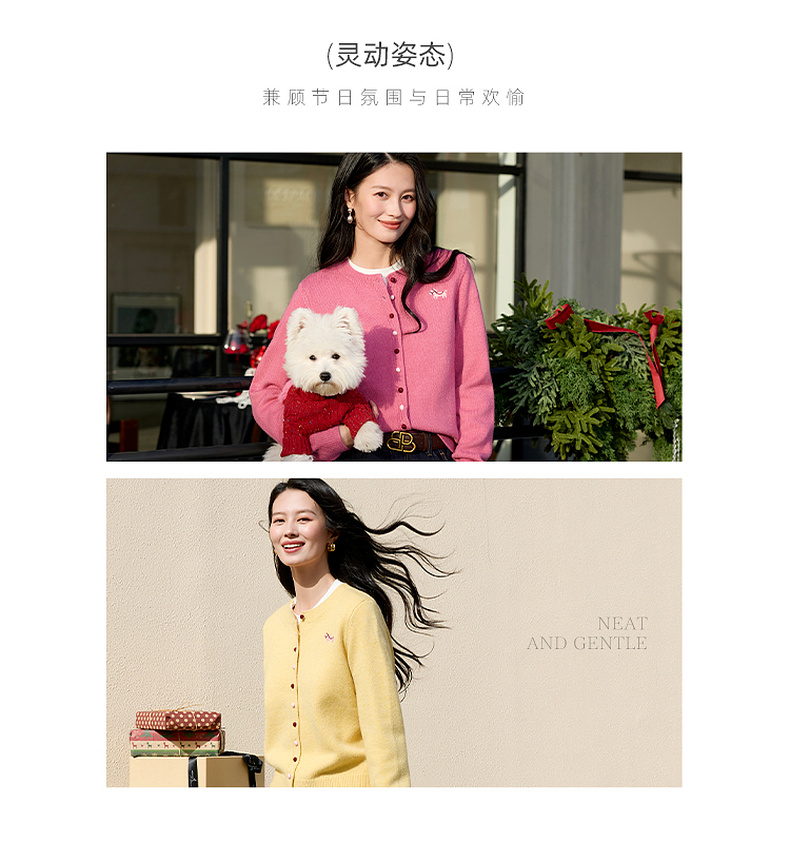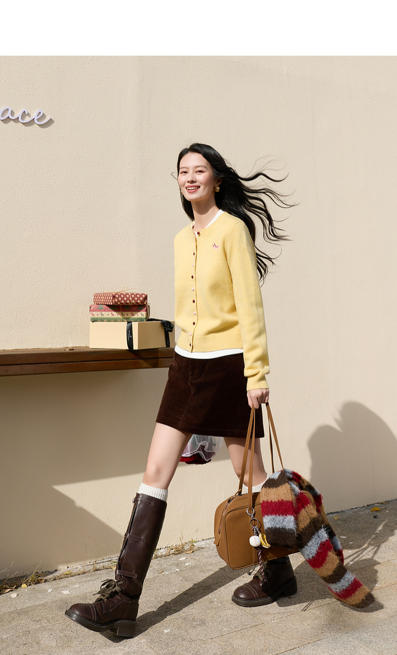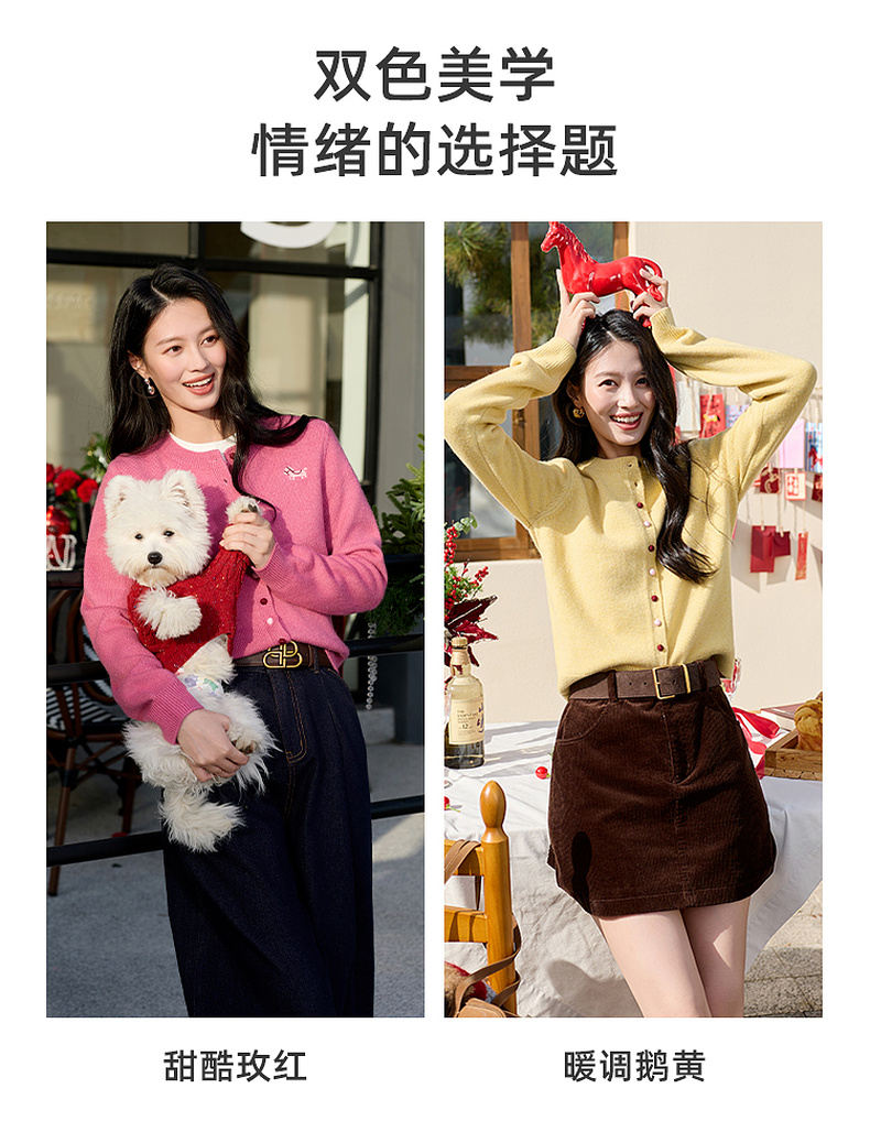 三彩2026春季新款小马绣花针织衫长袖圆领开衫外套上衣S
