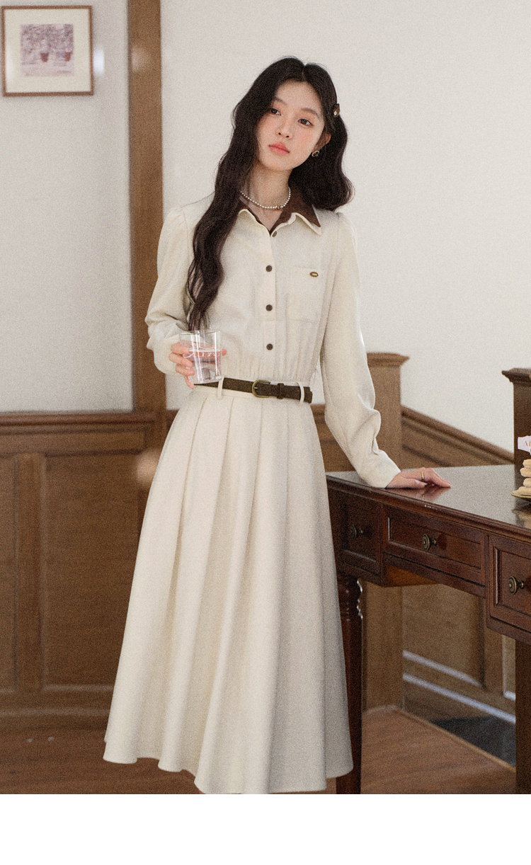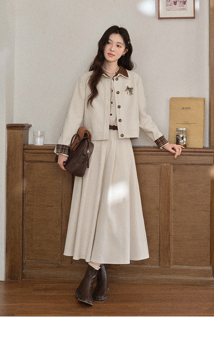 鹿向南「慢调巴黎」小众短款外套女秋冬米白色假两件连衣裙套装
