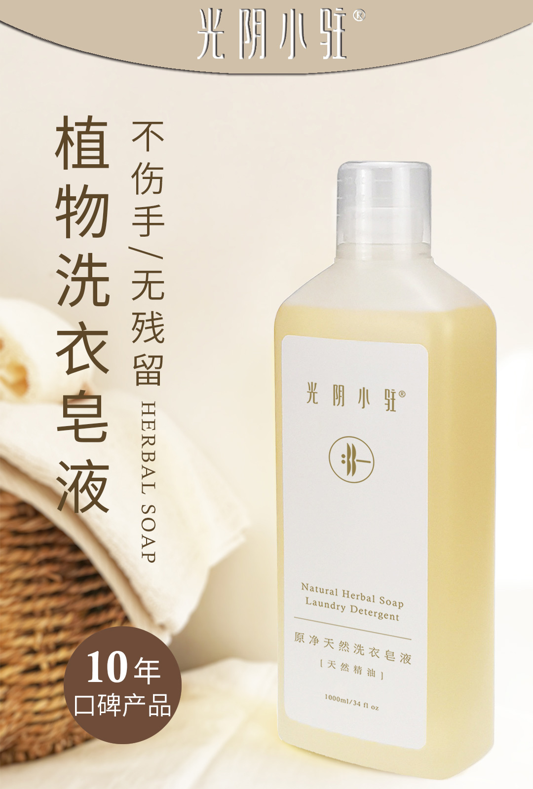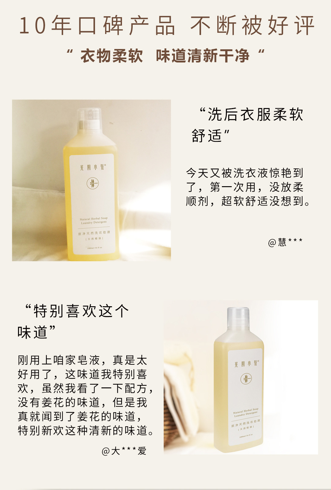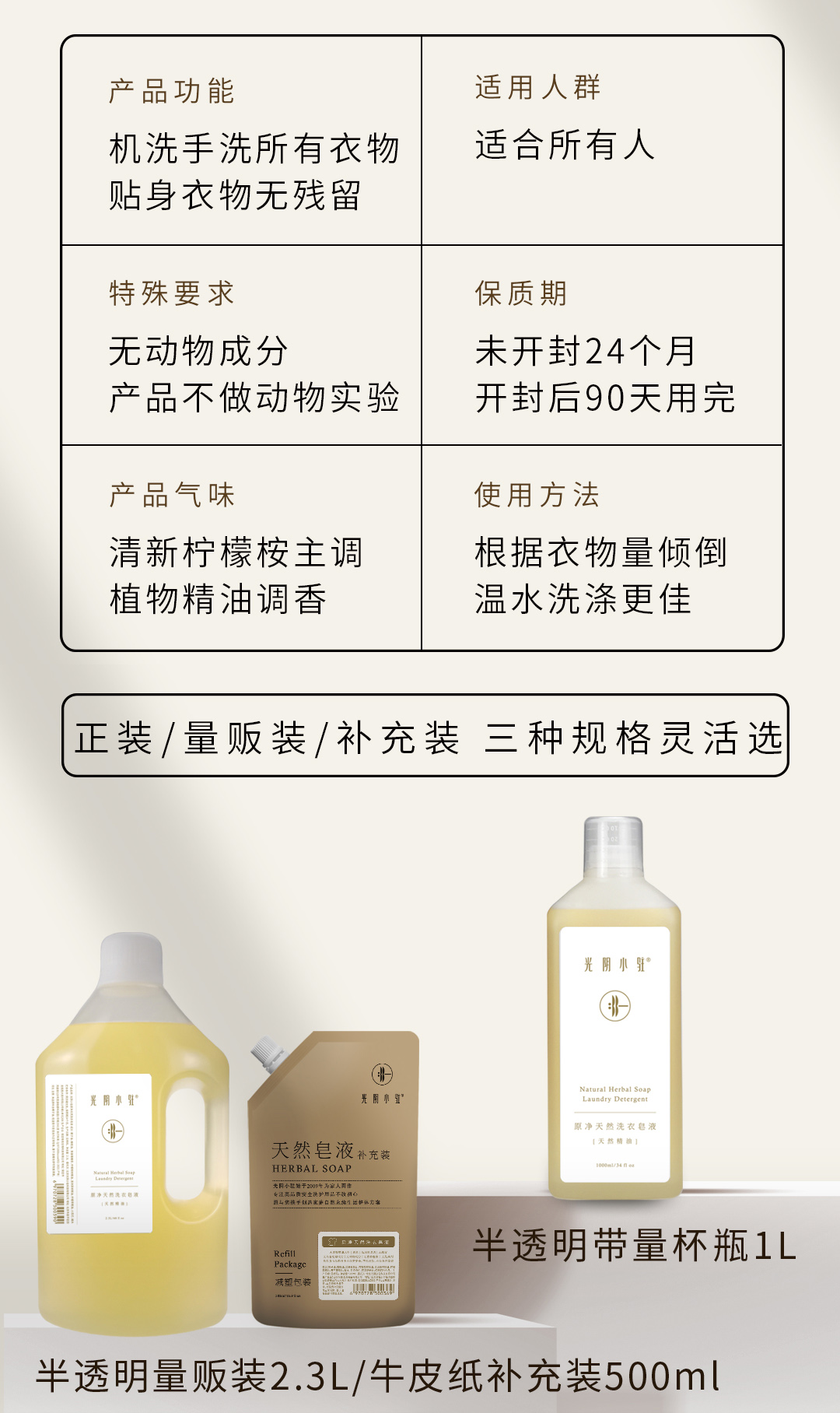 S光阴小驻原净天然洗衣皂液 2.3L减塑量贩装 不伤手 无残留 淡淡花香 自然柔软