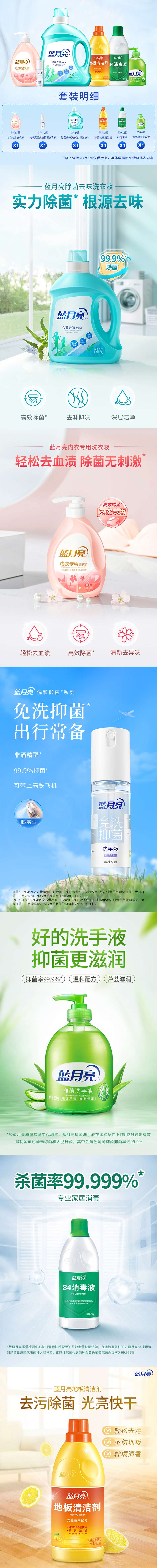 蓝月亮全面防疫套包(2kg除菌洗衣液+50ml免洗+500g内衣洗+600g84消毒液+600g地板水+500g芦瓶)