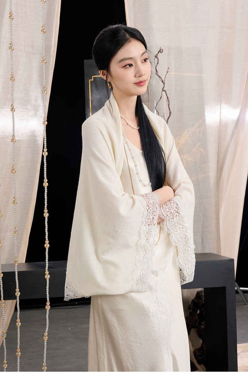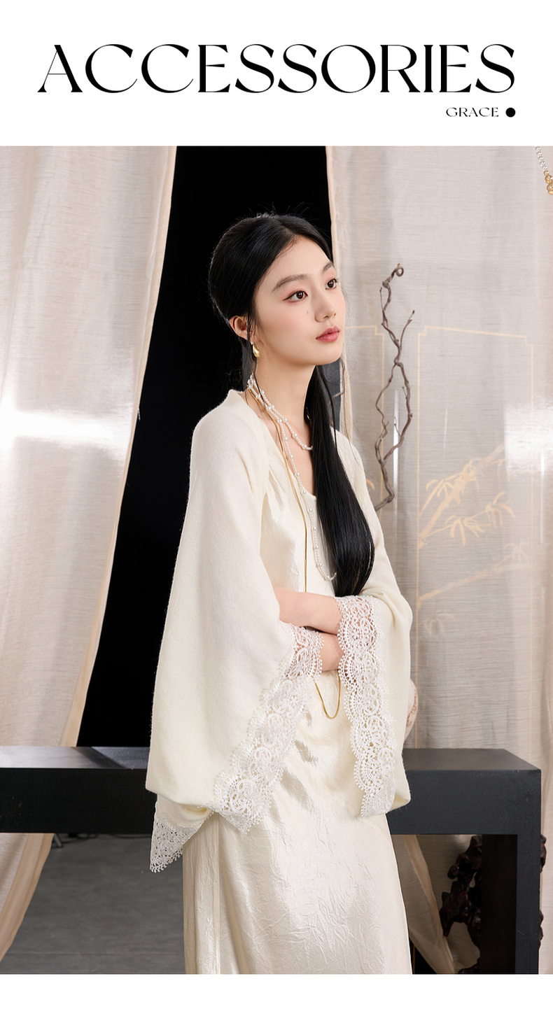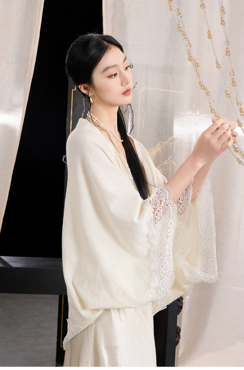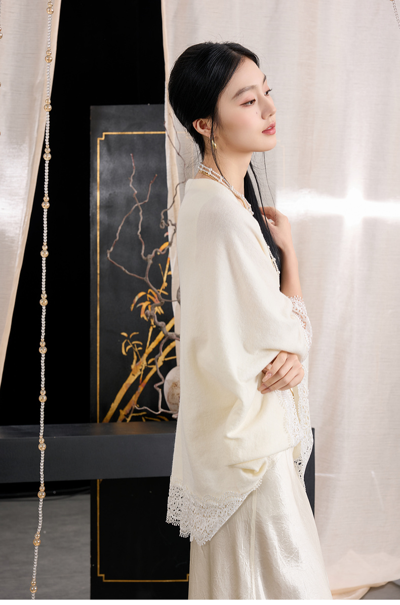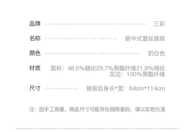三彩2026新款【国风系列】外搭针织披肩蕾丝简约慵懒高级时尚