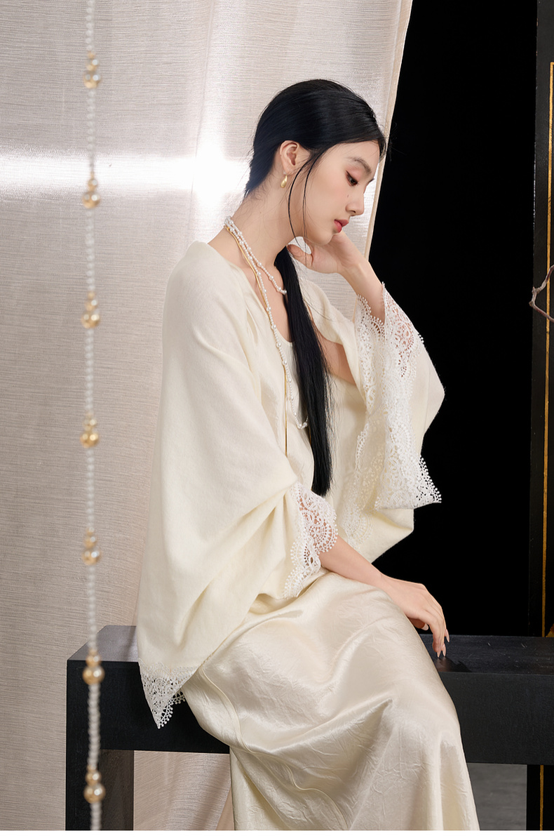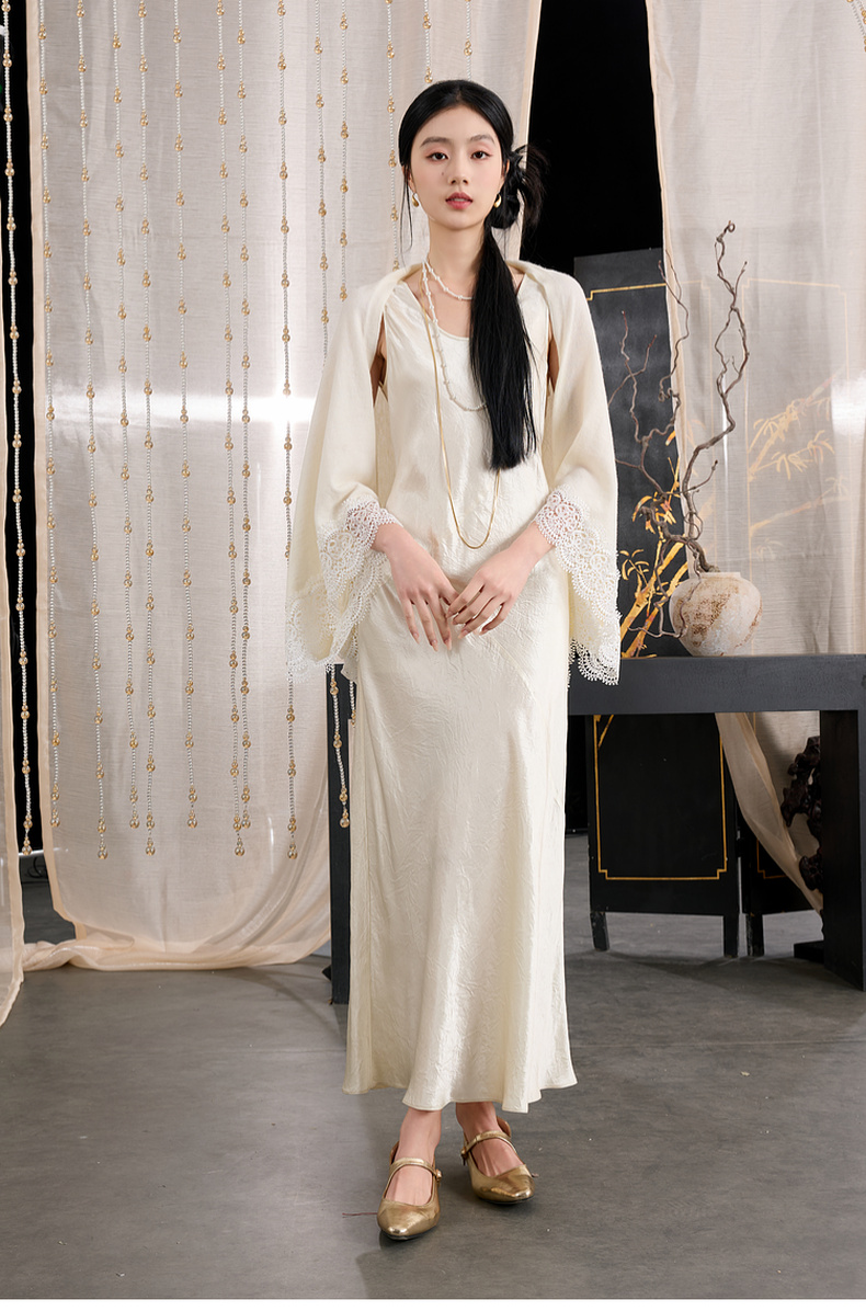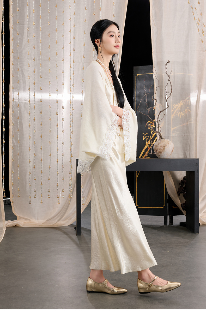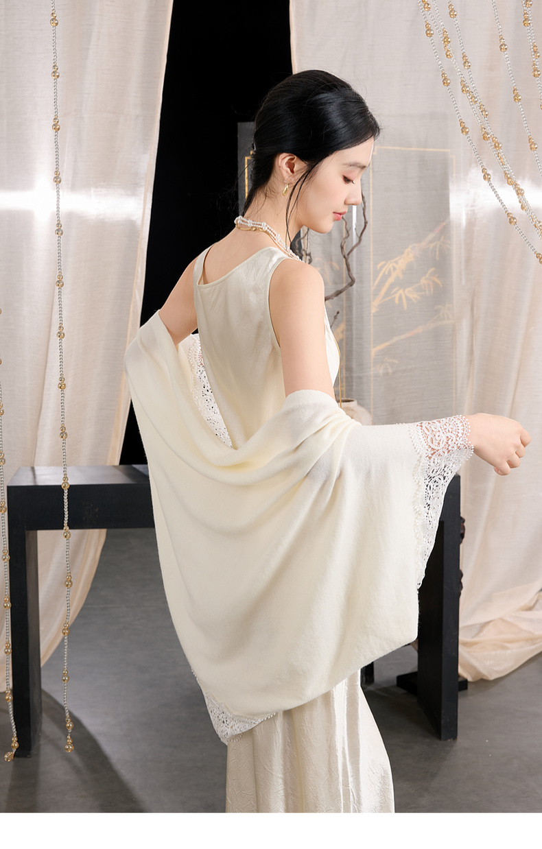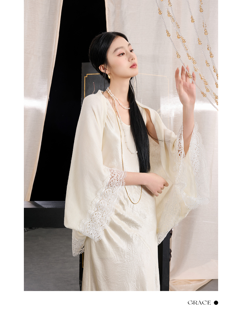 三彩2026新款【国风系列】外搭针织披肩蕾丝简约慵懒高级时尚
