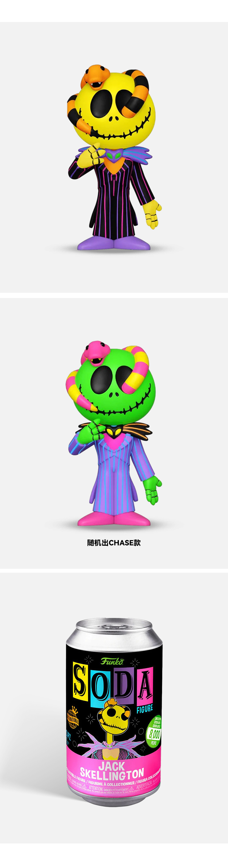Funko POP SODA苏打罐迪士尼圣诞夜惊魂骷髅杰克与蛇限定荧光款手办 64967