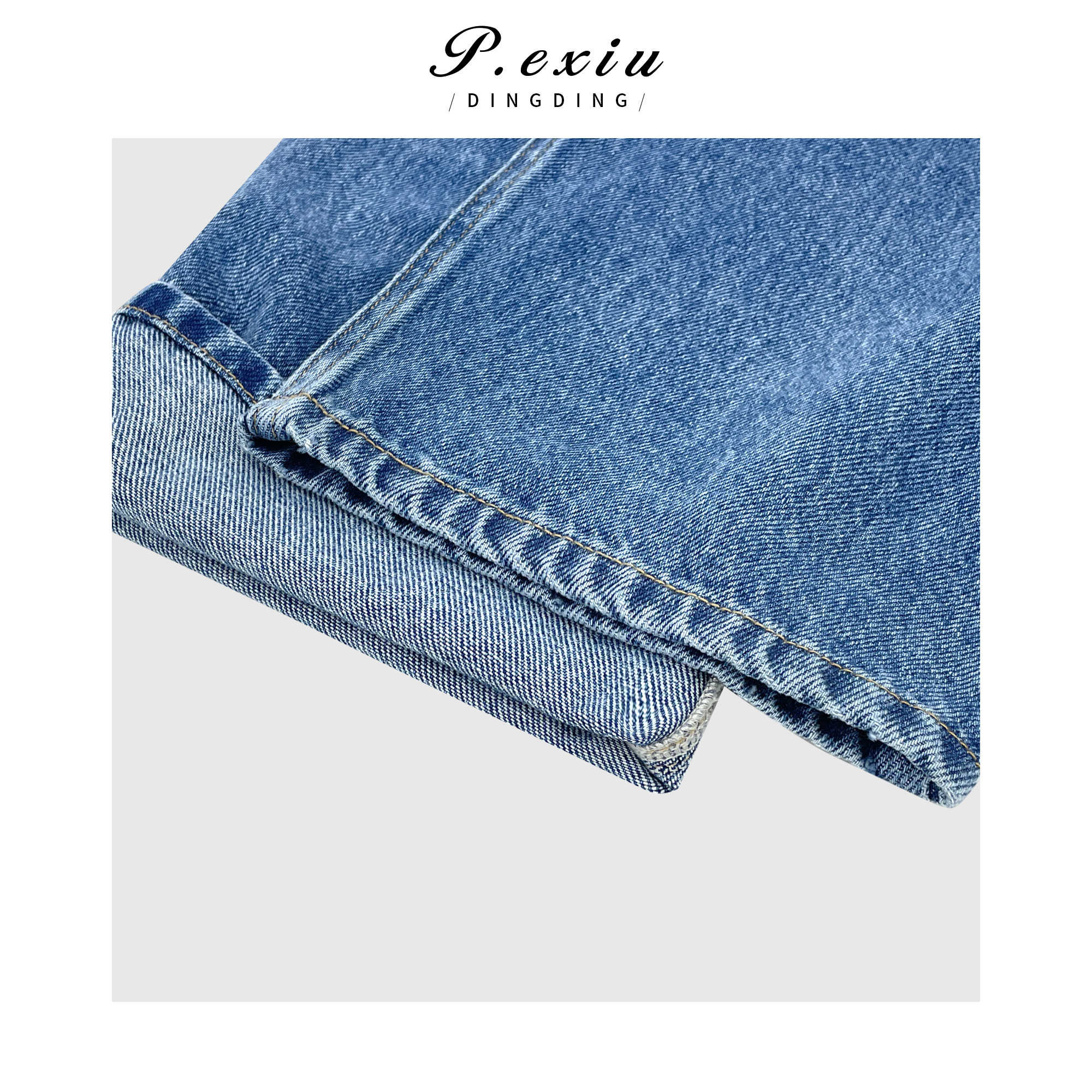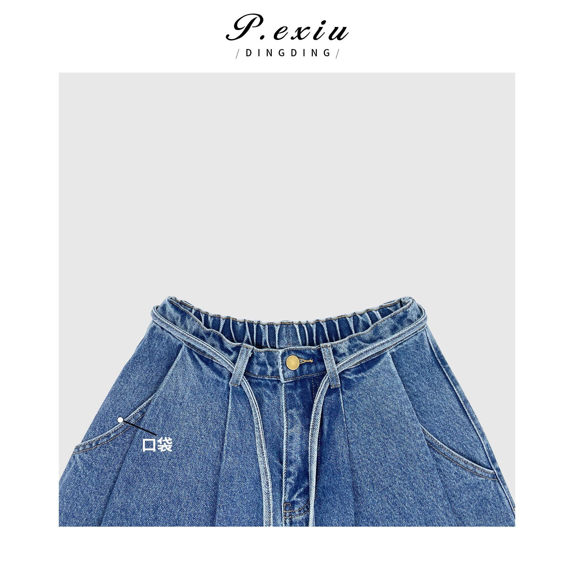 03-5潘依绣丁丁宠粉PanYiXiu/潘依绣韩系水洗松紧腰系带拖地直筒牛仔裤 D6176