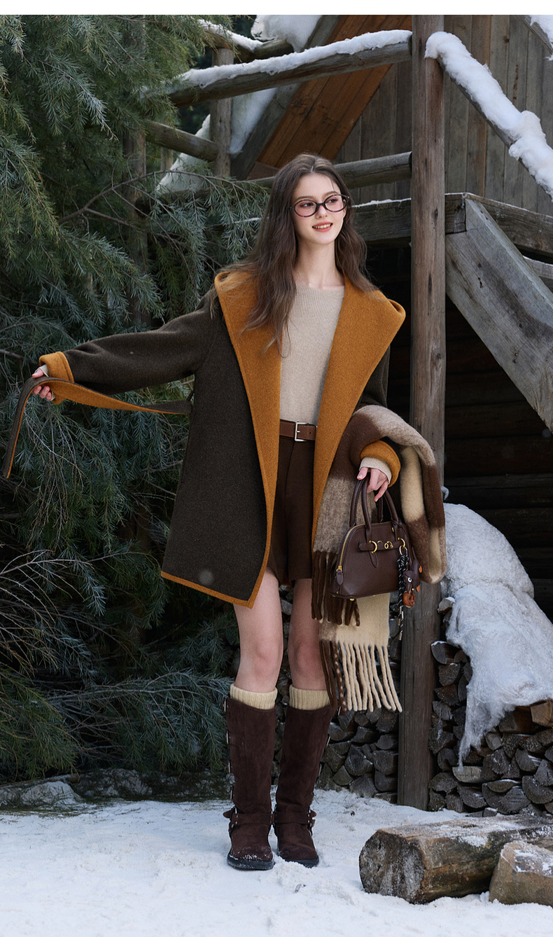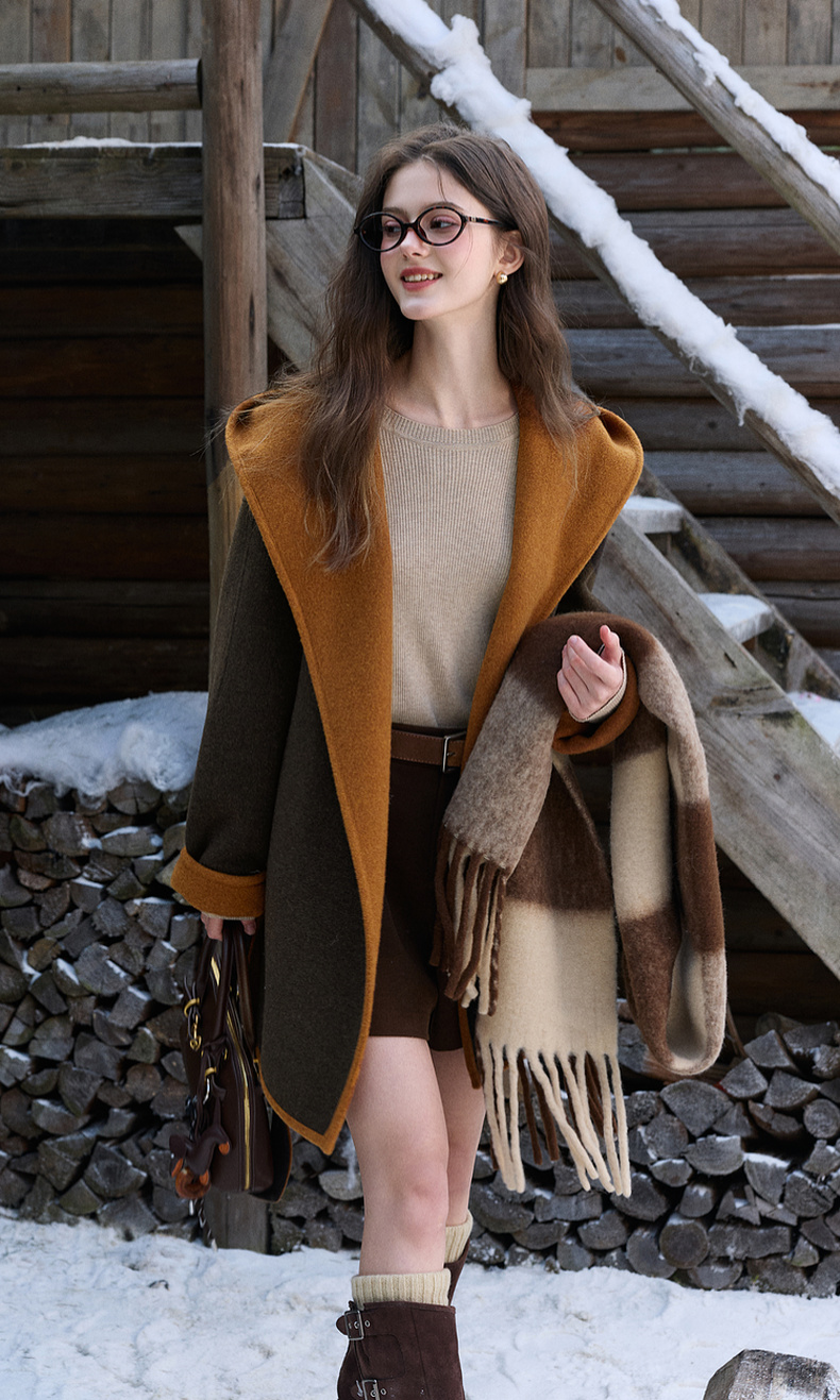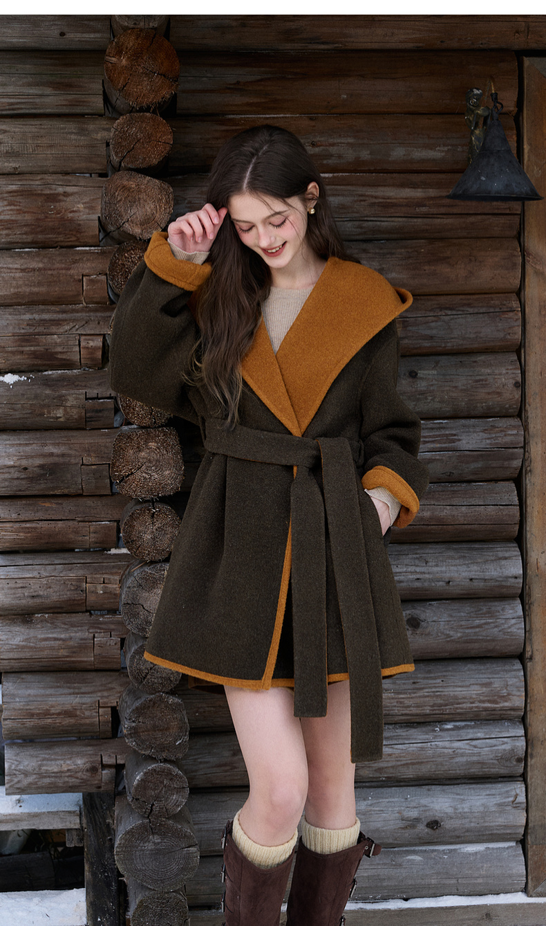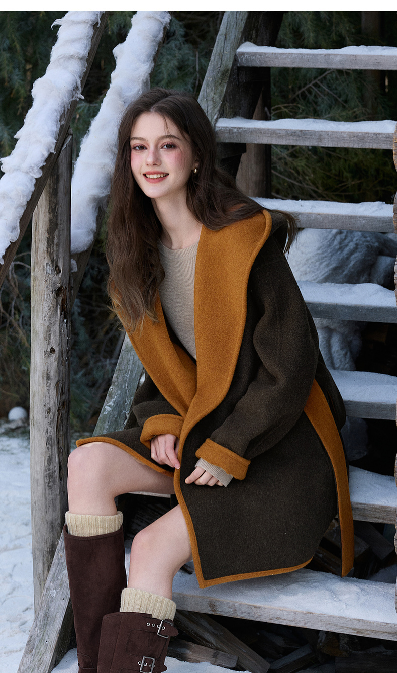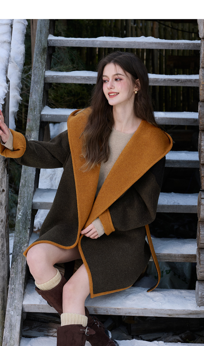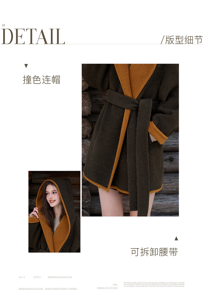 【绵羊毛】三彩2025冬季新款宽松中长双面呢大衣毛呢外套连帽M