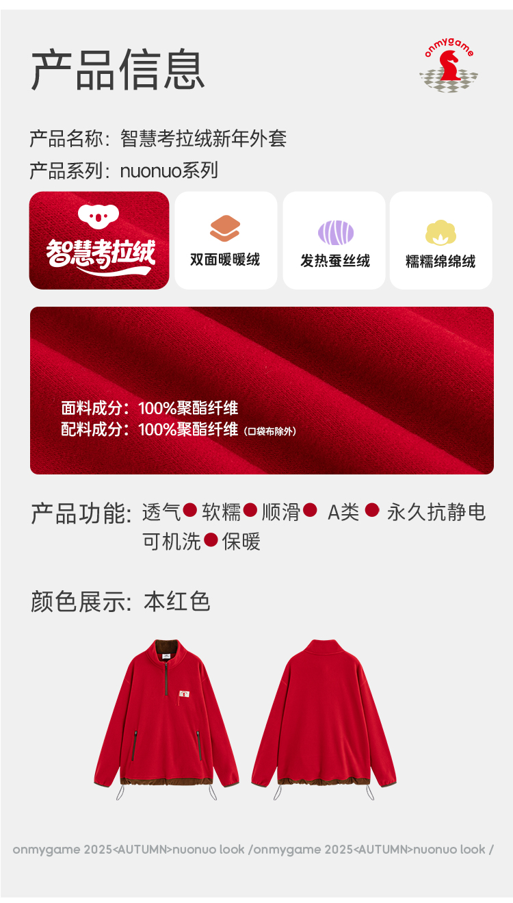 onmygame新年限定【小马当先】儿童糯糯衣保暖卫衣新年红上衣26新款