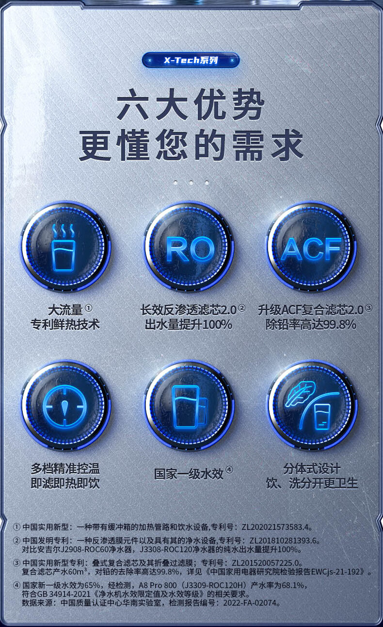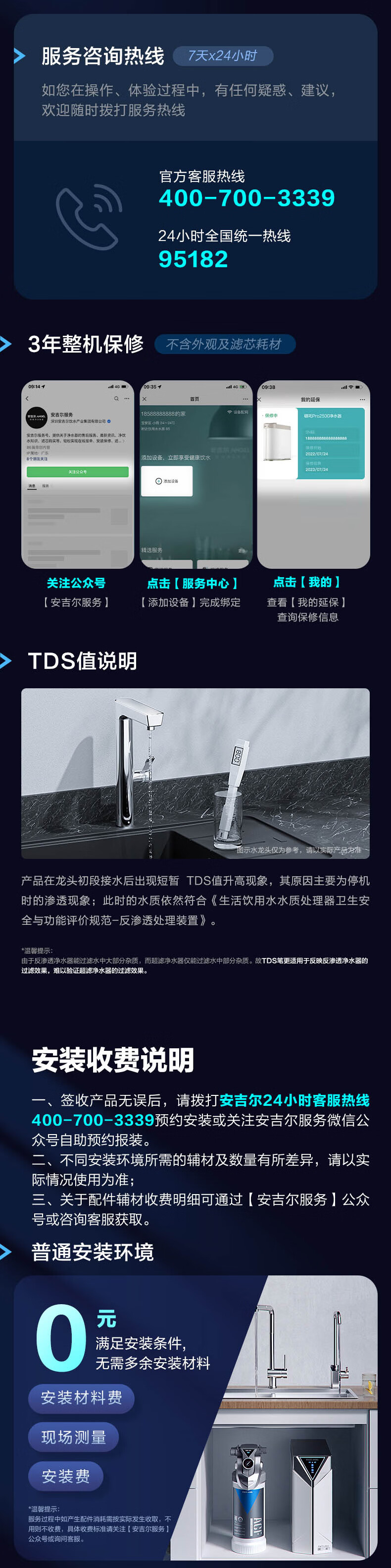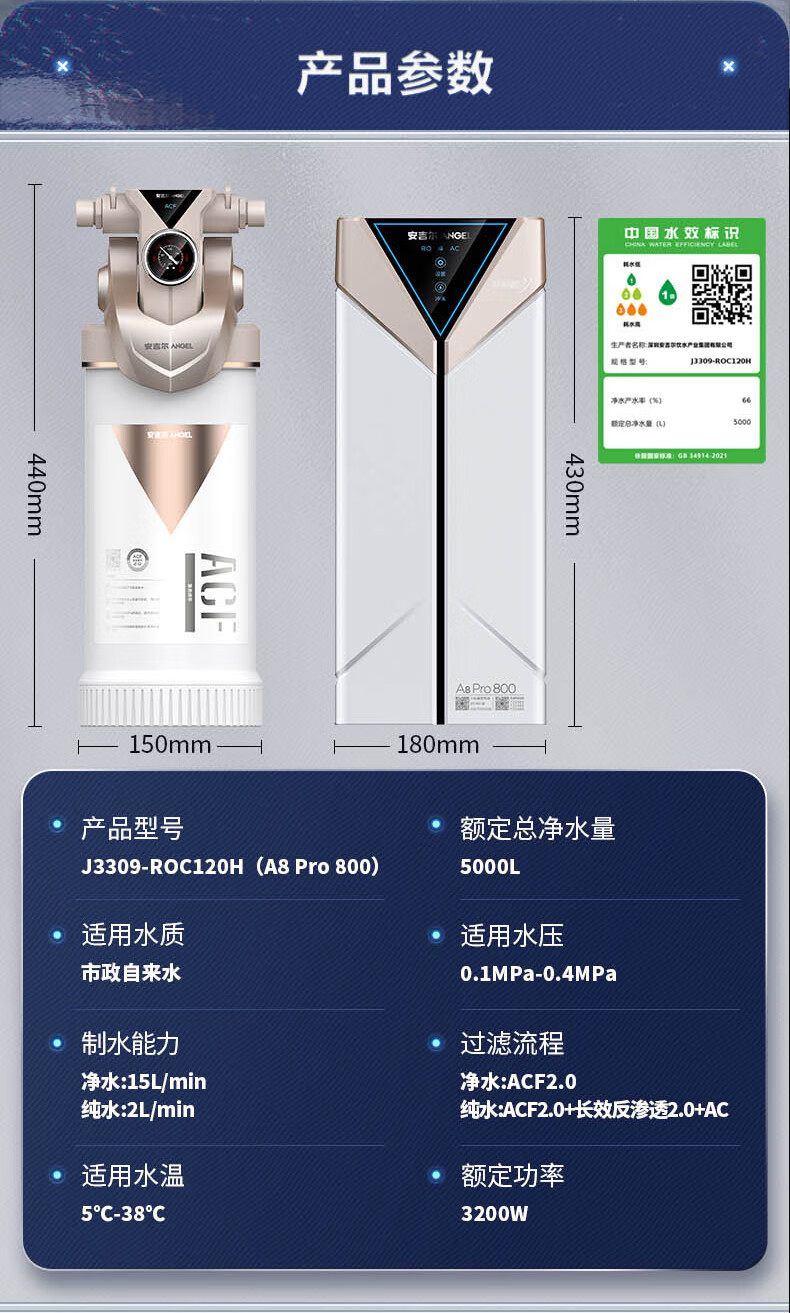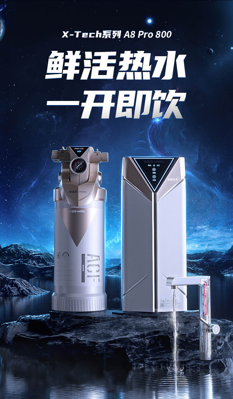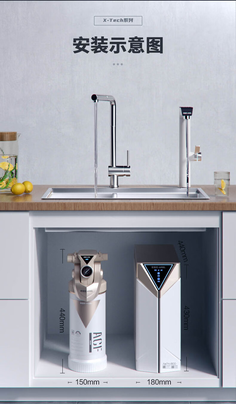 安吉尔/净水/A8pro800G/加热净水家用厨下式反渗透直饮净热一体机 触控智显精准选温 智能IOT物联