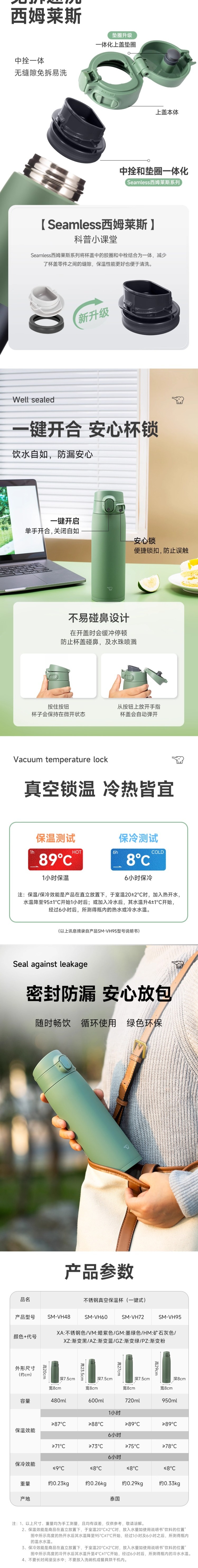 日本象印不锈钢真空保温杯(一键式)SMVH60