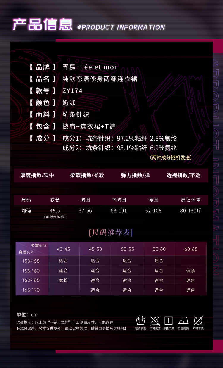 【情趣内衣】霏慕 纯欲恋语修身两穿连衣裙ZY174