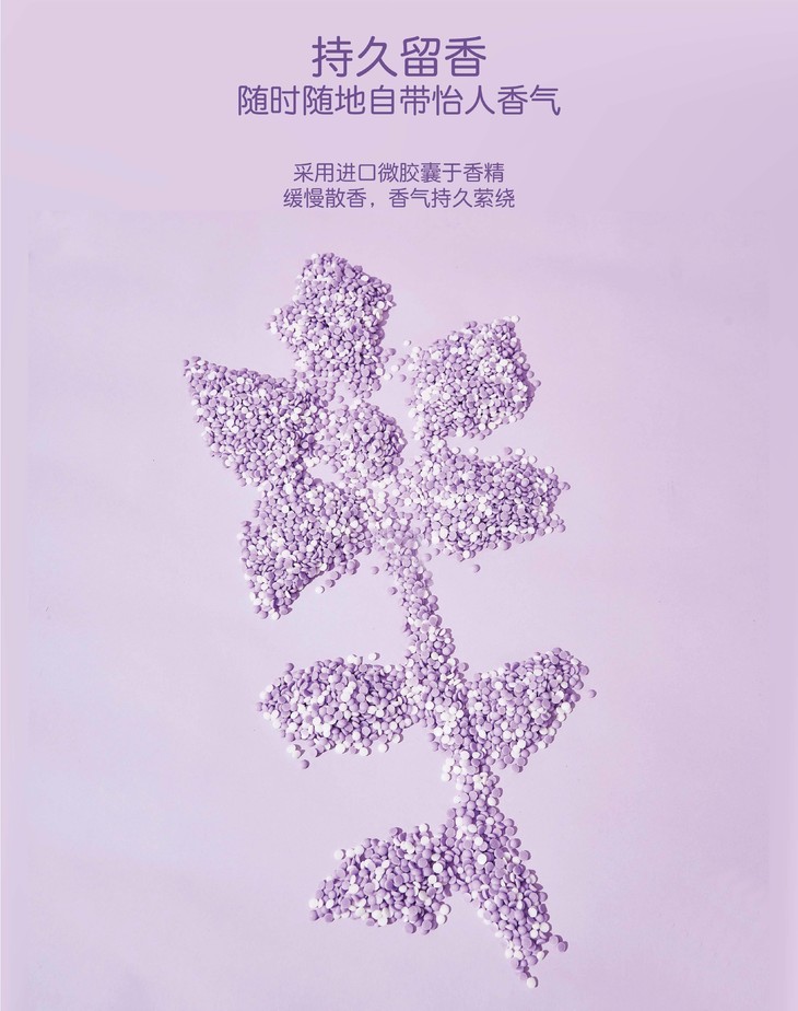 释放出清新的香氛,能够持久留存在衣物中(持久72小时) 这种水漾微薰的香氛,令人感受到清爽与自然,让衣物散发出迷人的香气