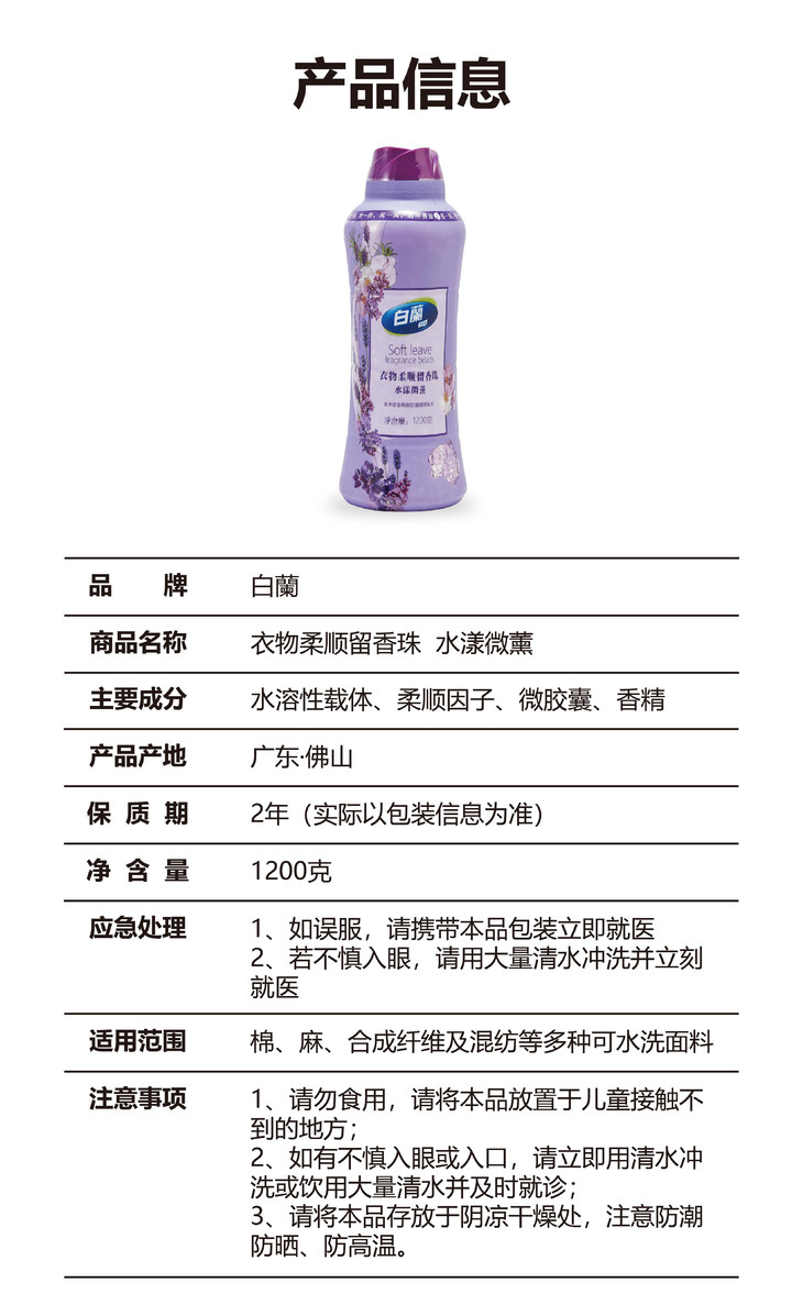 试试这款白蘭衣物柔顺留香珠(水漾微薰) 让你的衣物拥有清新香氛吧!