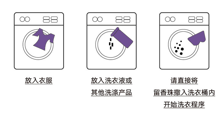使用时,只需要将珠子放入洗衣机中与衣物一同洗涤,不需要额外的步骤或操作,节省您的时间和精力 设计用于洗衣机!!! 1、衣物放入桶内,倒水,放洗衣液在撒上留香珠浸泡10~20分钟直接手洗即可; 2、半盖或1盖30-70克,可根据个人对香氛的浓淡喜好以及衣物的厚薄和数量进行适量增减。