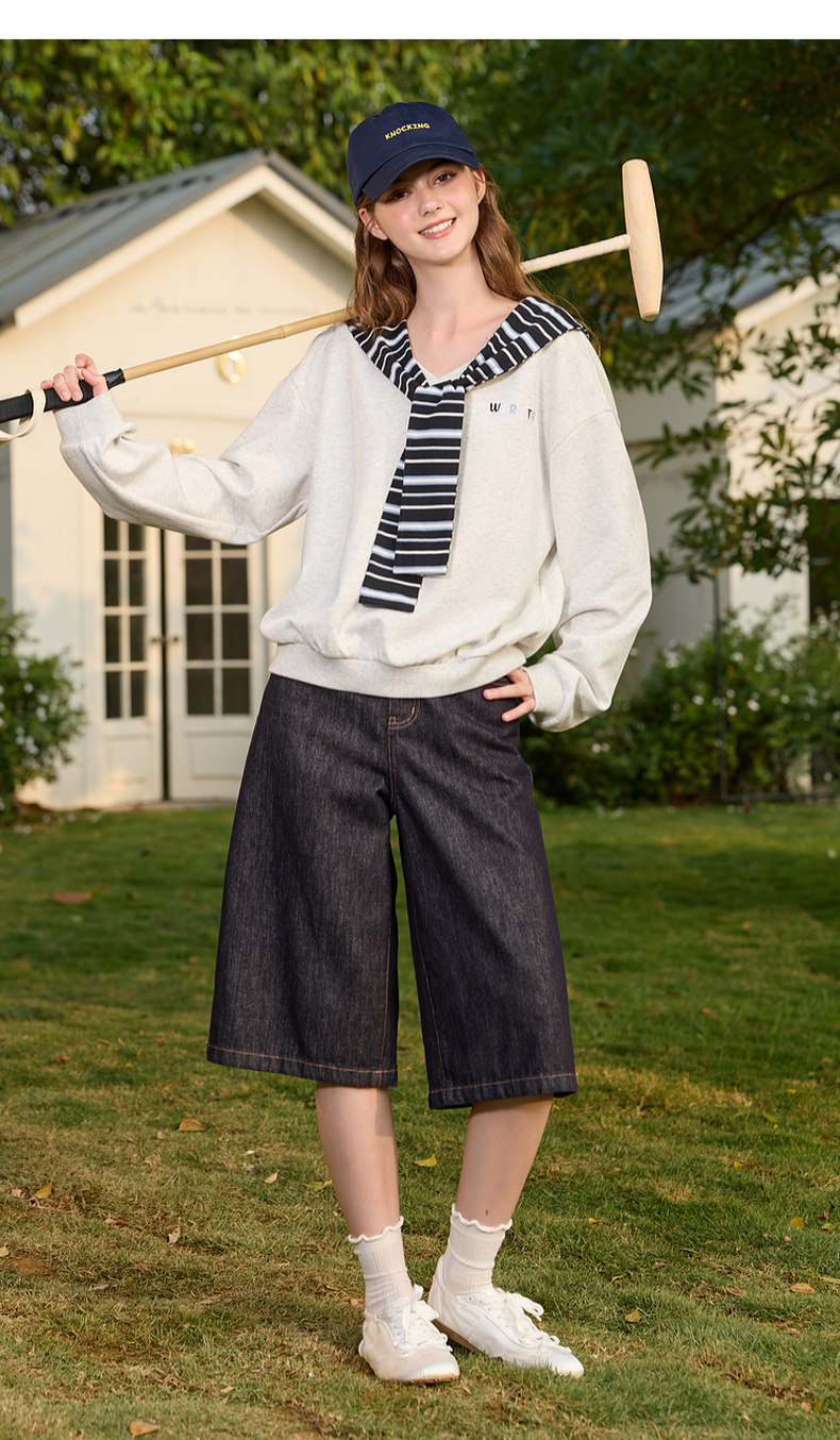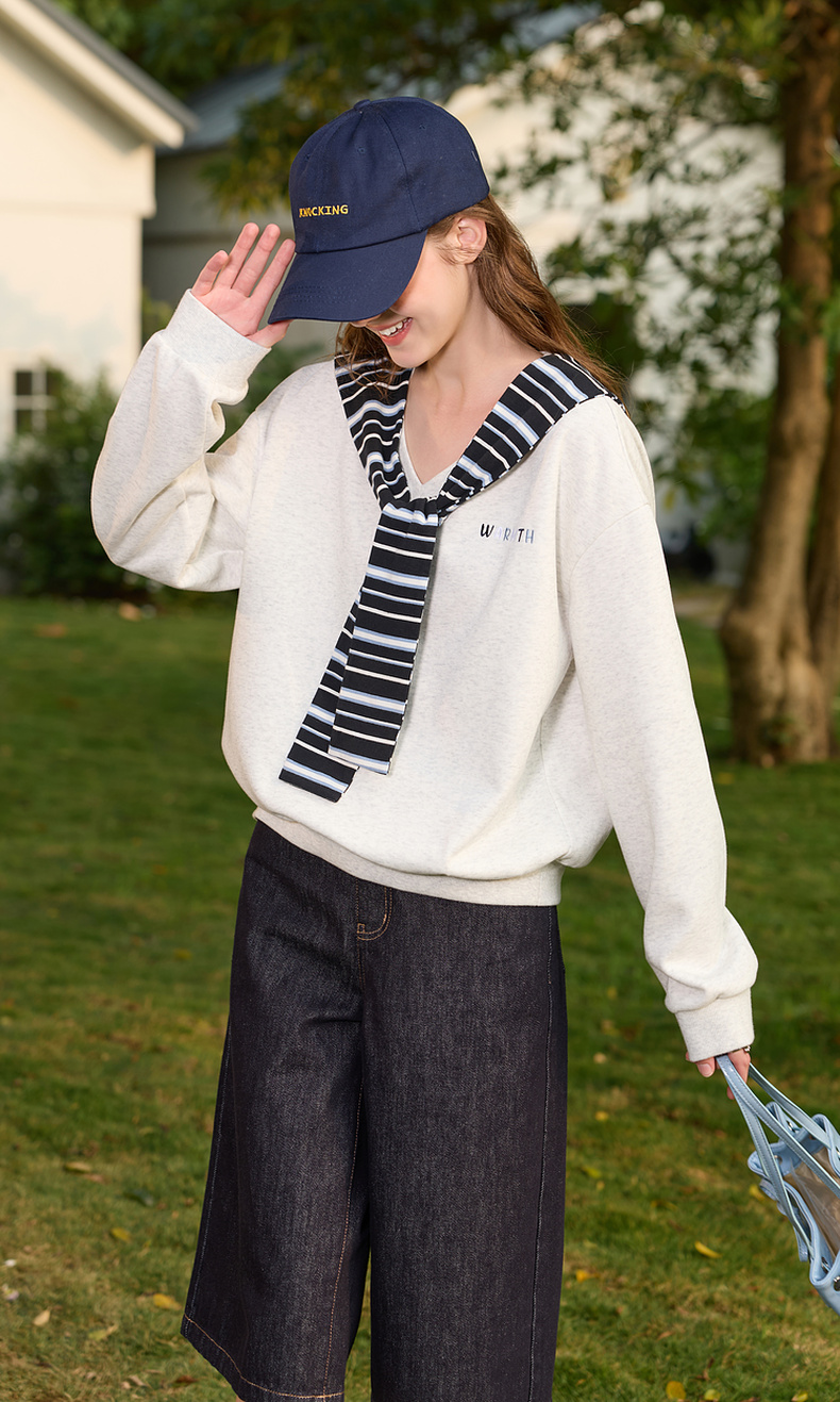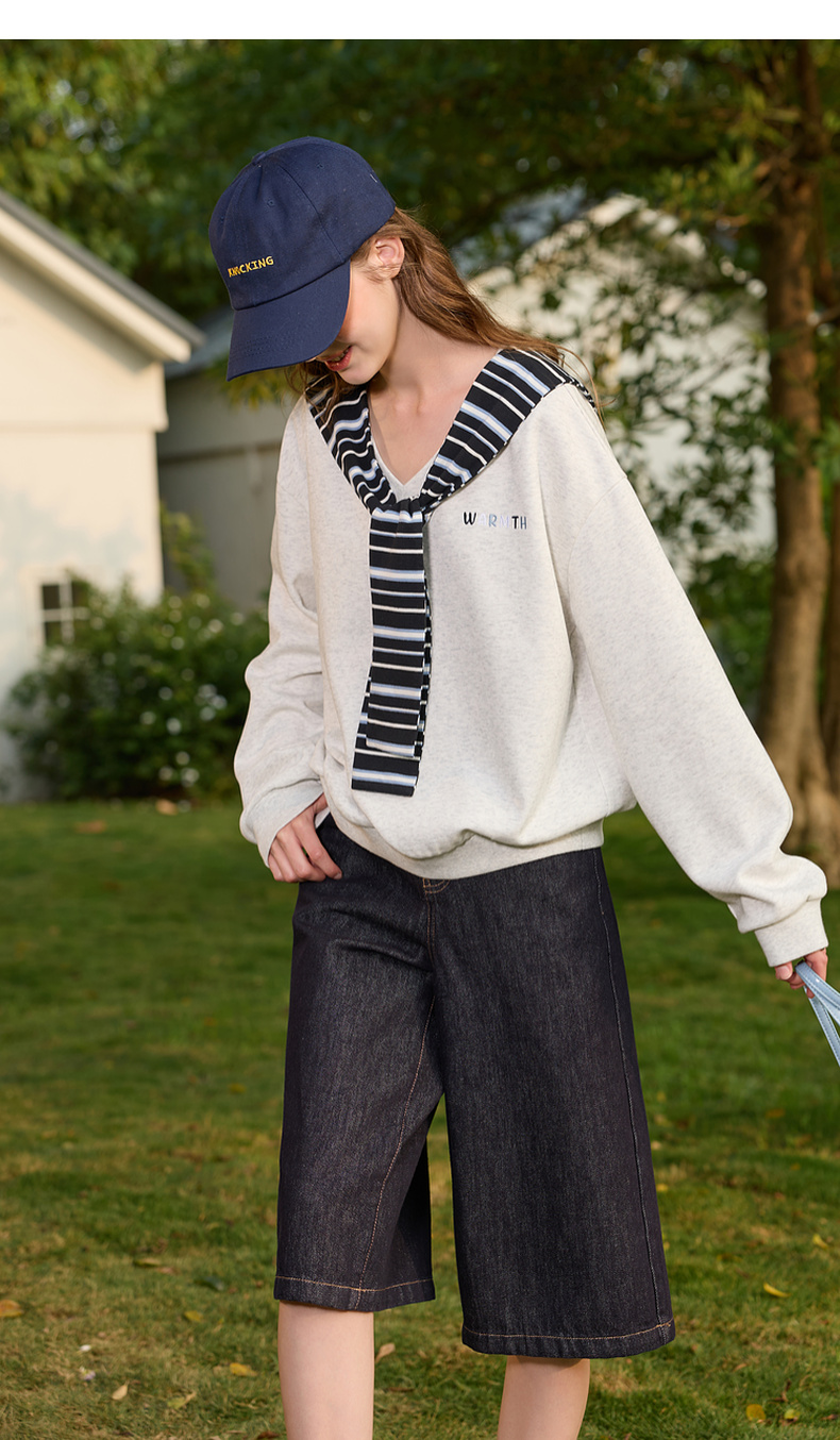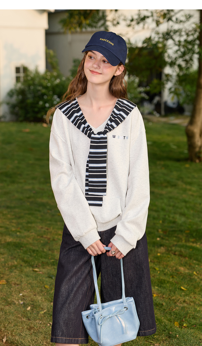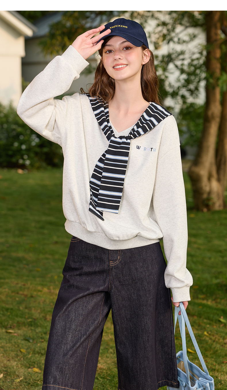 三彩独醒2026春季新款披肩卫衣V领宽松落肩袖上衣休闲F