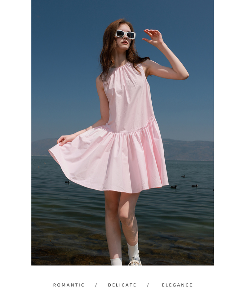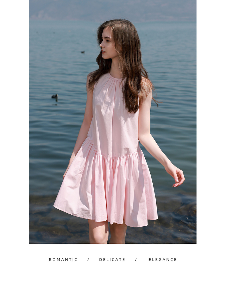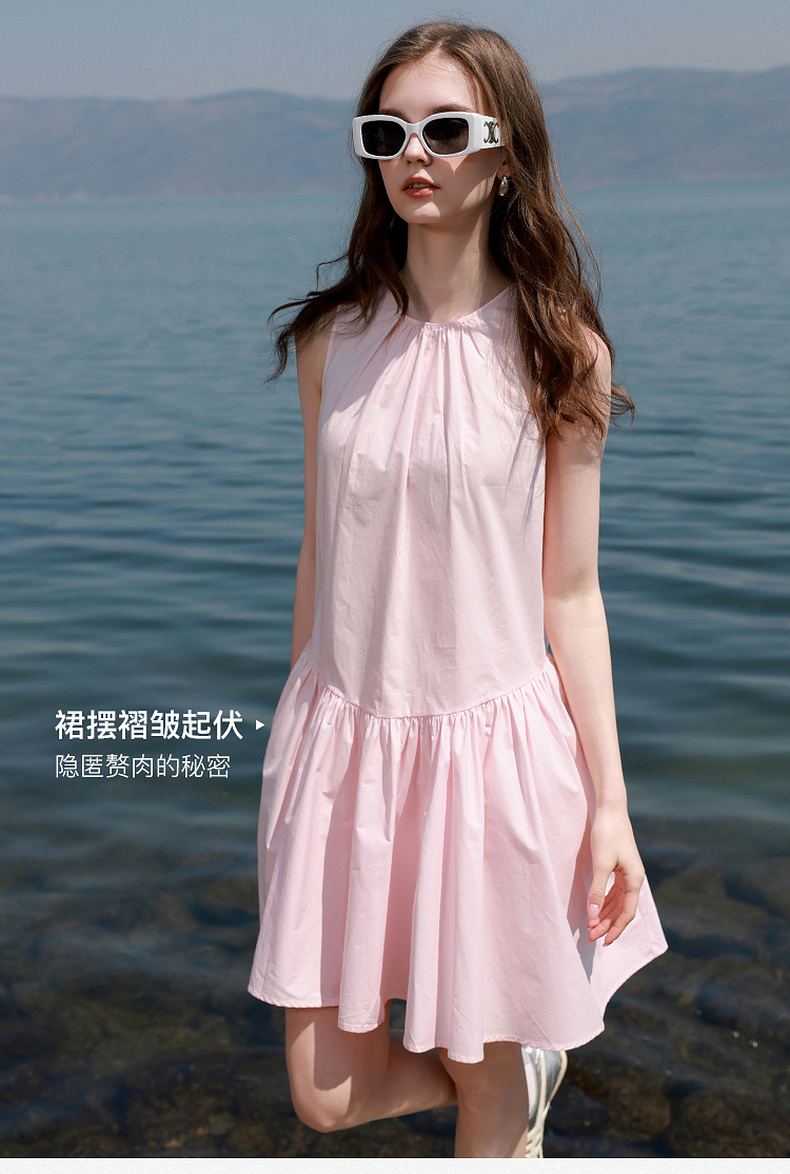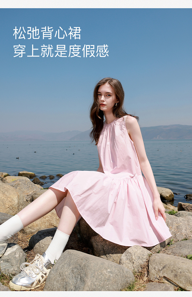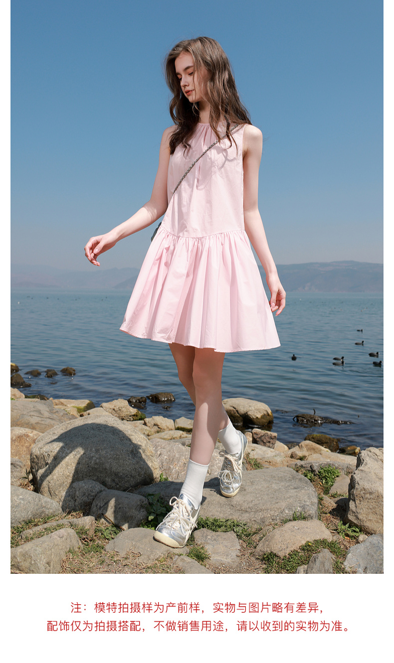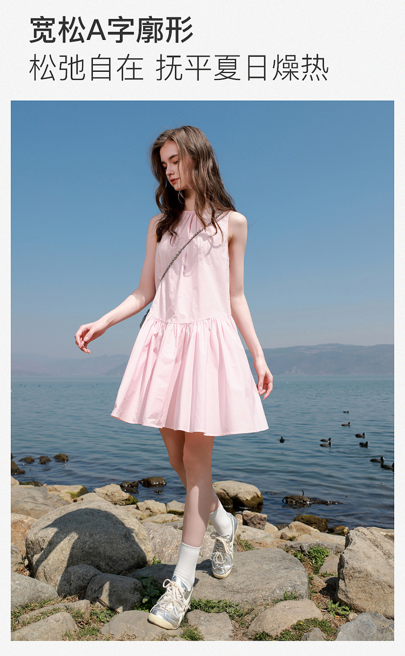 三彩独醒2025夏季新款纯棉连衣裙无袖背心裙宽松A字裙短裙F