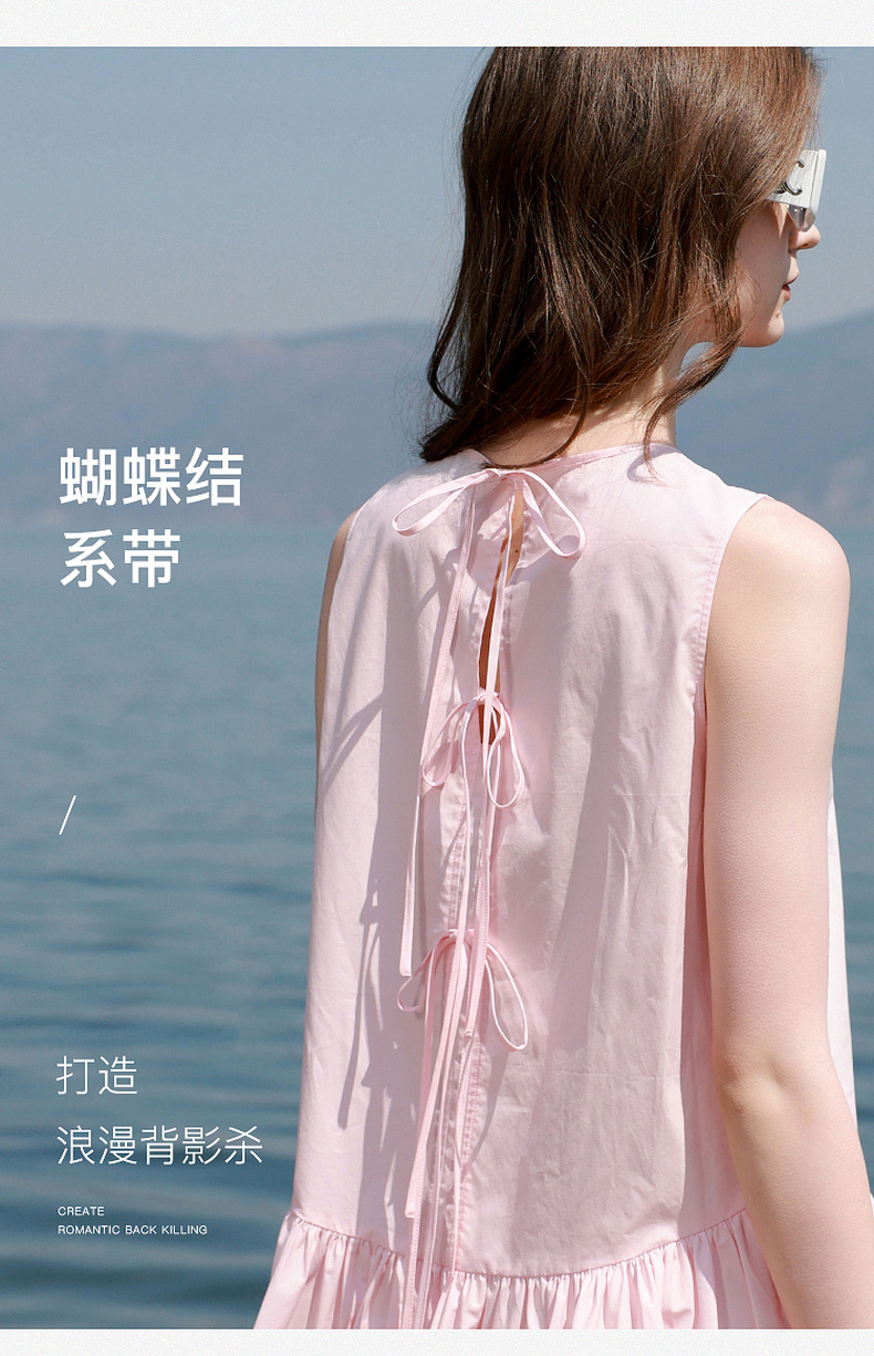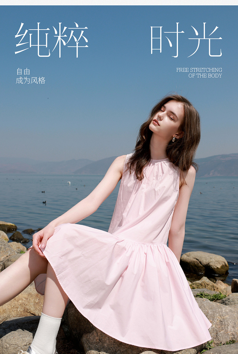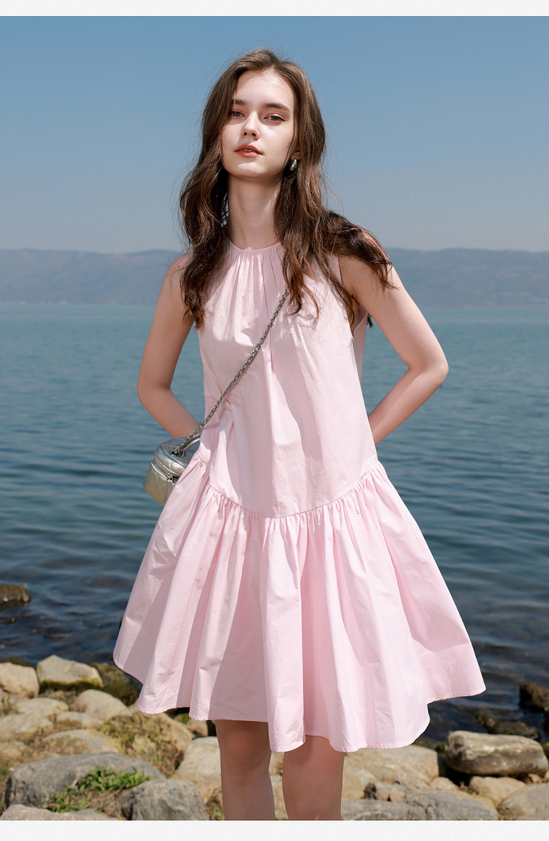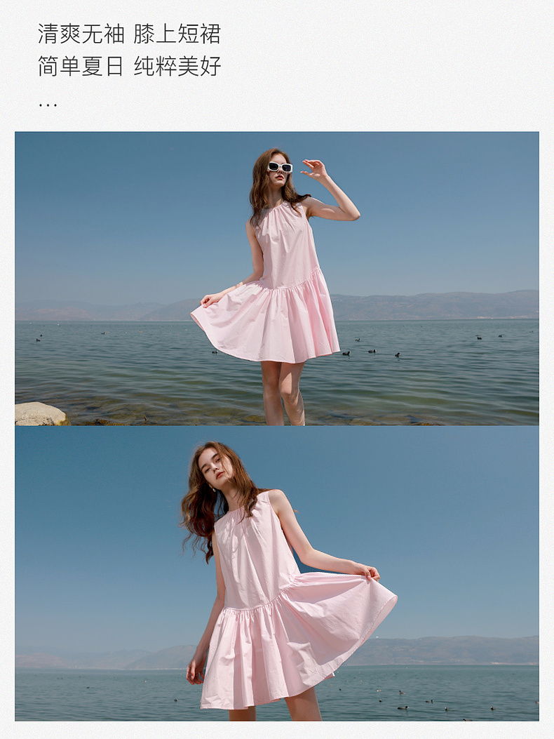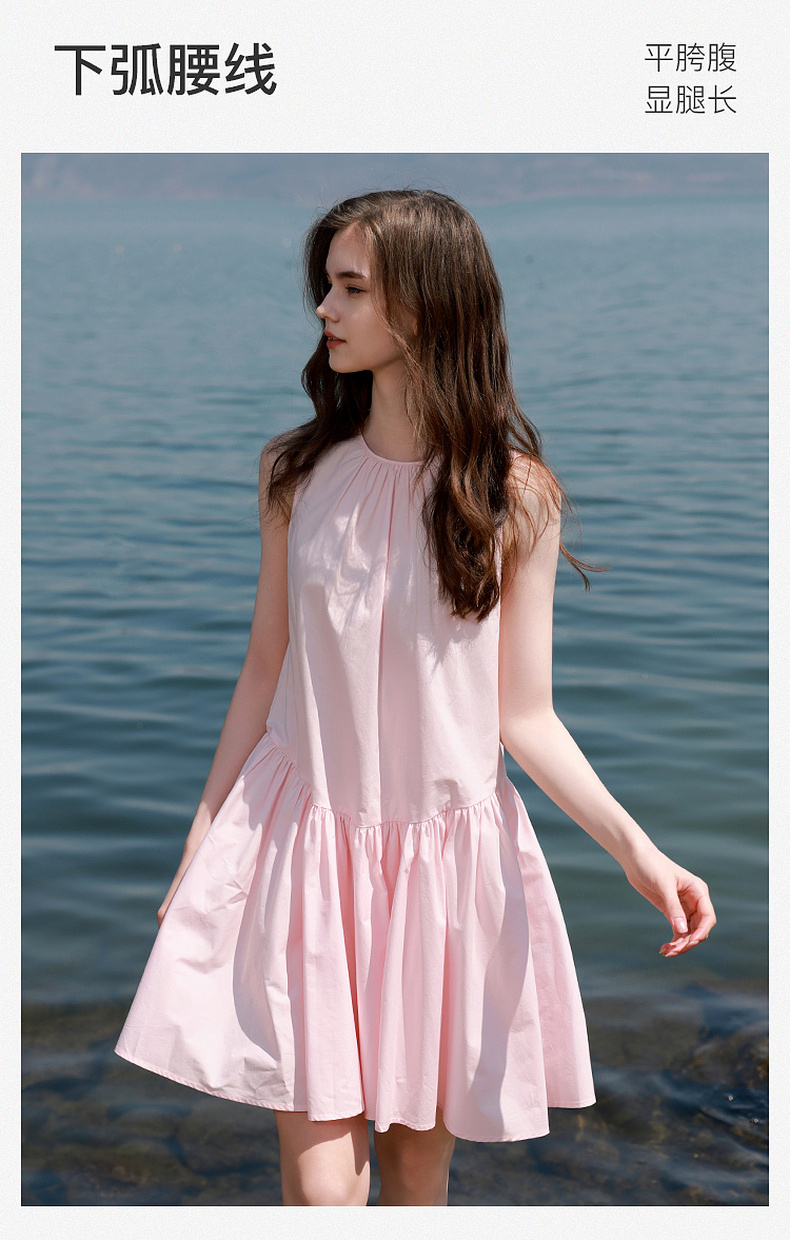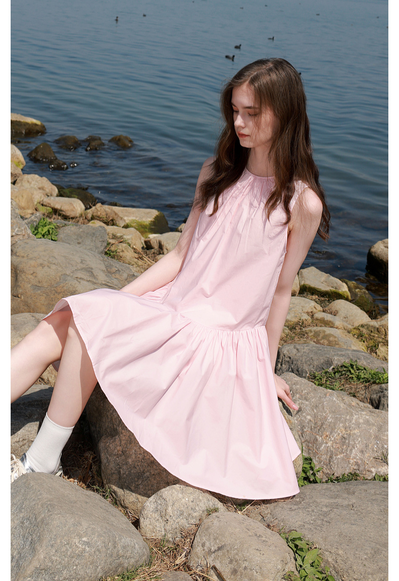 三彩独醒2025夏季新款纯棉连衣裙无袖背心裙宽松A字裙短裙F