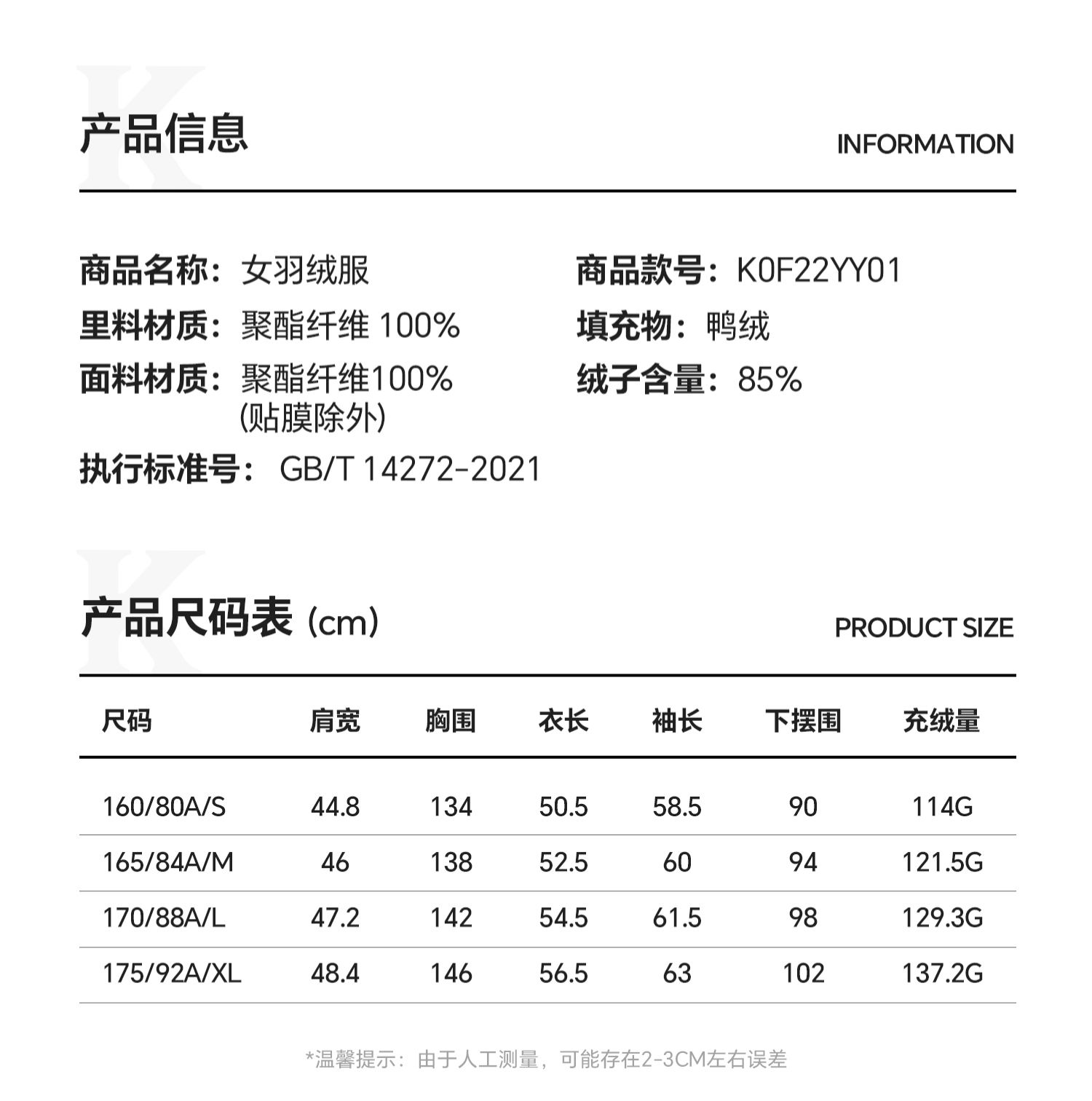 Kappa卡帕背靠背新款运动羽绒服女款户外保暖防寒服休闲夹克外套K0F22YY01