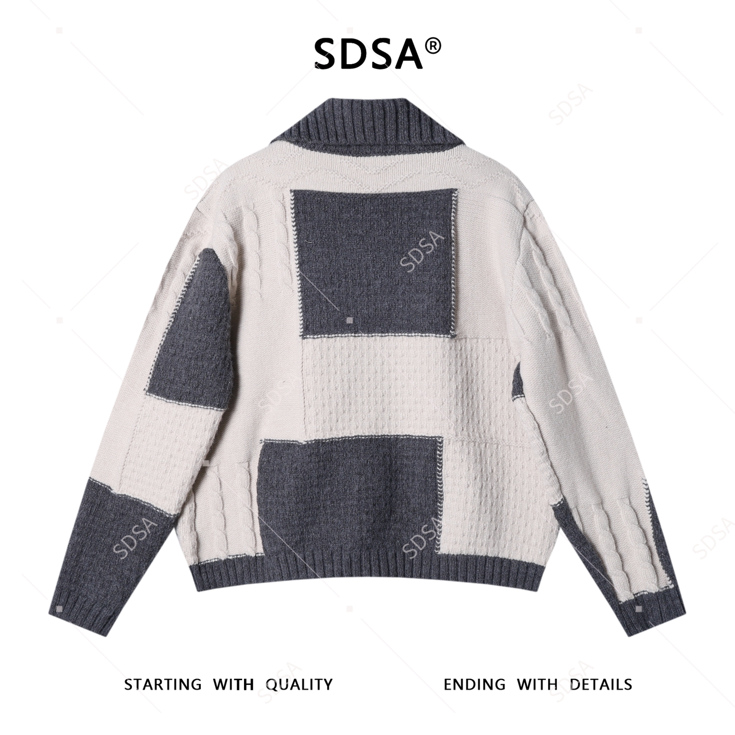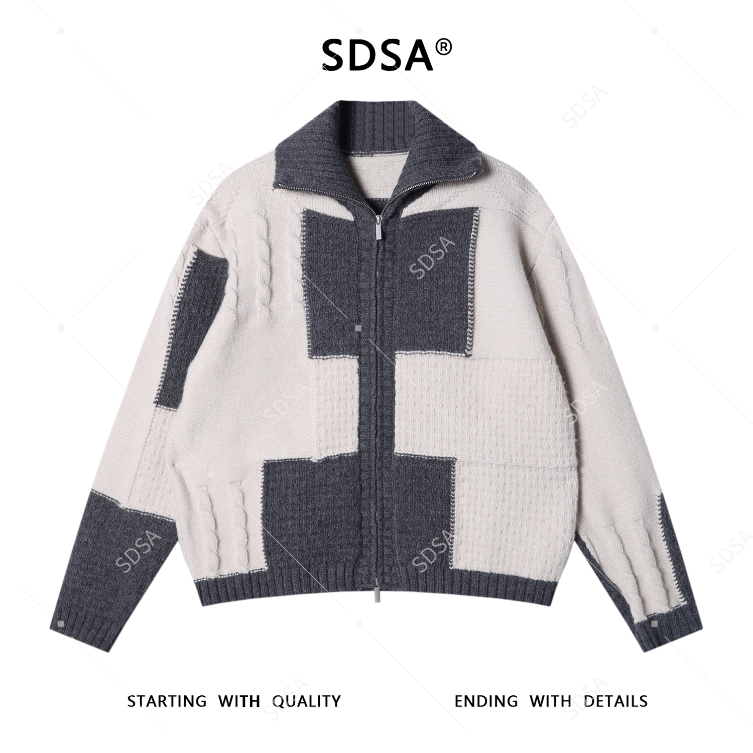 22538SDSA男士秋冬新款痞帅男装潮牌撞色纽花拉链翻领开衫毛衣百搭时尚