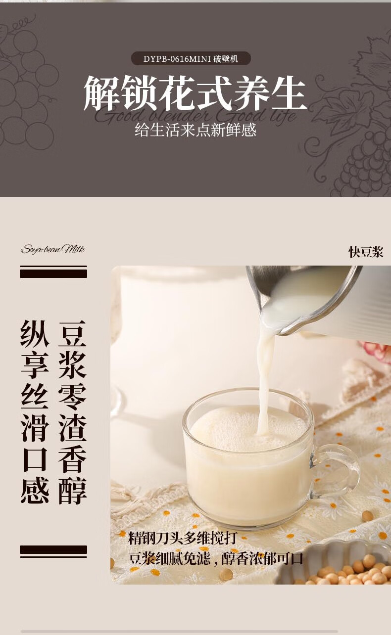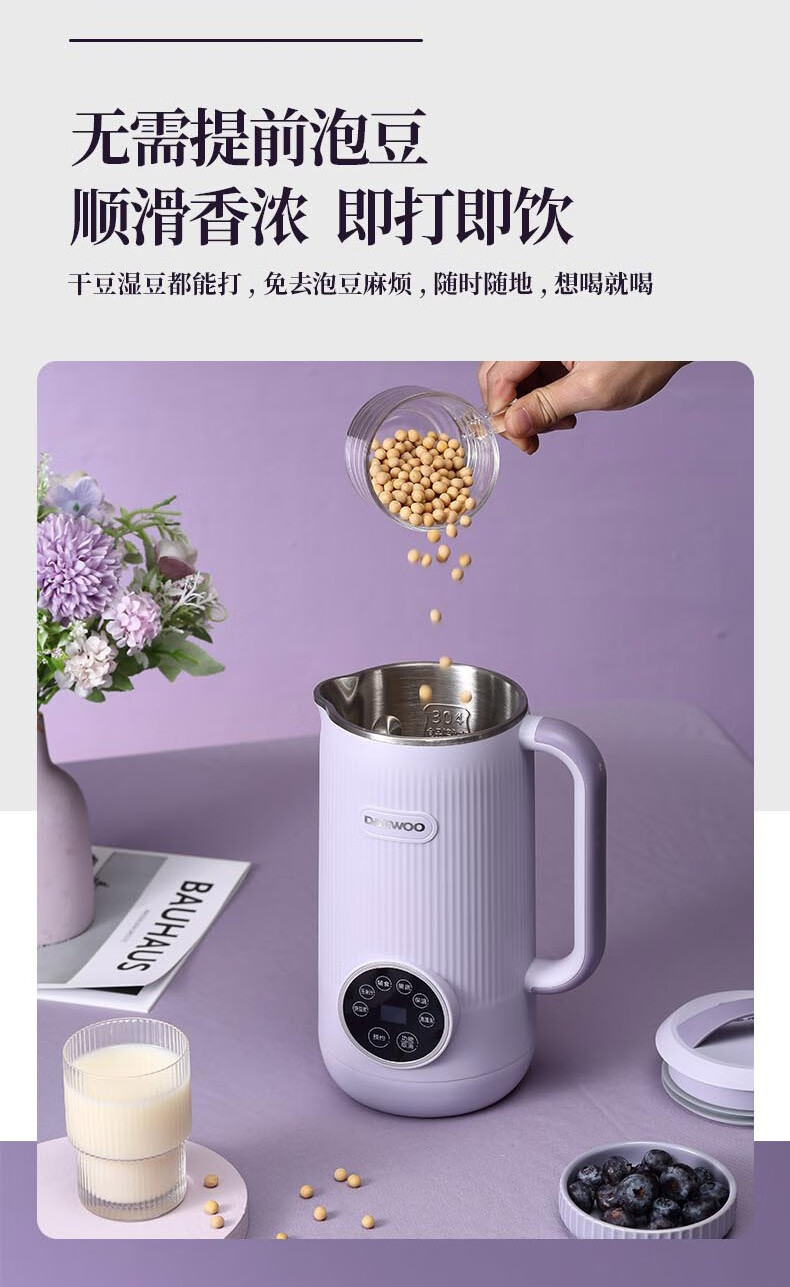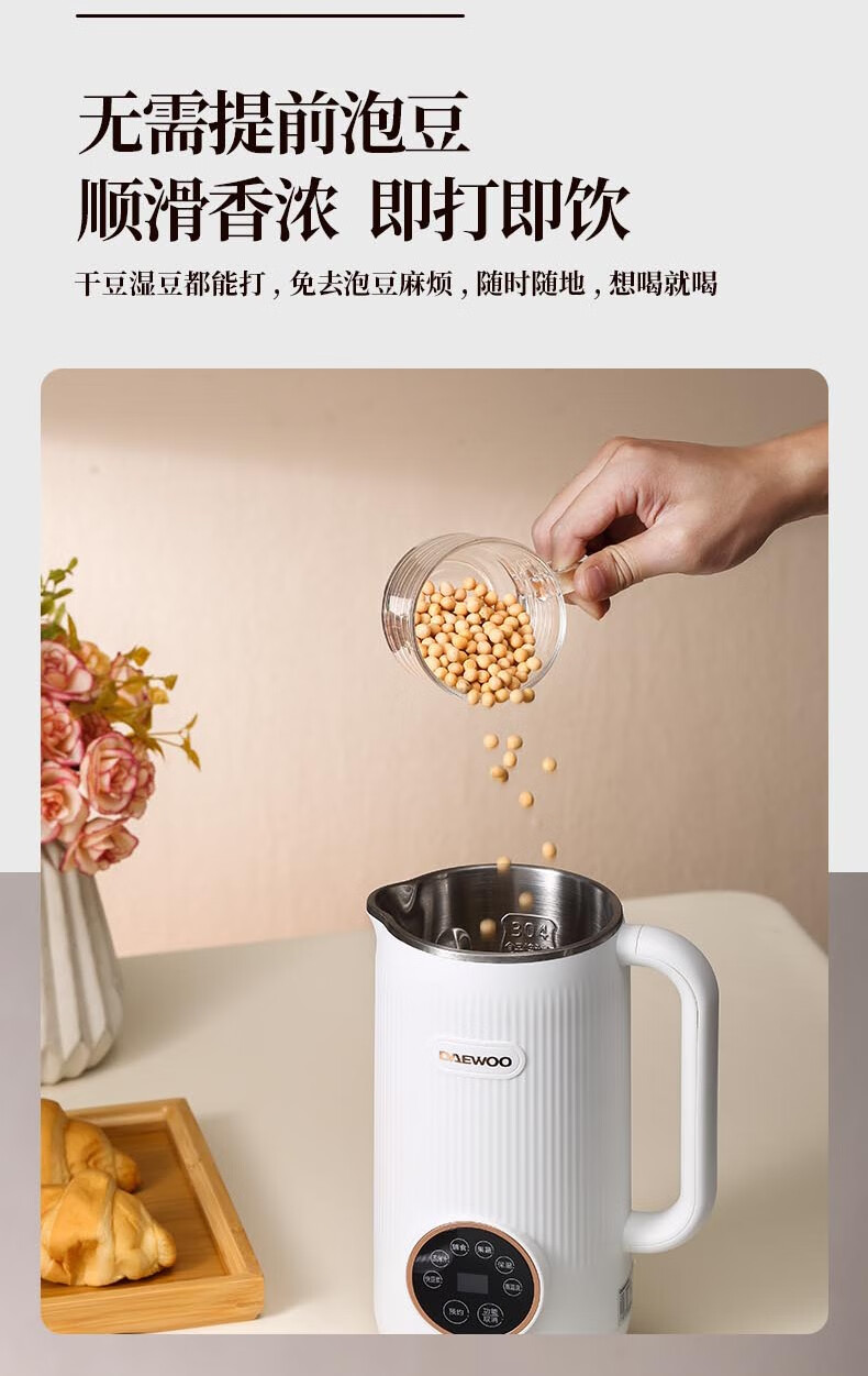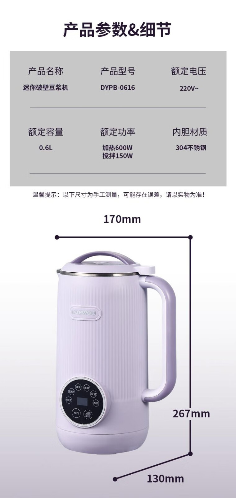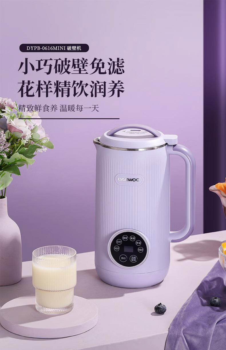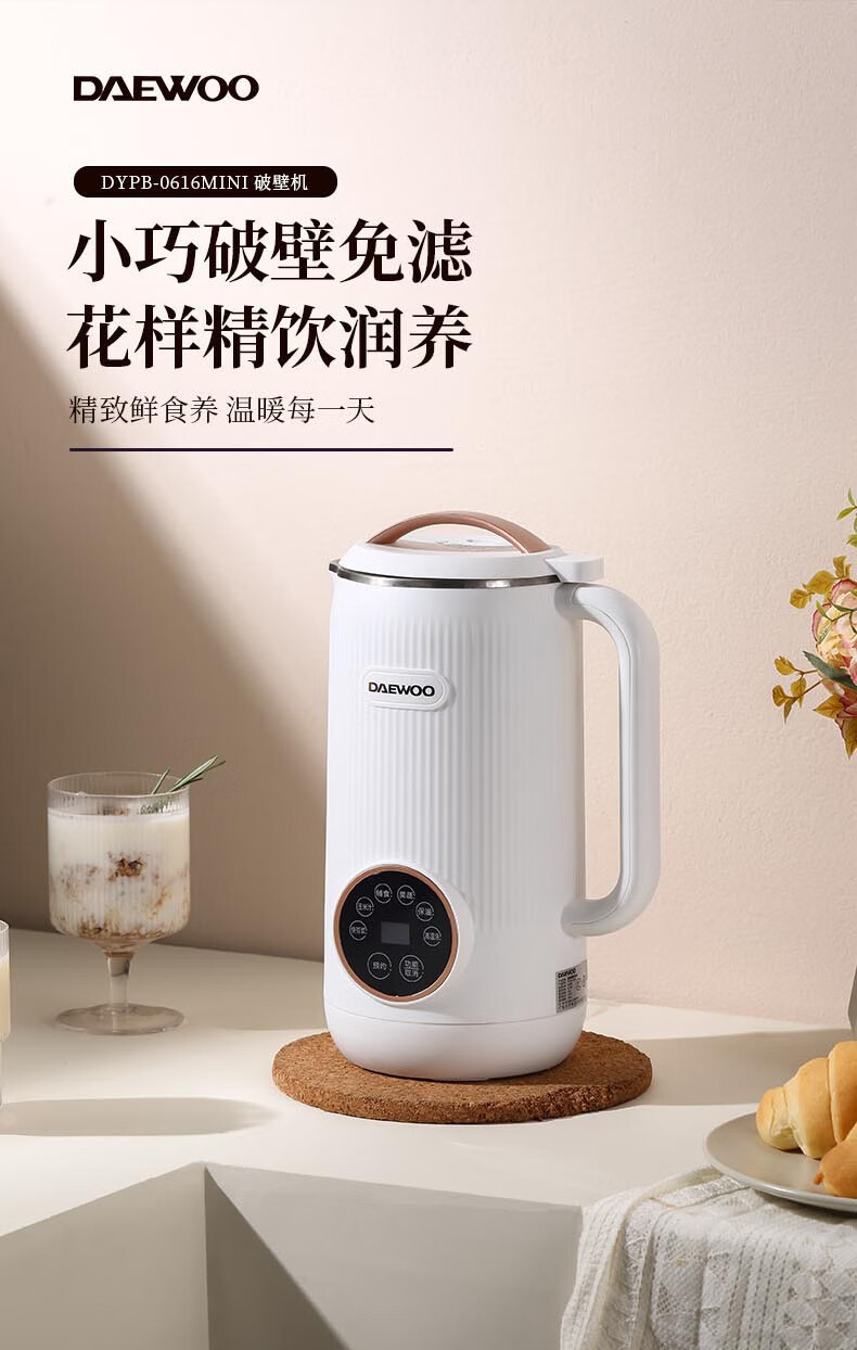 大宇(DAEWOO) 家用辅食多功能全自动迷你破壁豆浆机DYPB-0616 米白