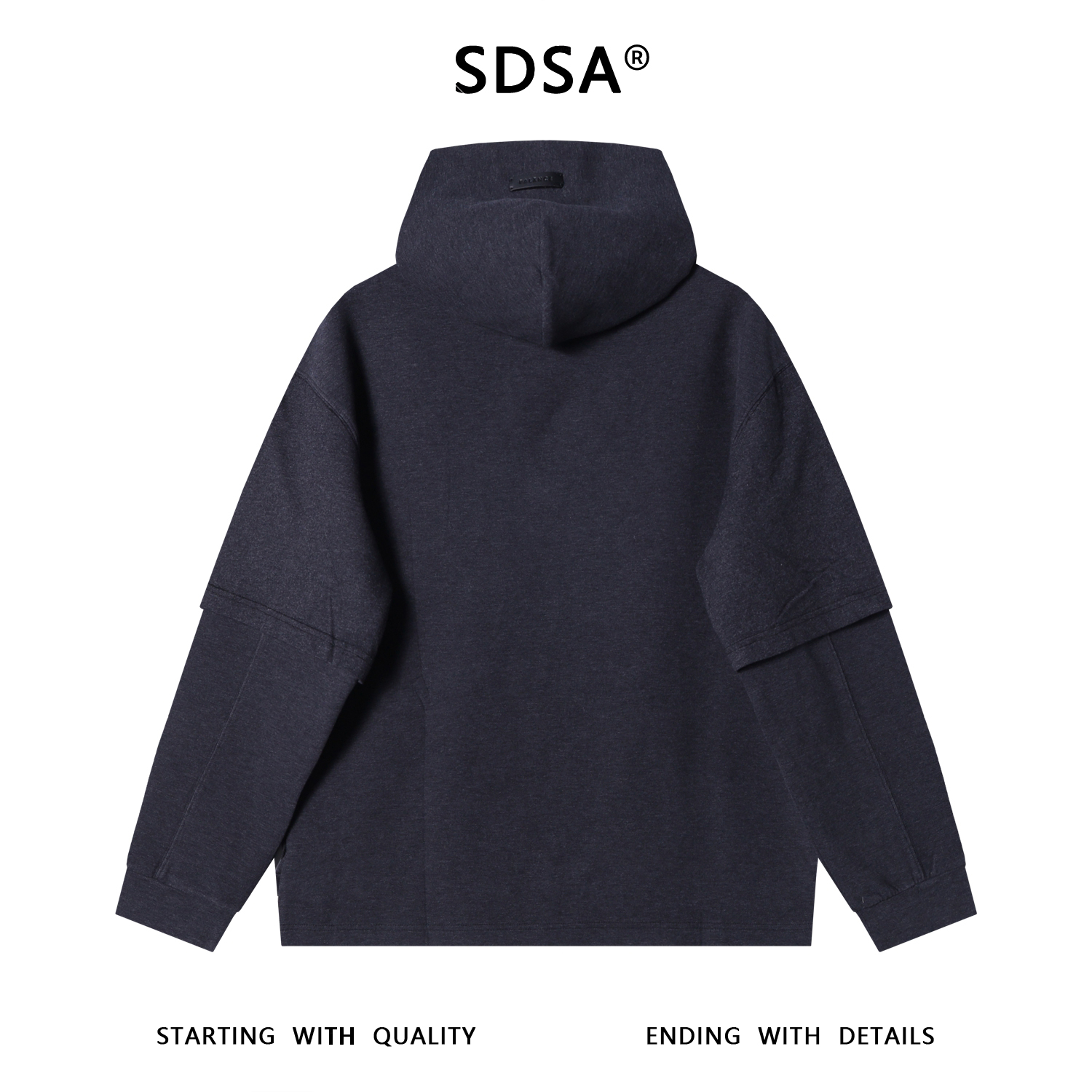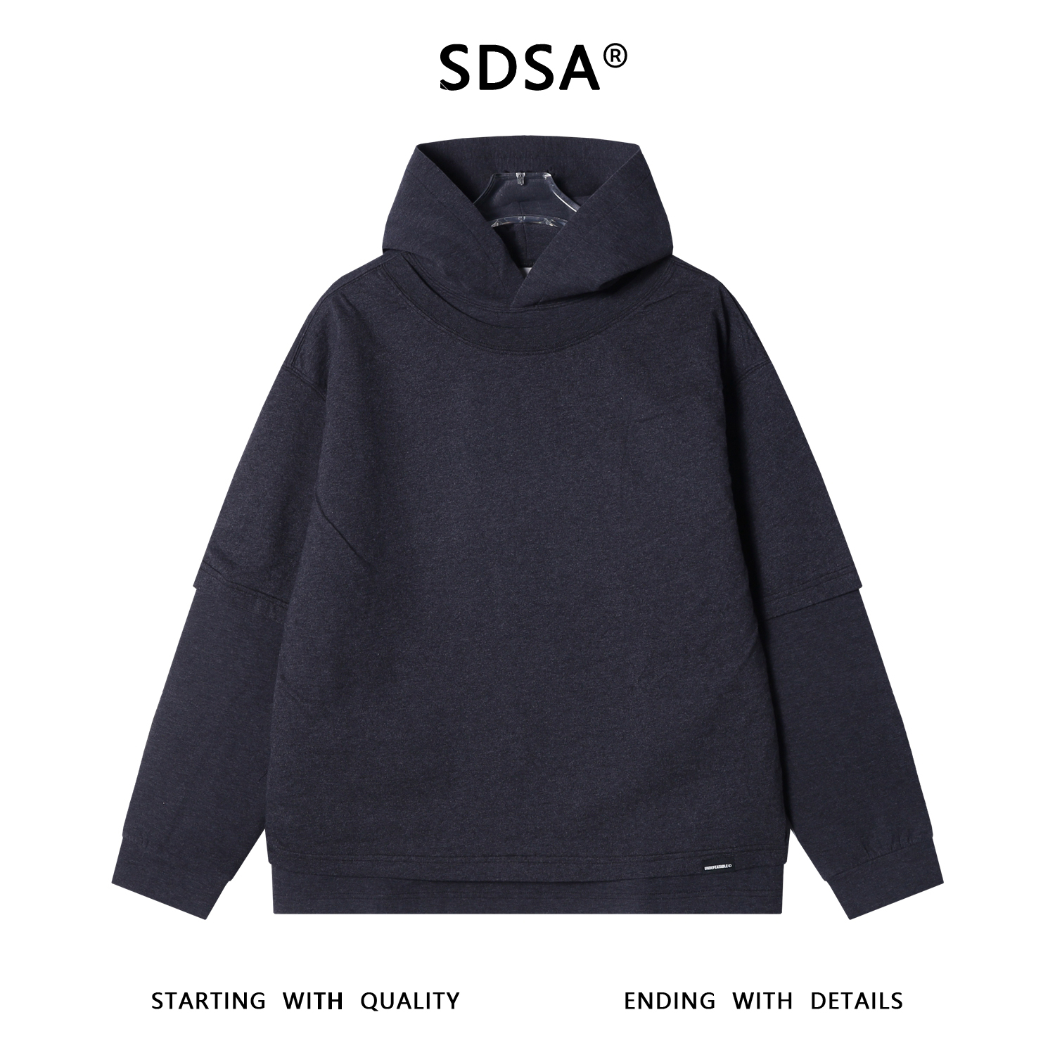 87659SDSA男士秋冬新款痞帅男装韩版简约纯色拼接假两件连帽卫衣百搭潮