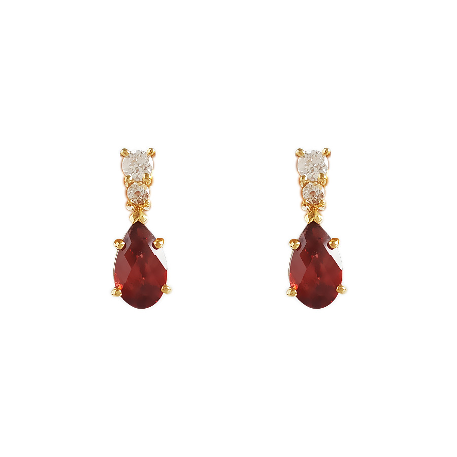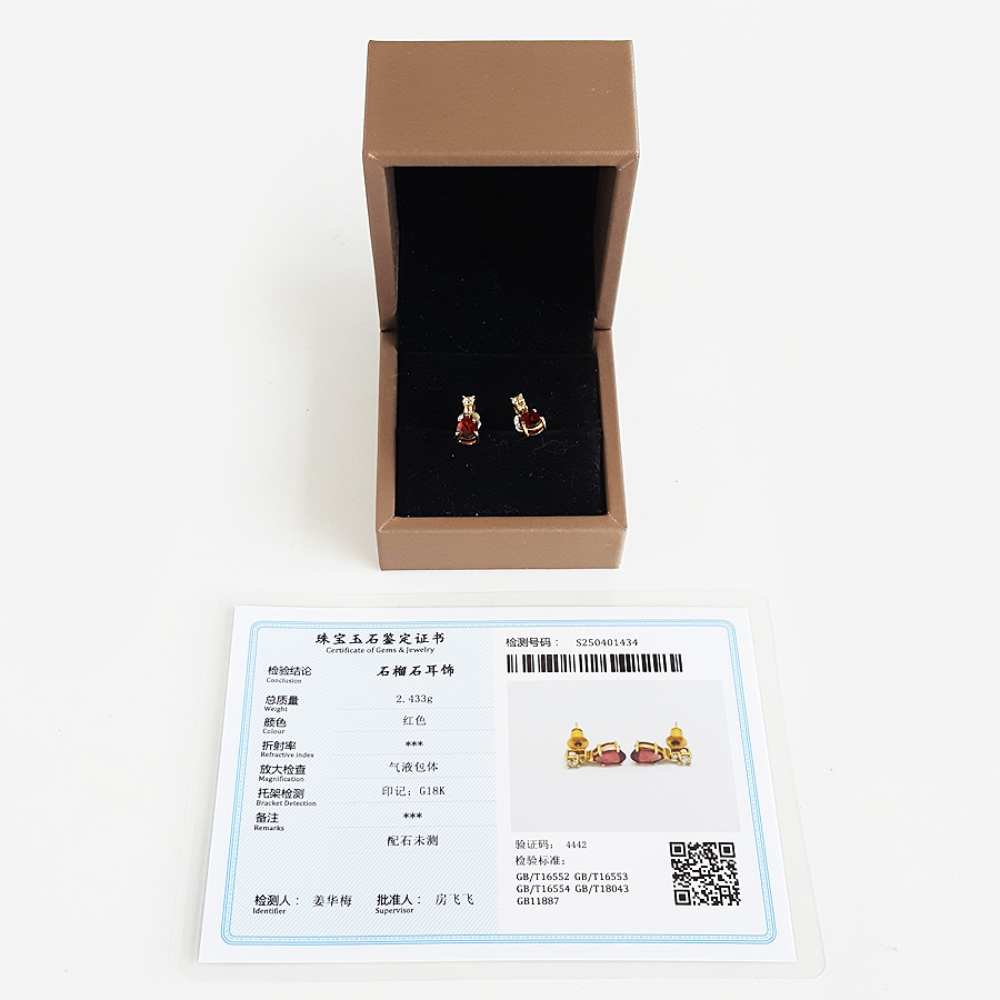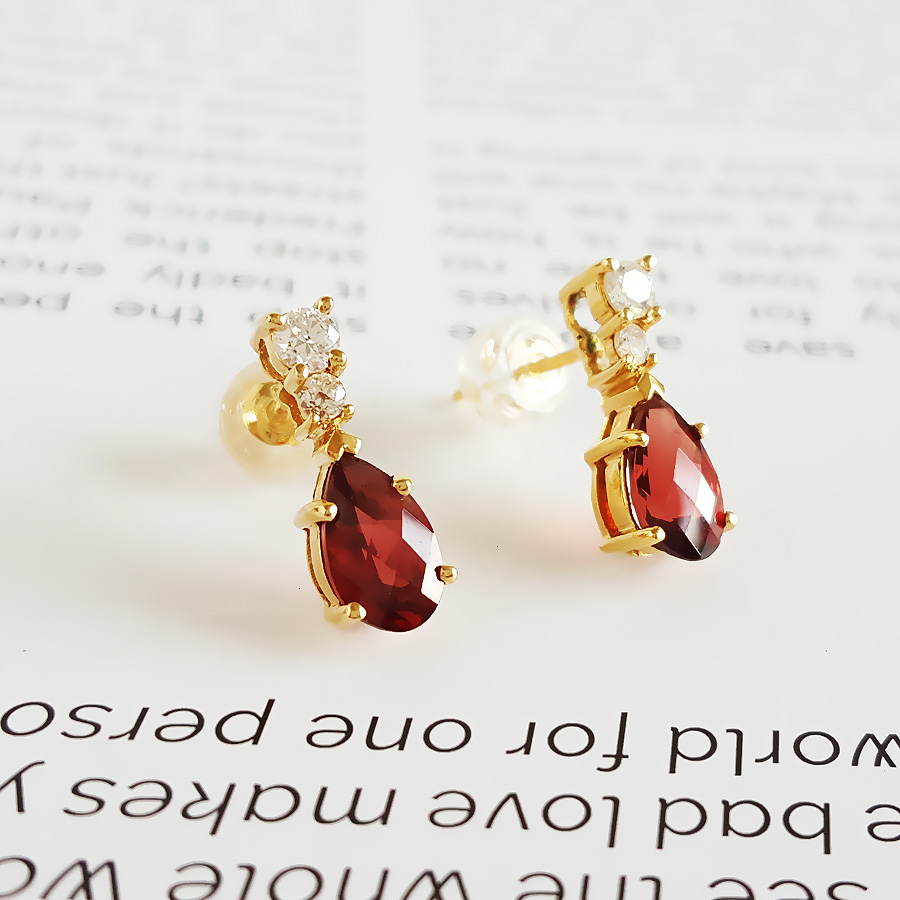 名称 | AU750黄金镶天然近全净体水滴形红色石榴石耳环 |