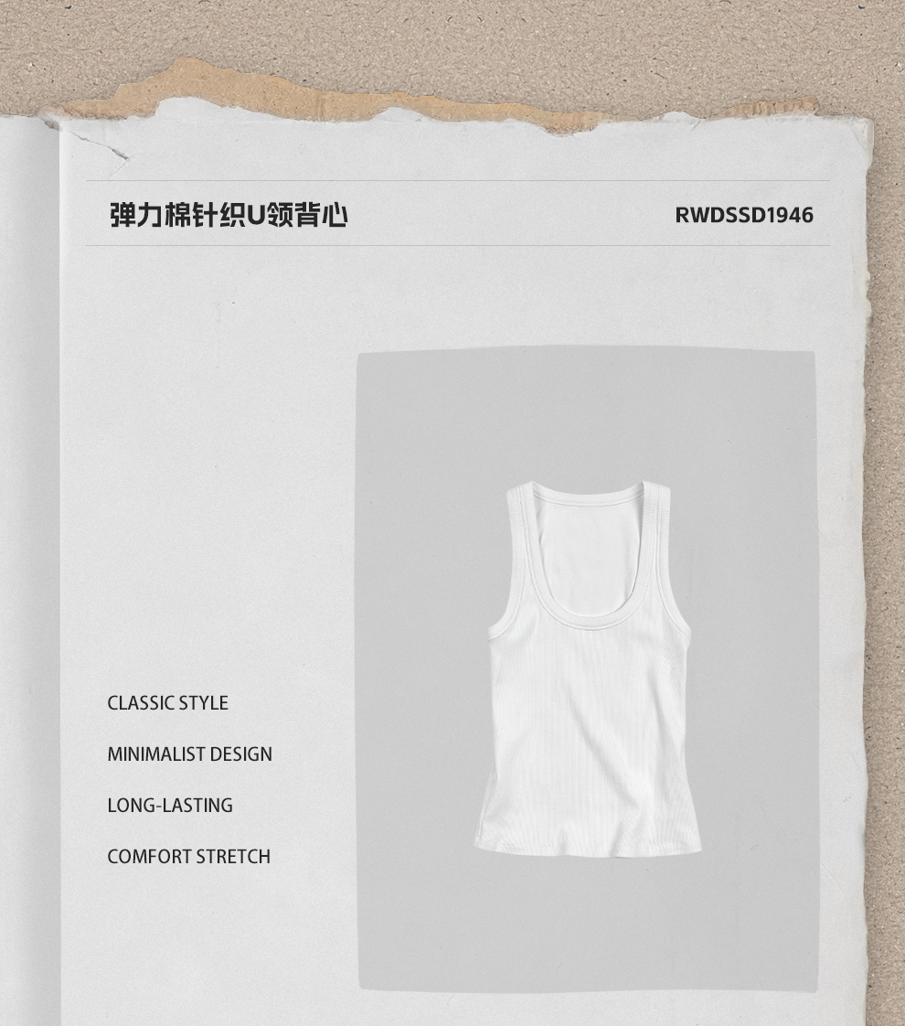 ROMI STUDIO“U领背心”棉混纺弹性螺纹肌理内搭打底吊带RWDSSD1946