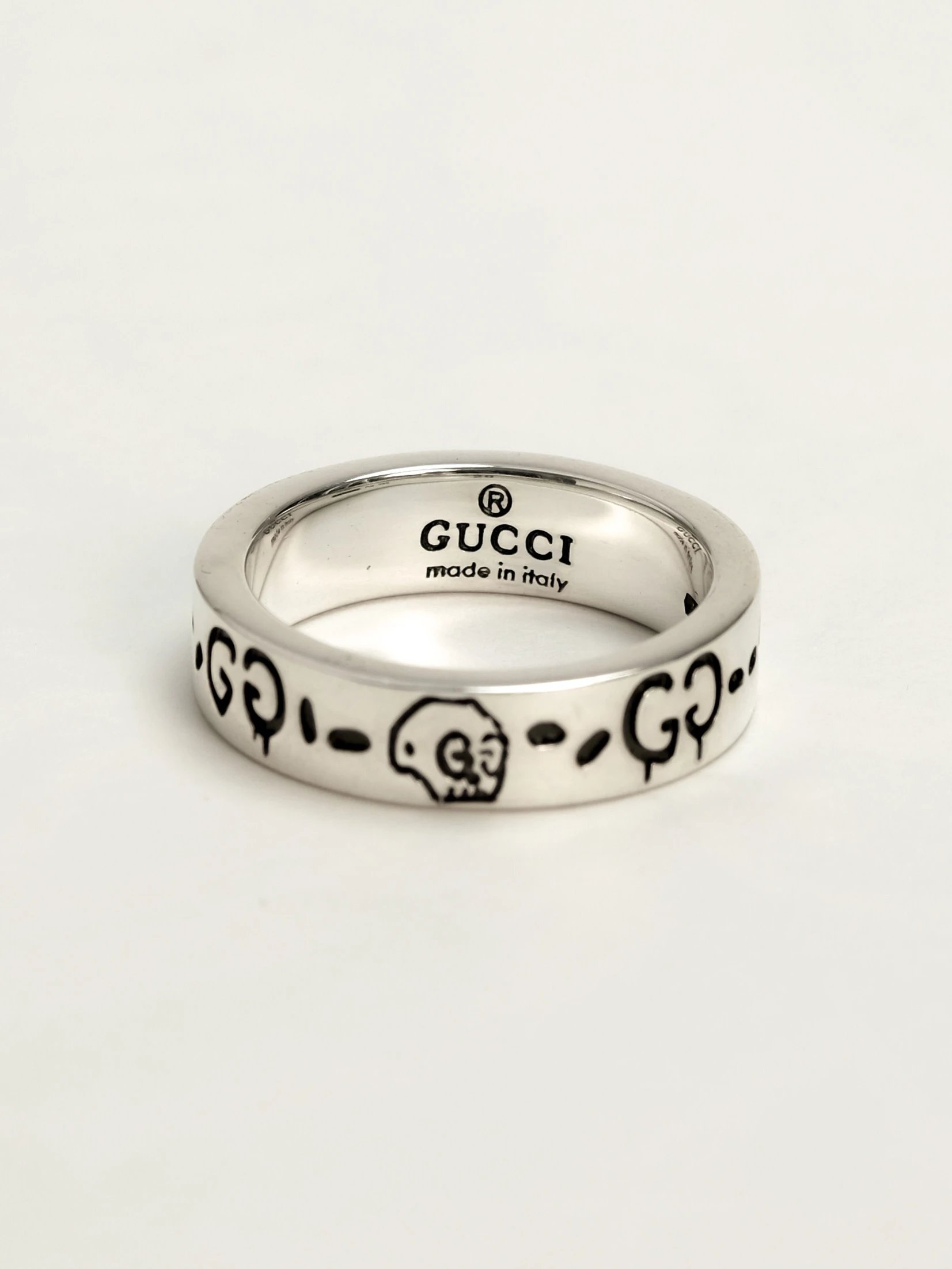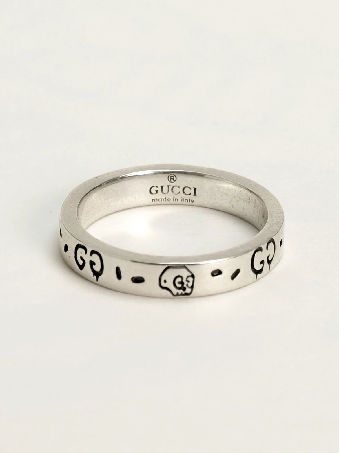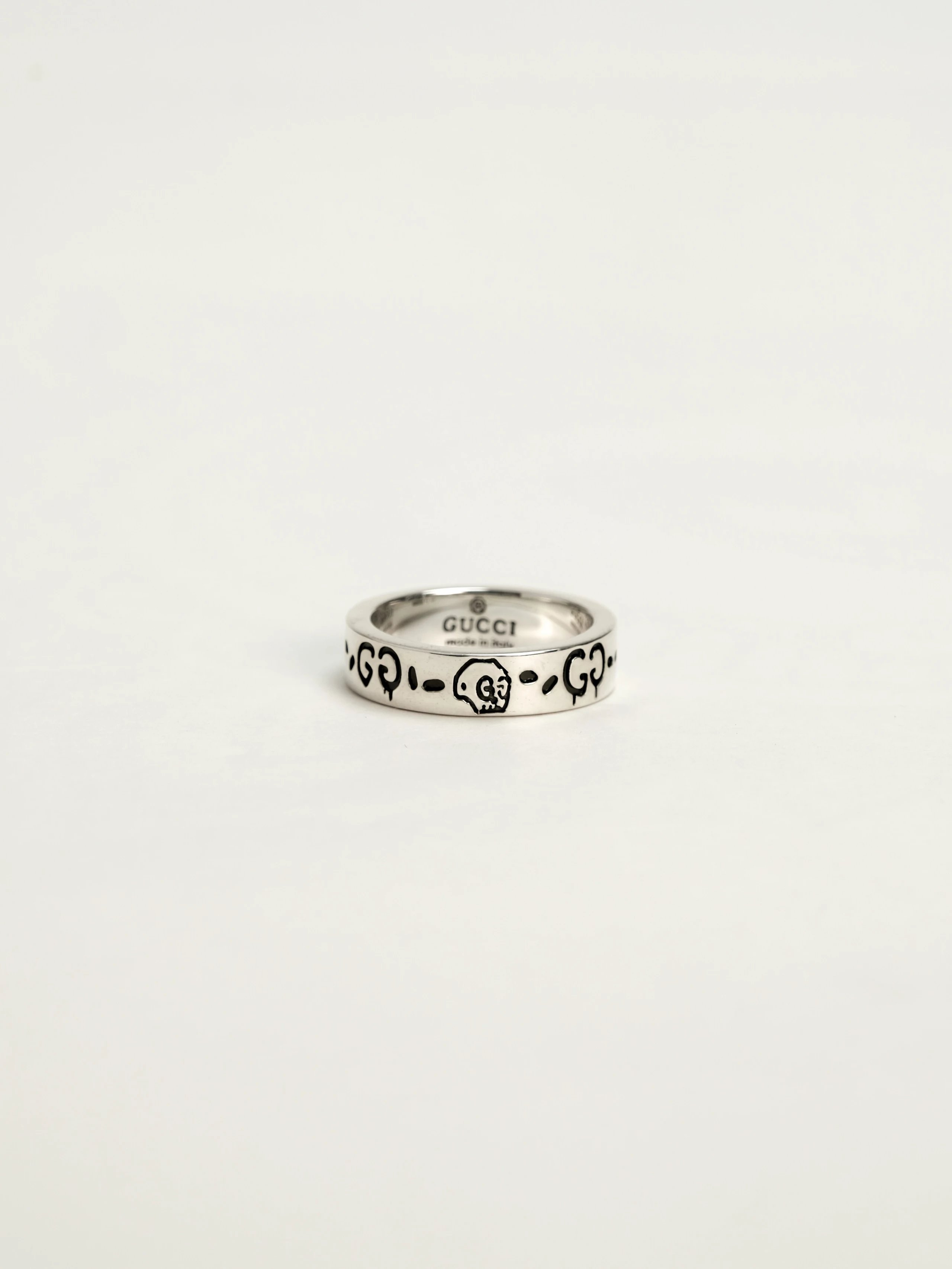 Gucci古驰925纯银骷髅头小精灵情侣戒指,生长在布鲁克林的艺术家Trouble Andrew受Alessandro Michele邀请,将他的艺术融入Alessandro Michele的设计之中,联手打造别致项目。 纯银戒指,镌刻GucciGhost图案。
