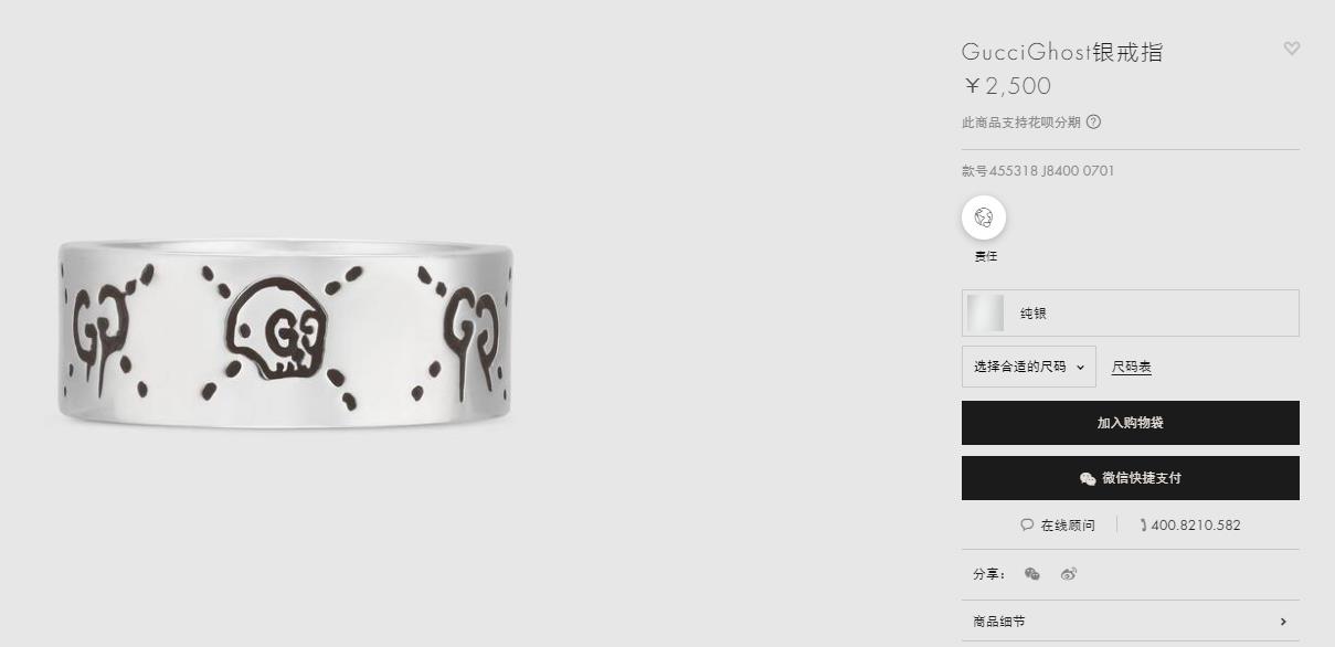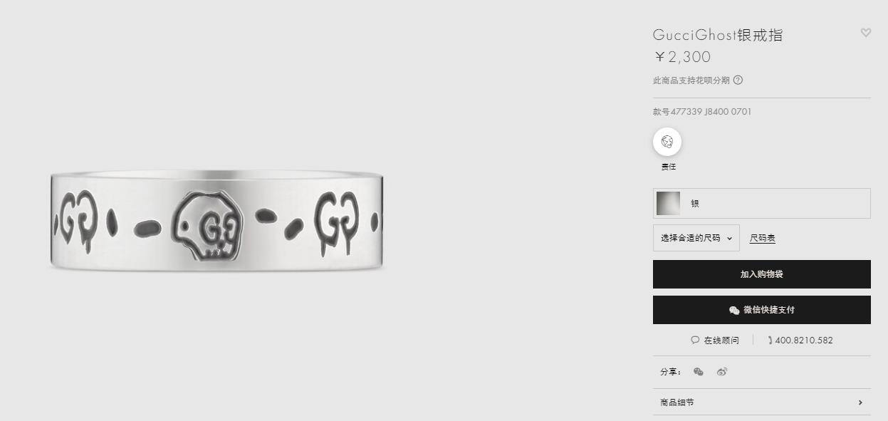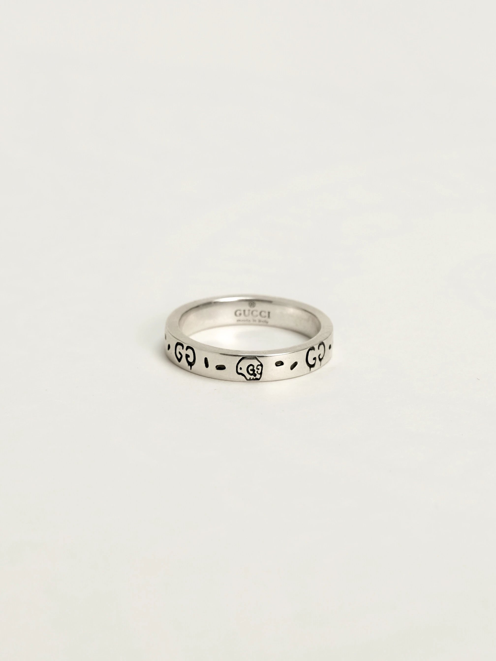 Gucci古驰925纯银骷髅头小精灵情侣戒指,生长在布鲁克林的艺术家Trouble Andrew受Alessandro Michele邀请,将他的艺术融入Alessandro Michele的设计之中,联手打造别致项目。 纯银戒指,镌刻GucciGhost图案。