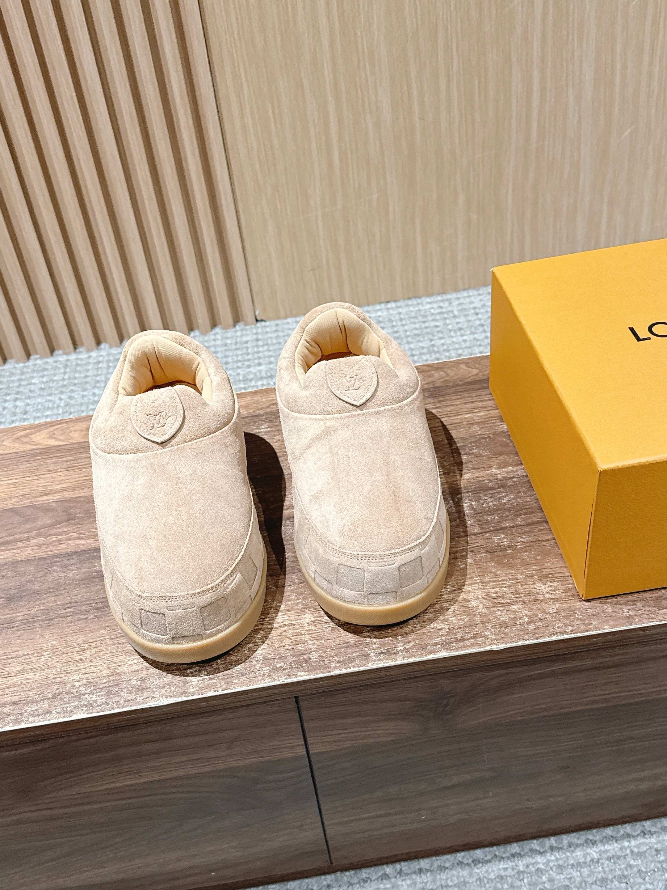 𝐋𝐎𝐔𝐈𝐒 𝐕𝐔𝐈𝐓𝐓𝐎𝐍 𝐱 𝐍𝐢𝐠𝐨 联名款 𝐘𝐞𝐭𝐢 𝐅𝐖𝟮𝟱 驴牌胖丁丑萌便鞋 以绒面牛皮革为基底,局部压印Nigo重绎的LV Damier图案,巧妙呼应中国入室脱鞋传统,“小脚”美学融入中国式街头基因。掌印橡胶外底暗藏LV字母与Monogram花卉,意大利制造的细腻工艺,在舒适便鞋型里尽显品牌底蕴。 预订模式更添独特格调,是传统与潮流, Size:35-45