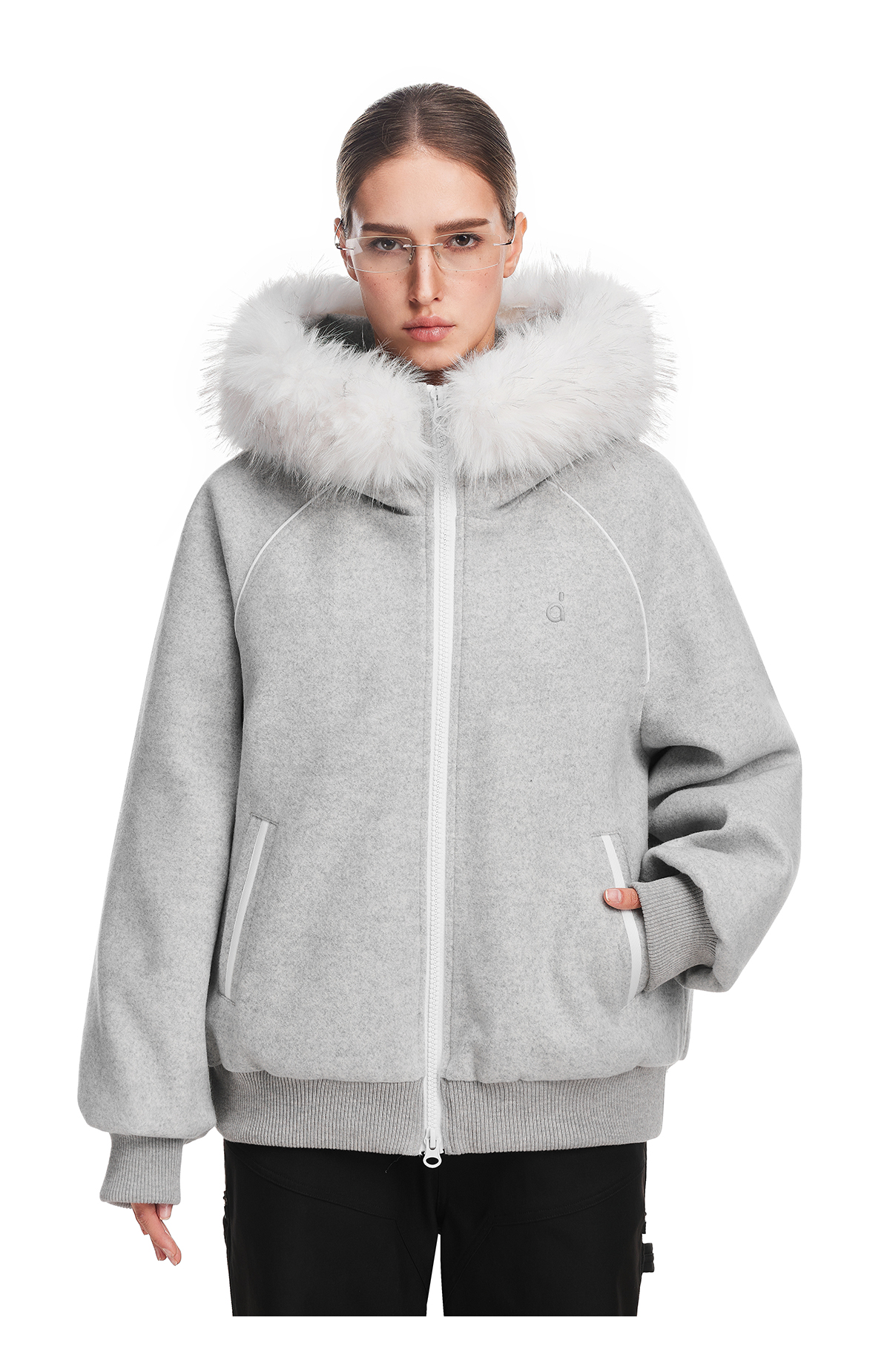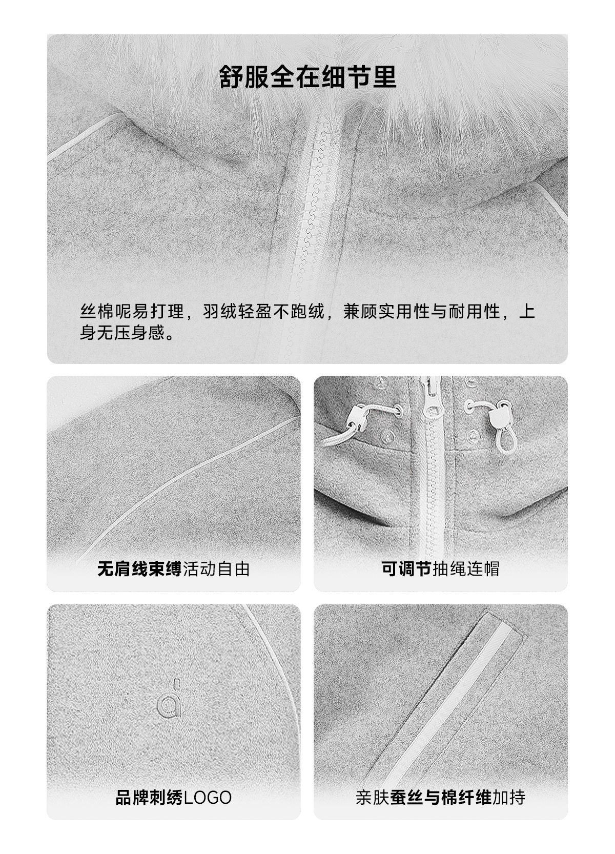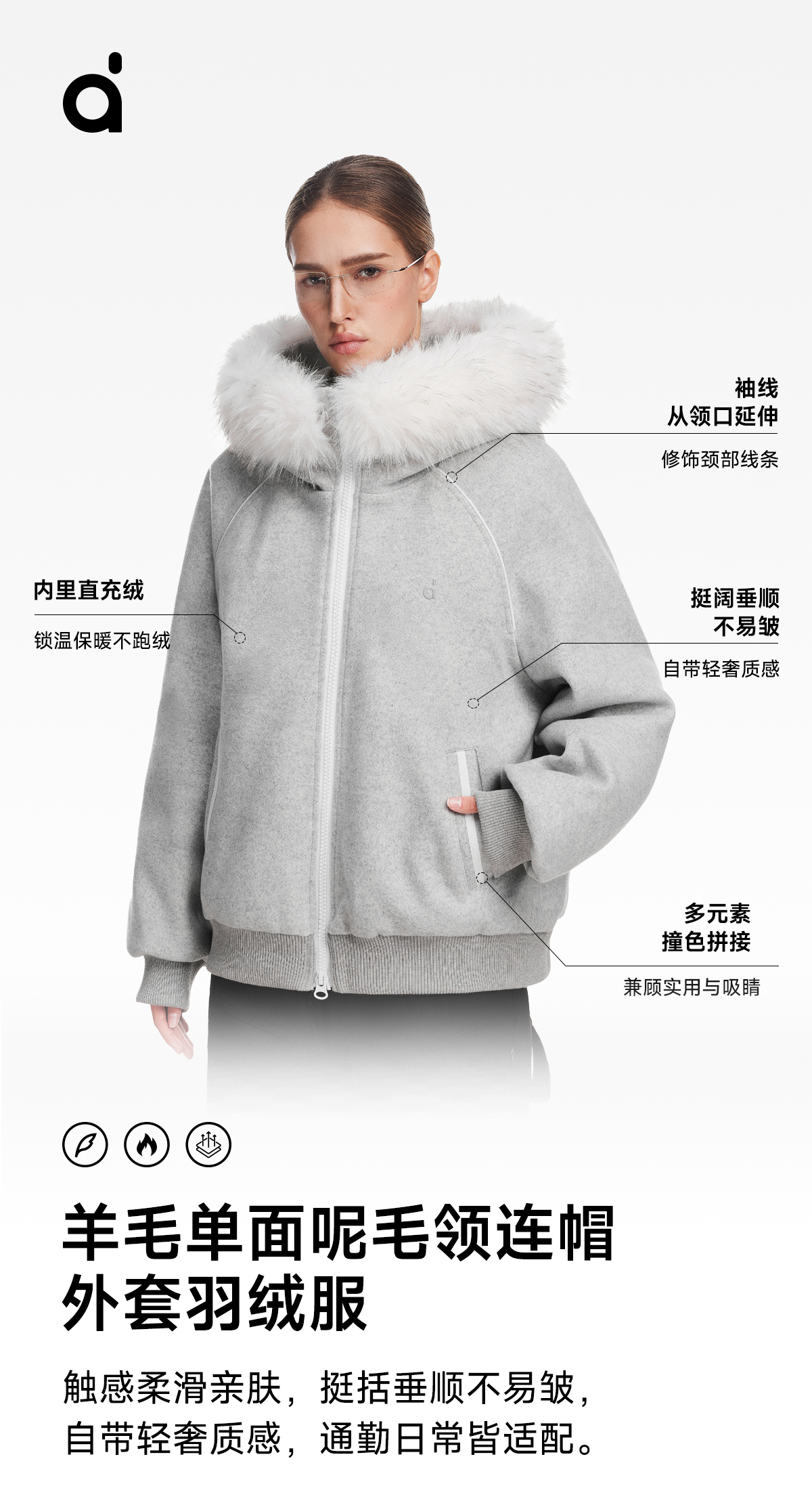 FDR旗舰店 简约休闲保暖羊毛单面呢外套男毛领连帽羽绒服冬季女款