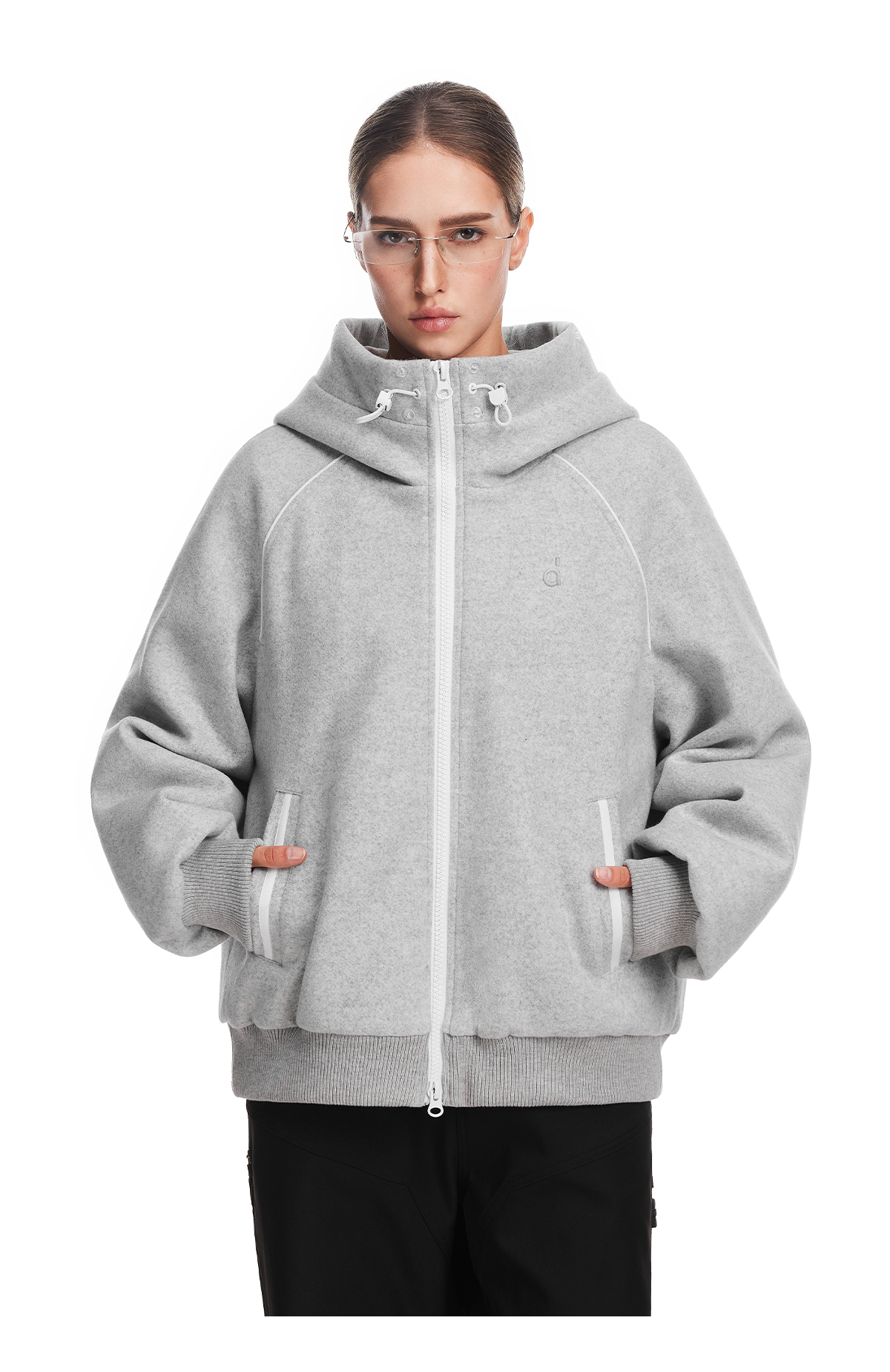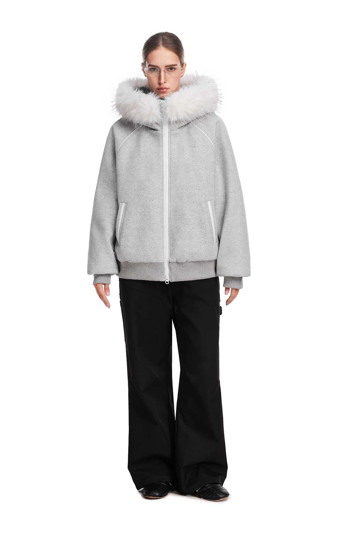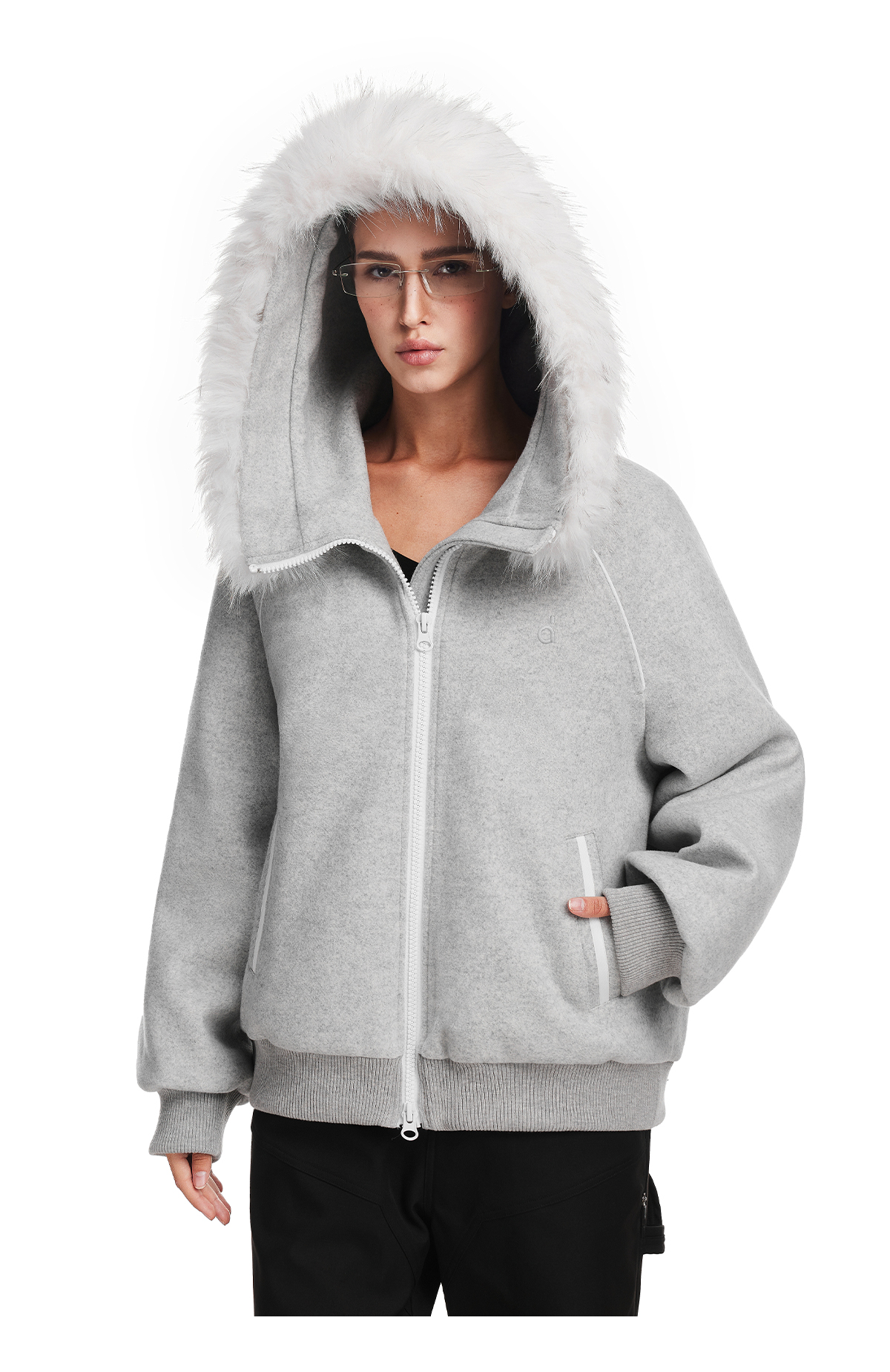 FDR旗舰店 简约休闲保暖羊毛单面呢外套男毛领连帽羽绒服冬季女款