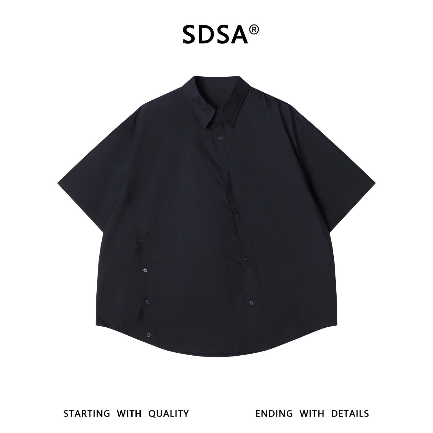 SDSA男装2026新款高贵轻奢日系简约斜纽扣小众设计短袖衬衫百搭