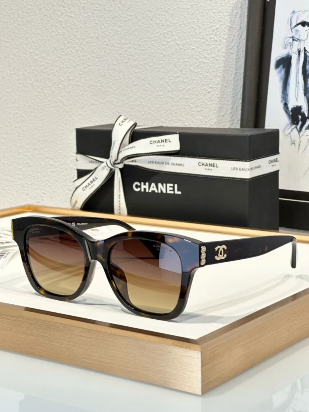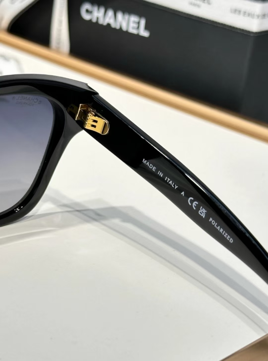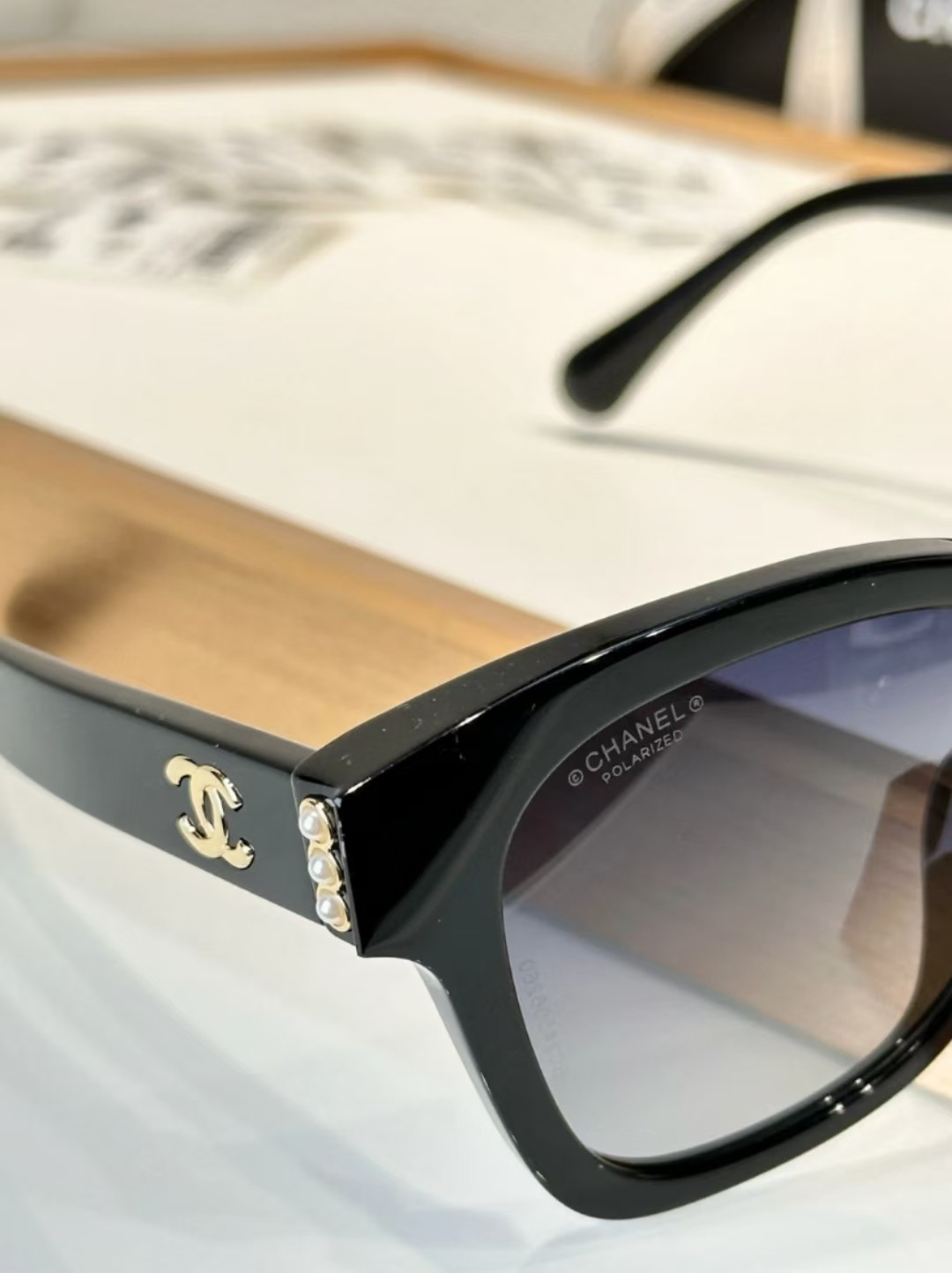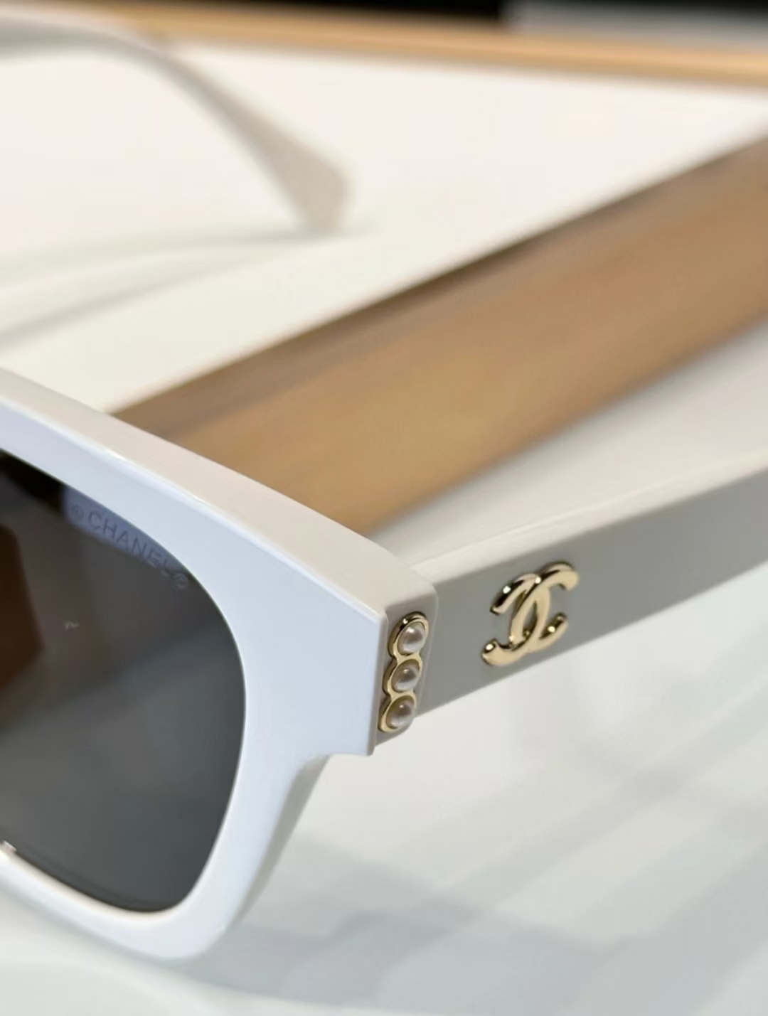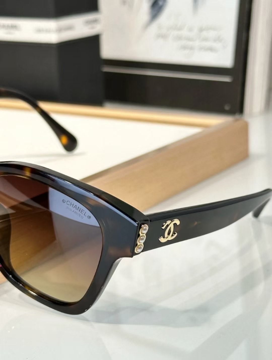 板材框架,简约的梨形版型,搭配偏光尼龙镜片,侧面双C标志+珍珠元素,少女气质稳稳拿捏!