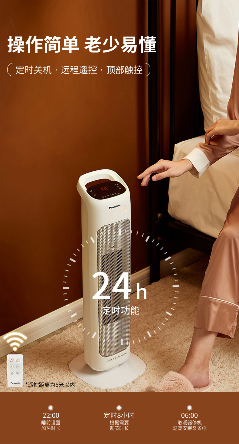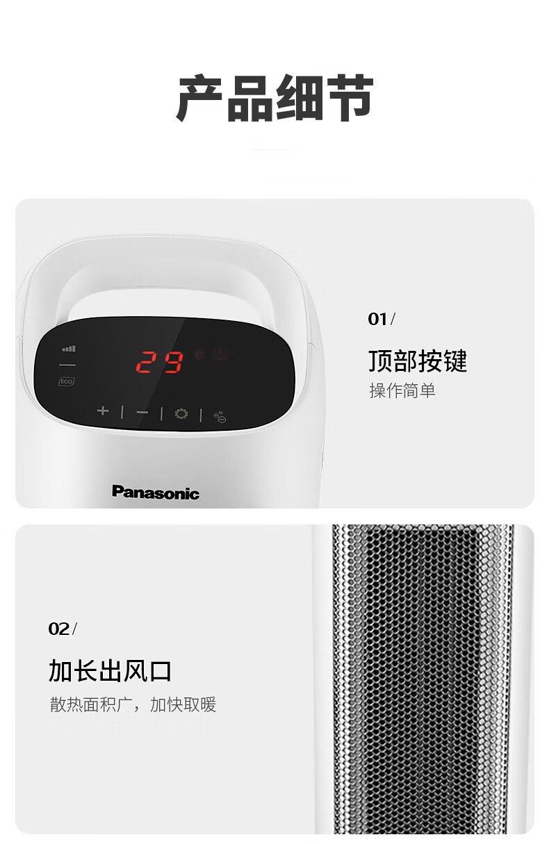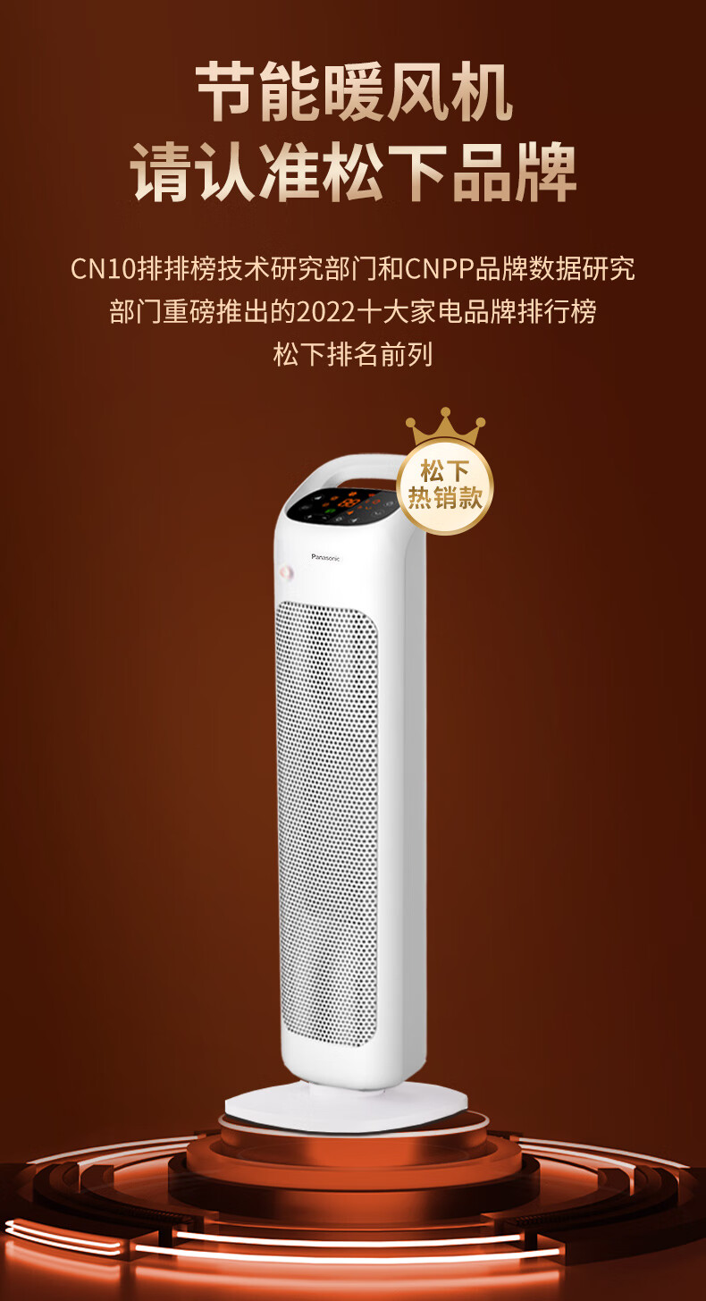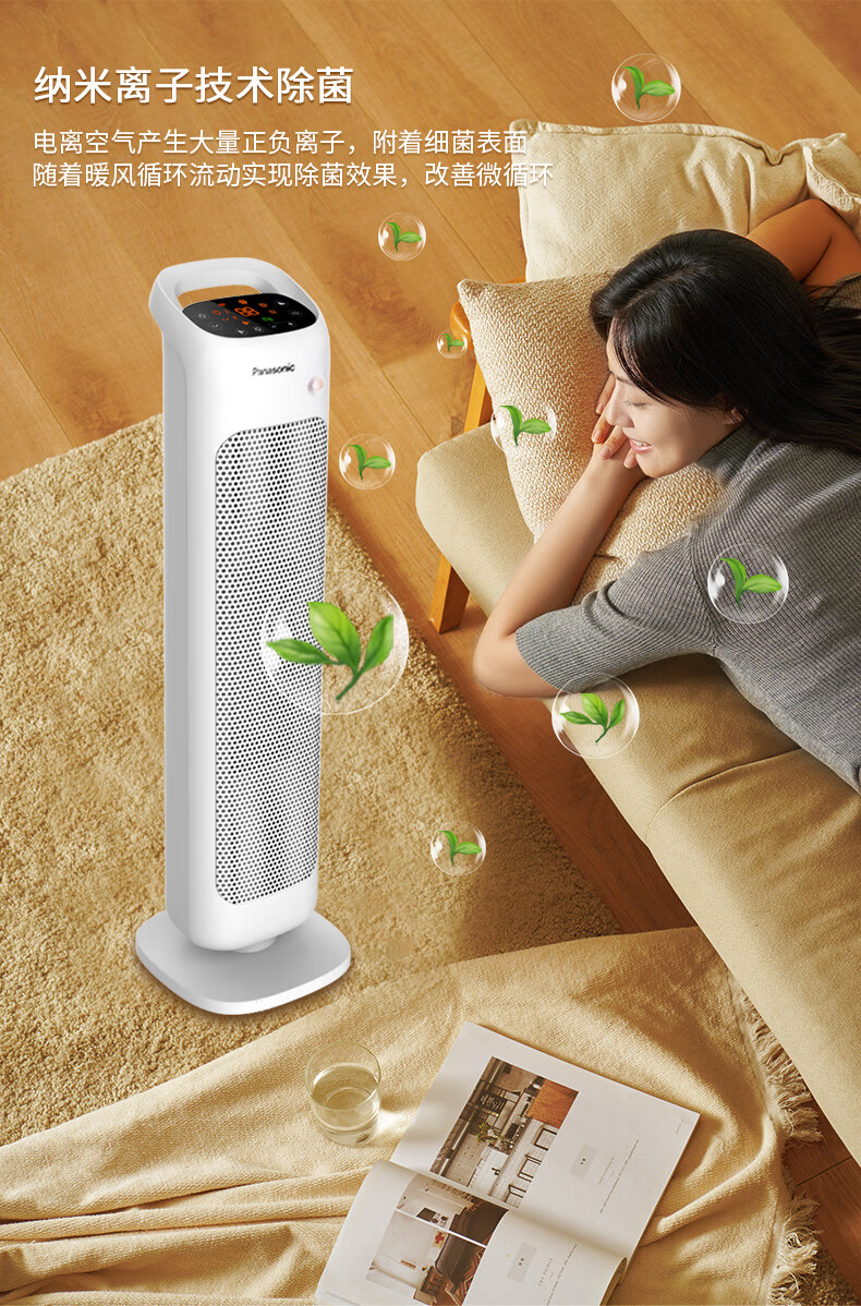 松下(Panasonic)取暖器暖风机家用冷暖两用离子群净化速热摇头电暖风恒温电暖器立式遥控电暖气 P2012CW【2000W+除菌除醛+冷暖两用】