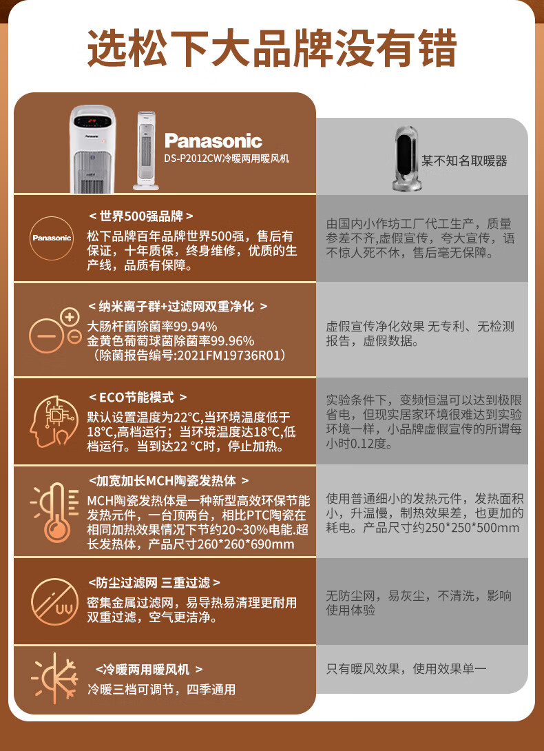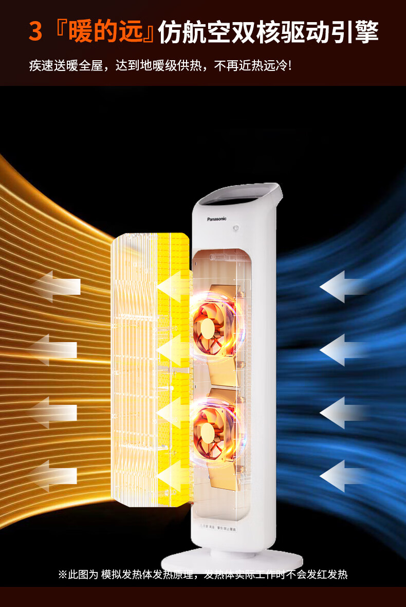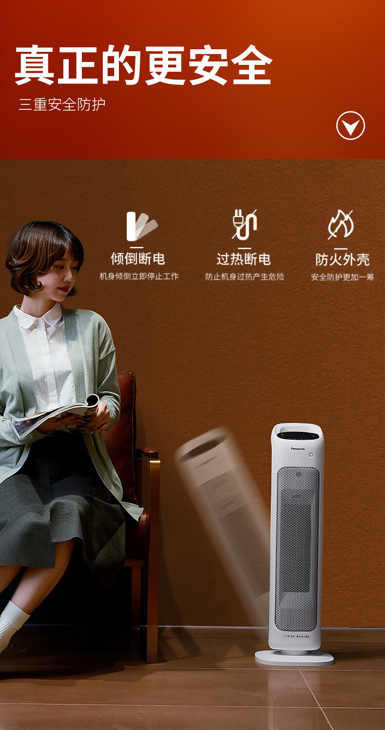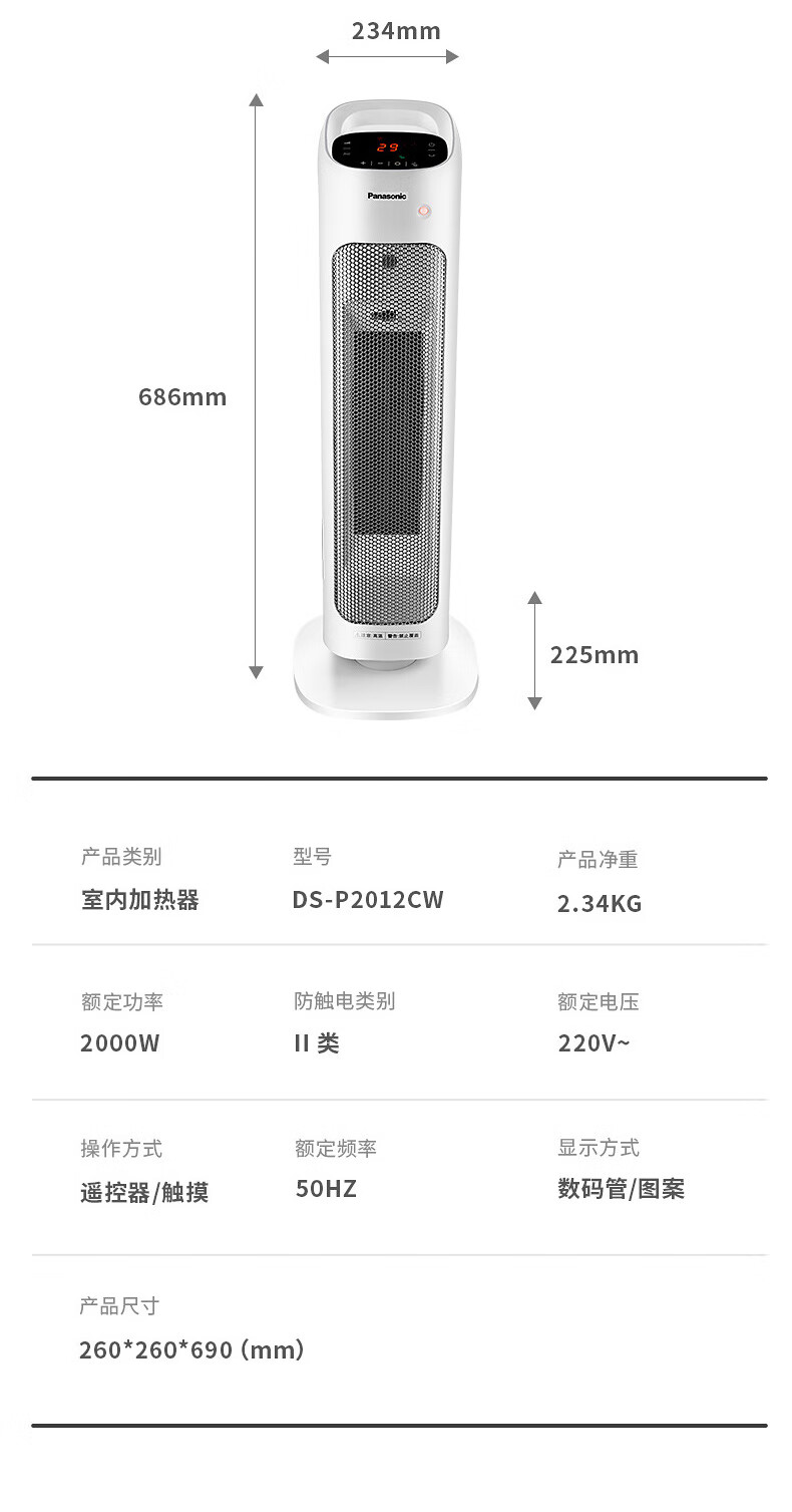 松下(Panasonic)取暖器暖风机家用冷暖两用离子群净化速热摇头电暖风恒温电暖器立式遥控电暖气 P2012CW【2000W+除菌除醛+冷暖两用】