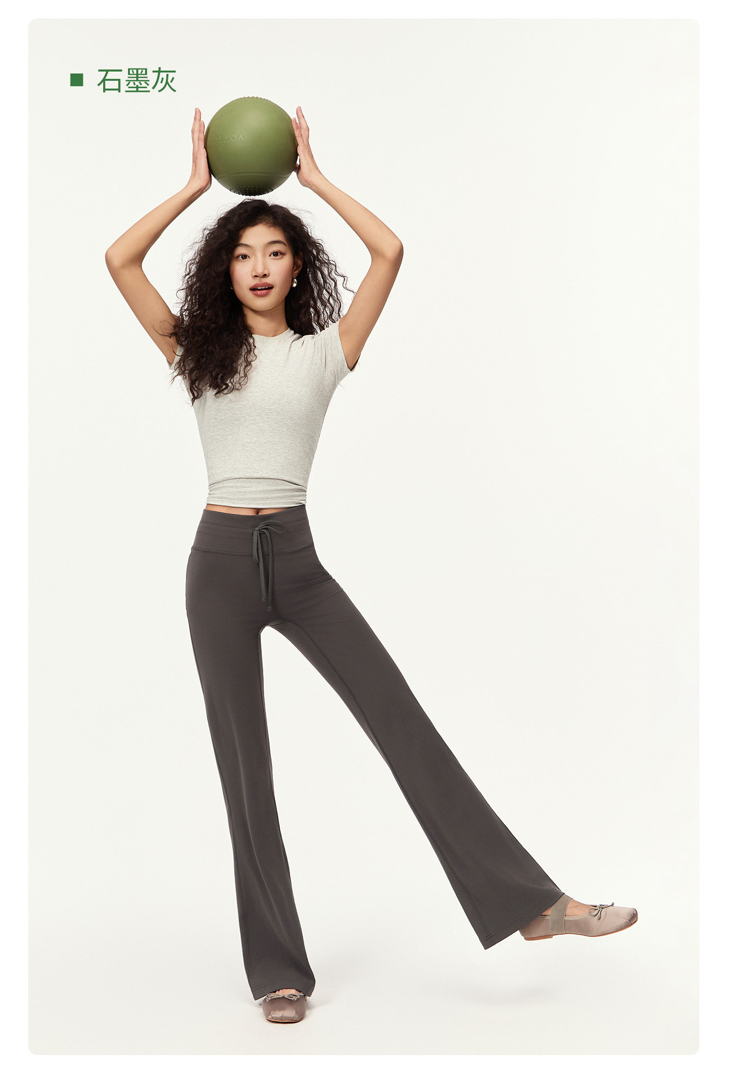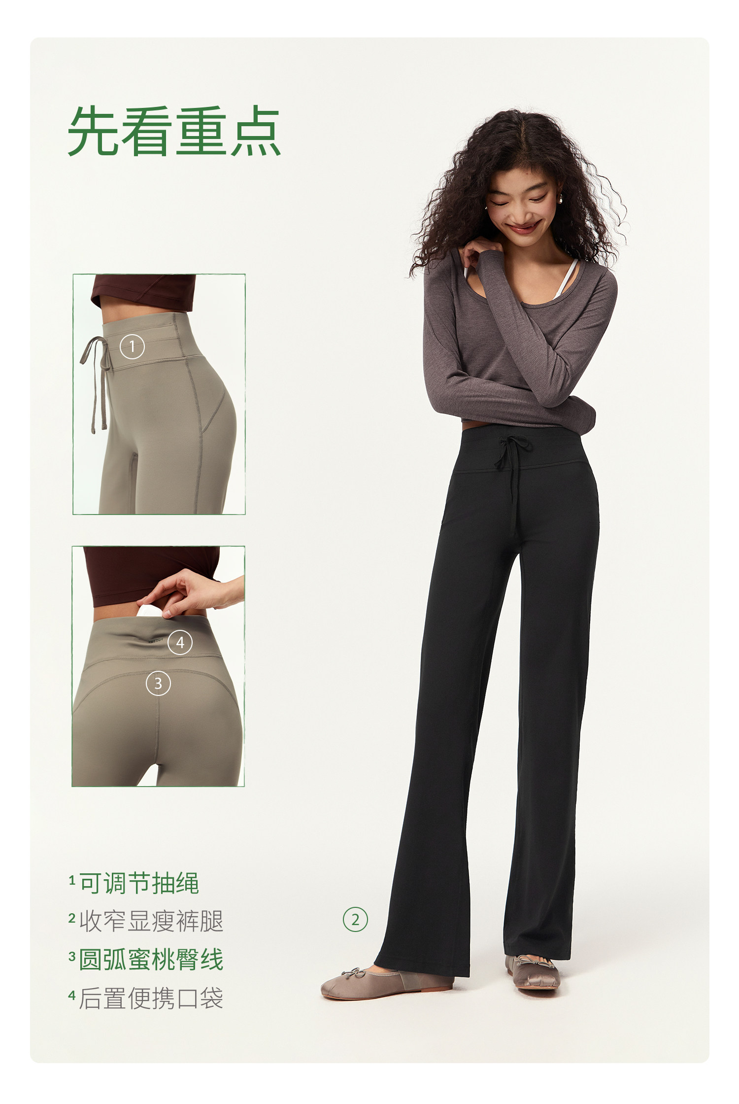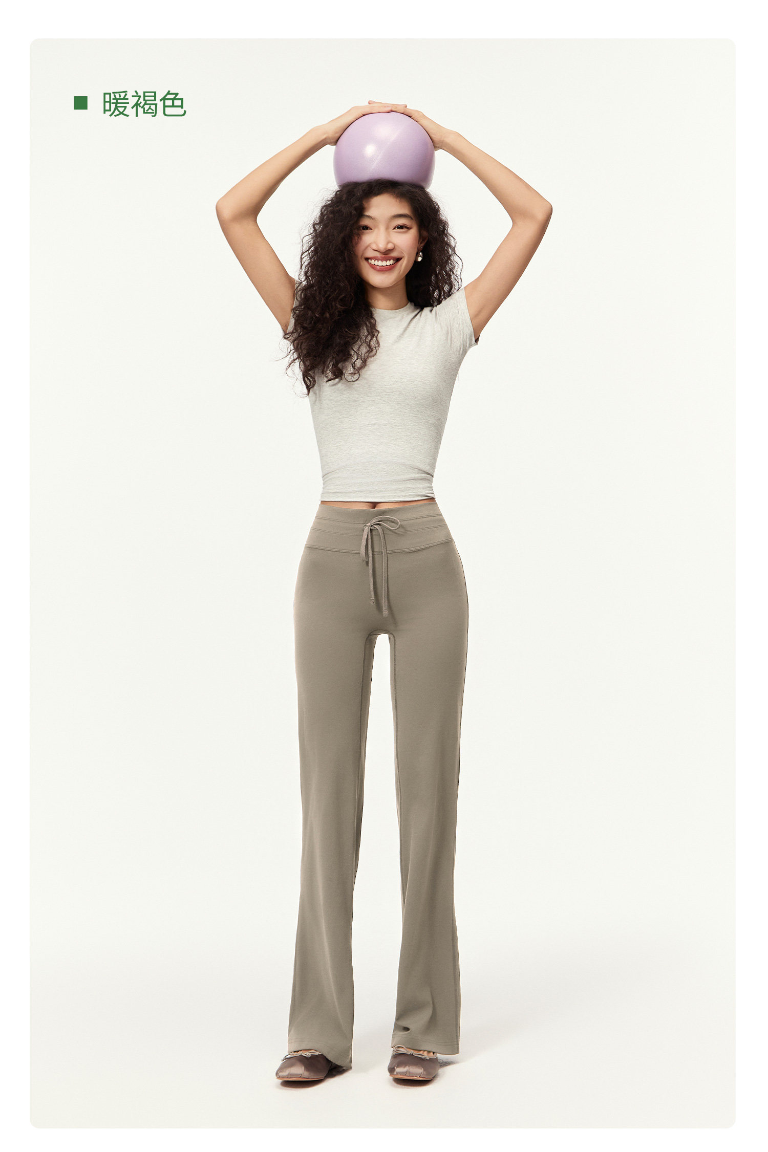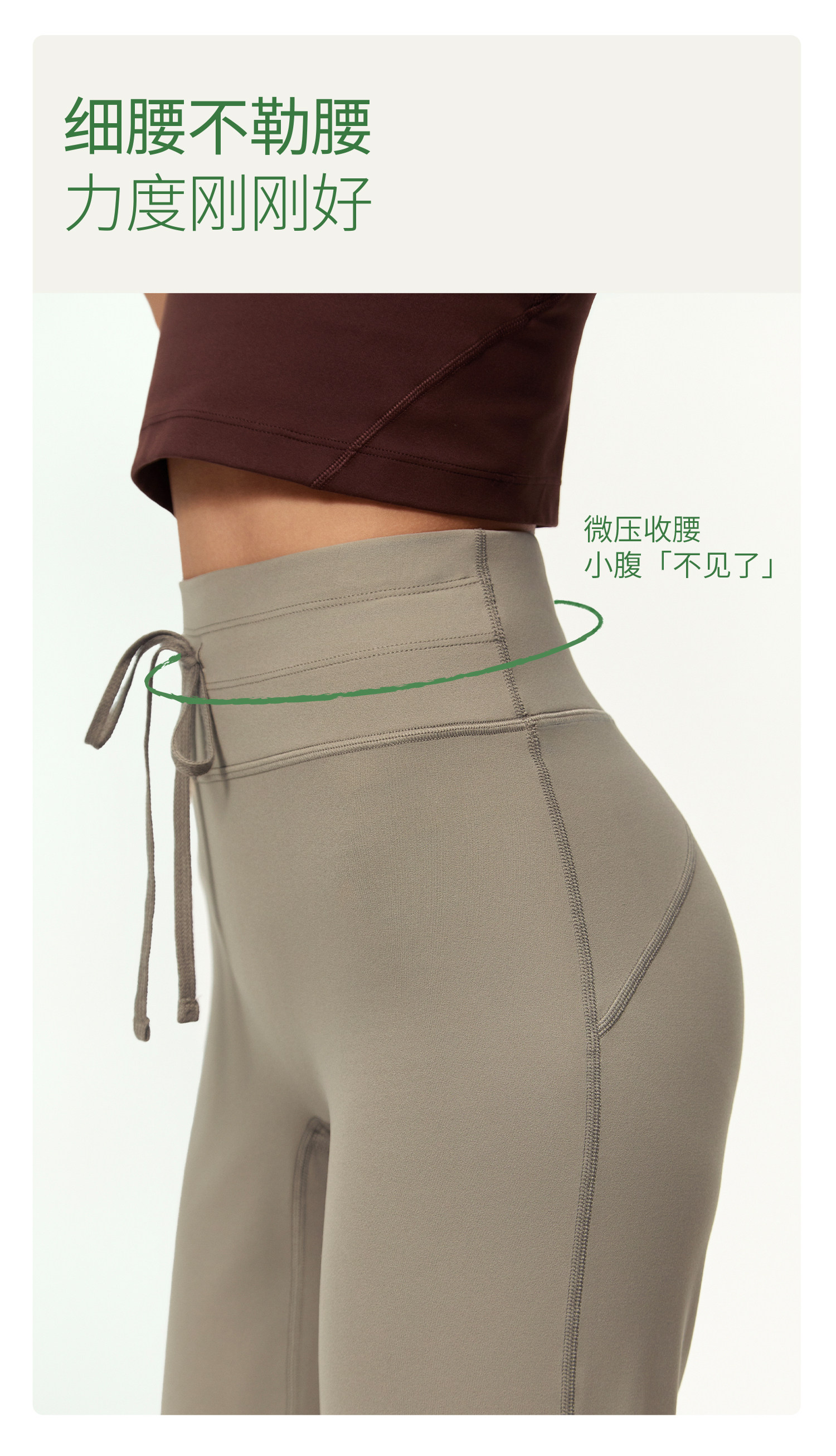 YOTTOY抽绳微喇裤 瑜伽长裤女 喇叭高腰提臀 运动普拉提训练服 健身裤