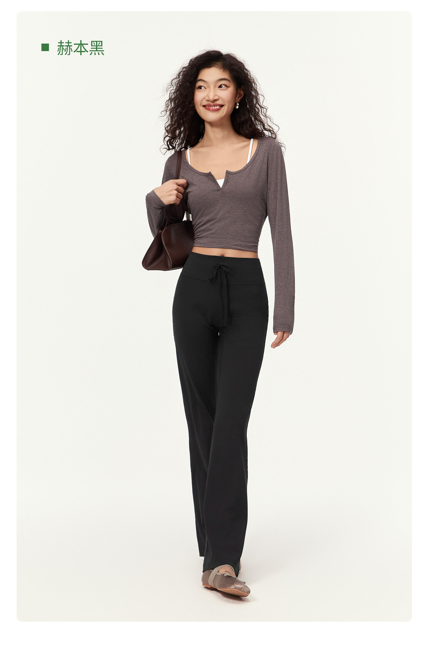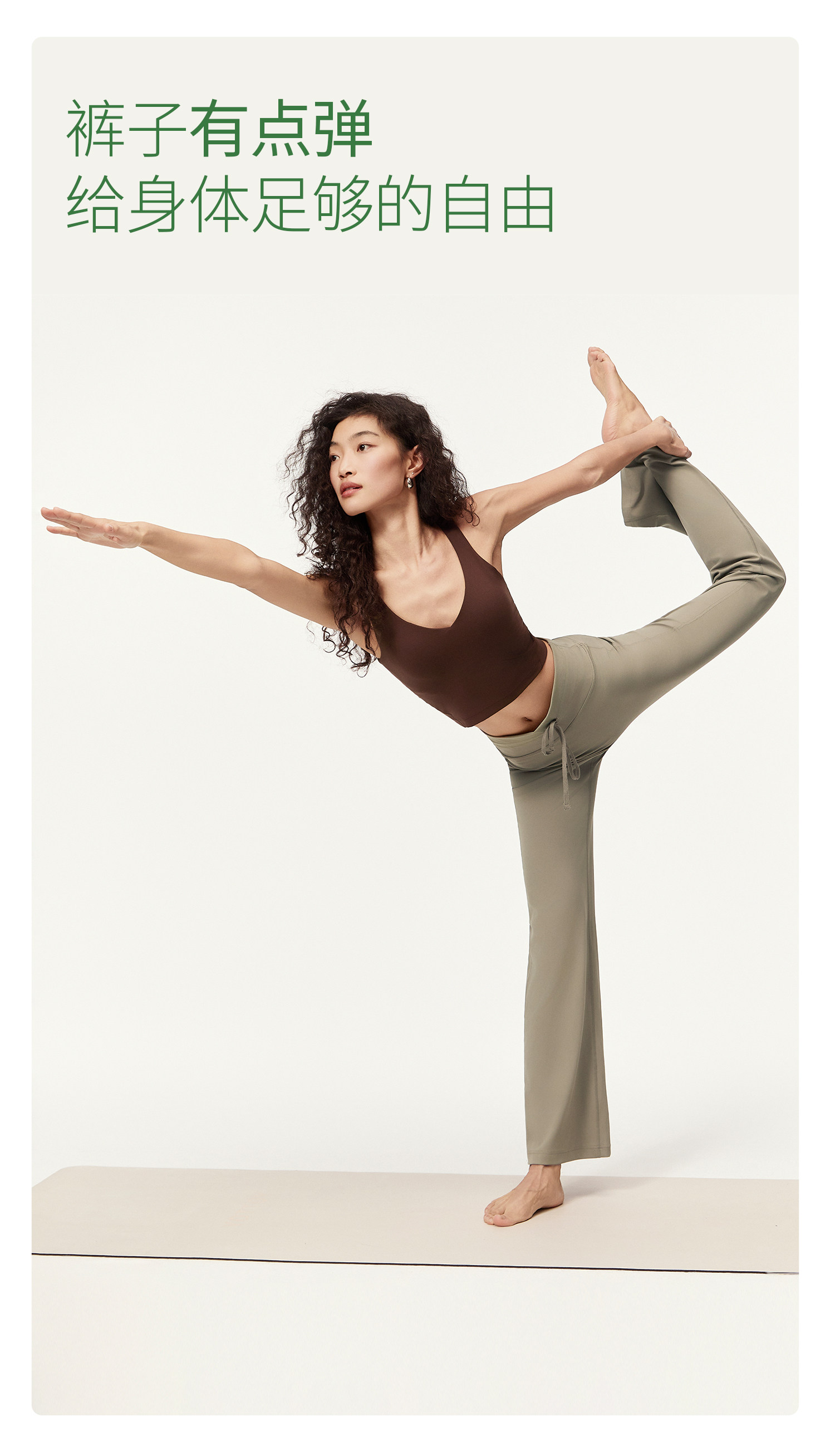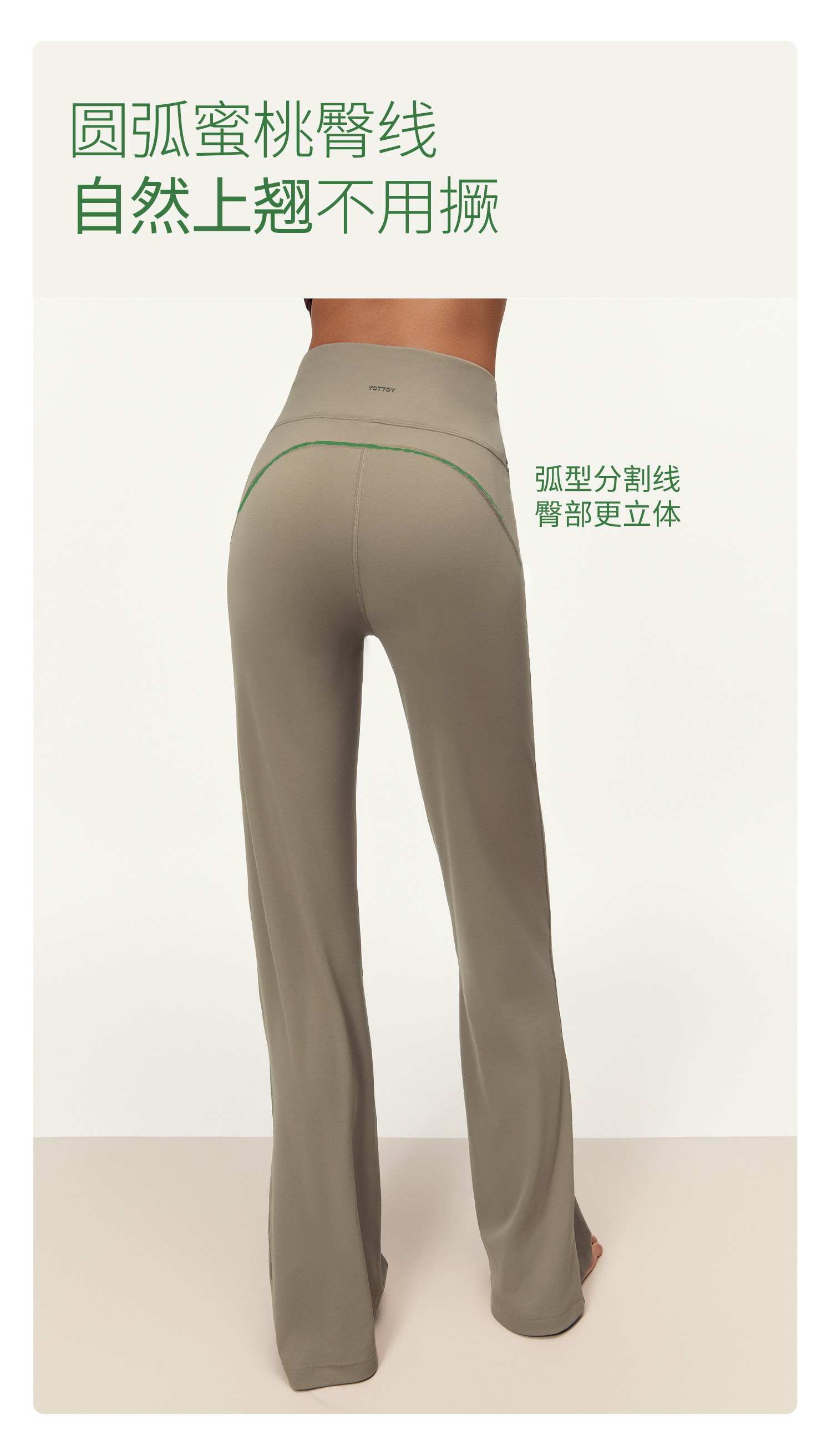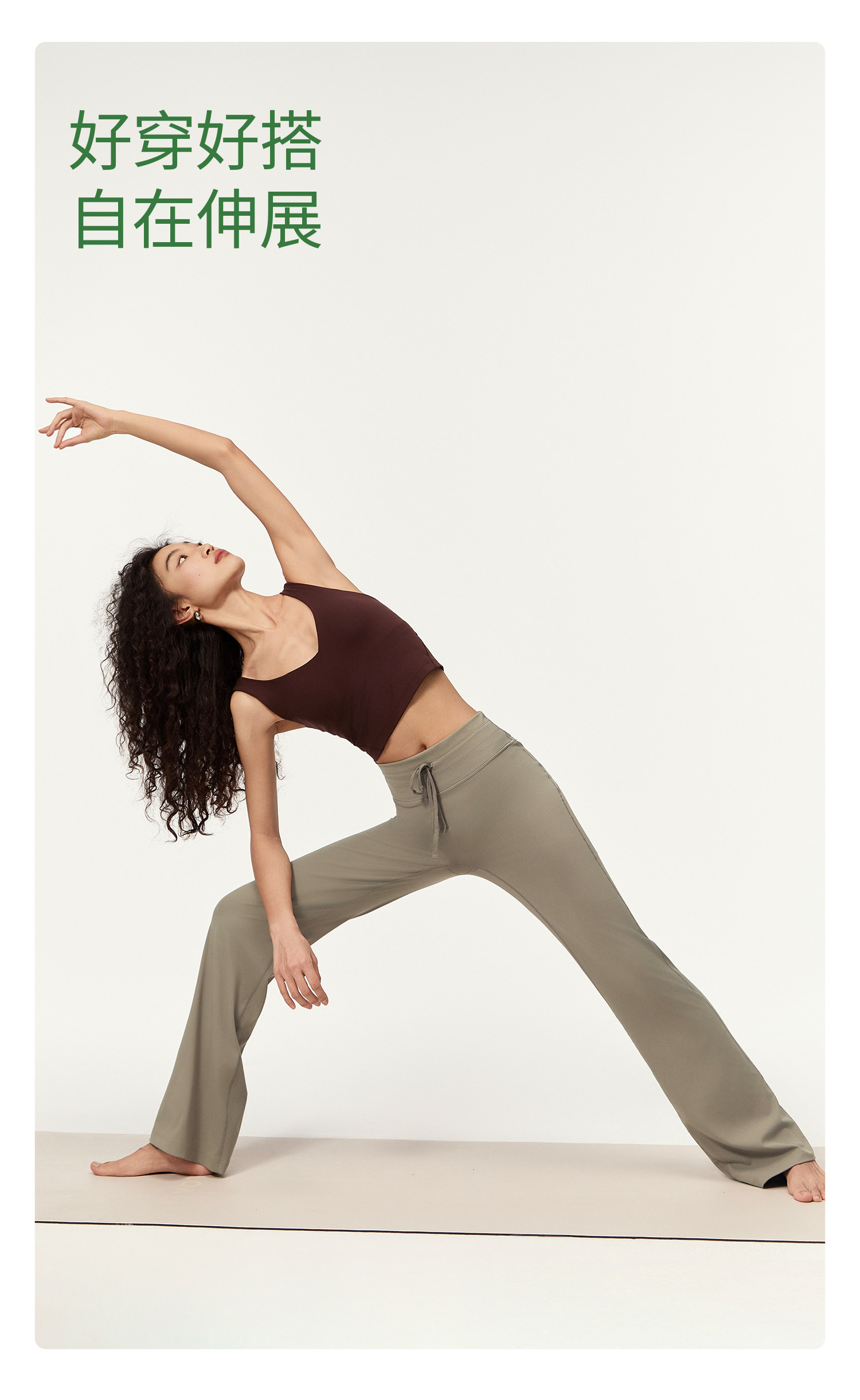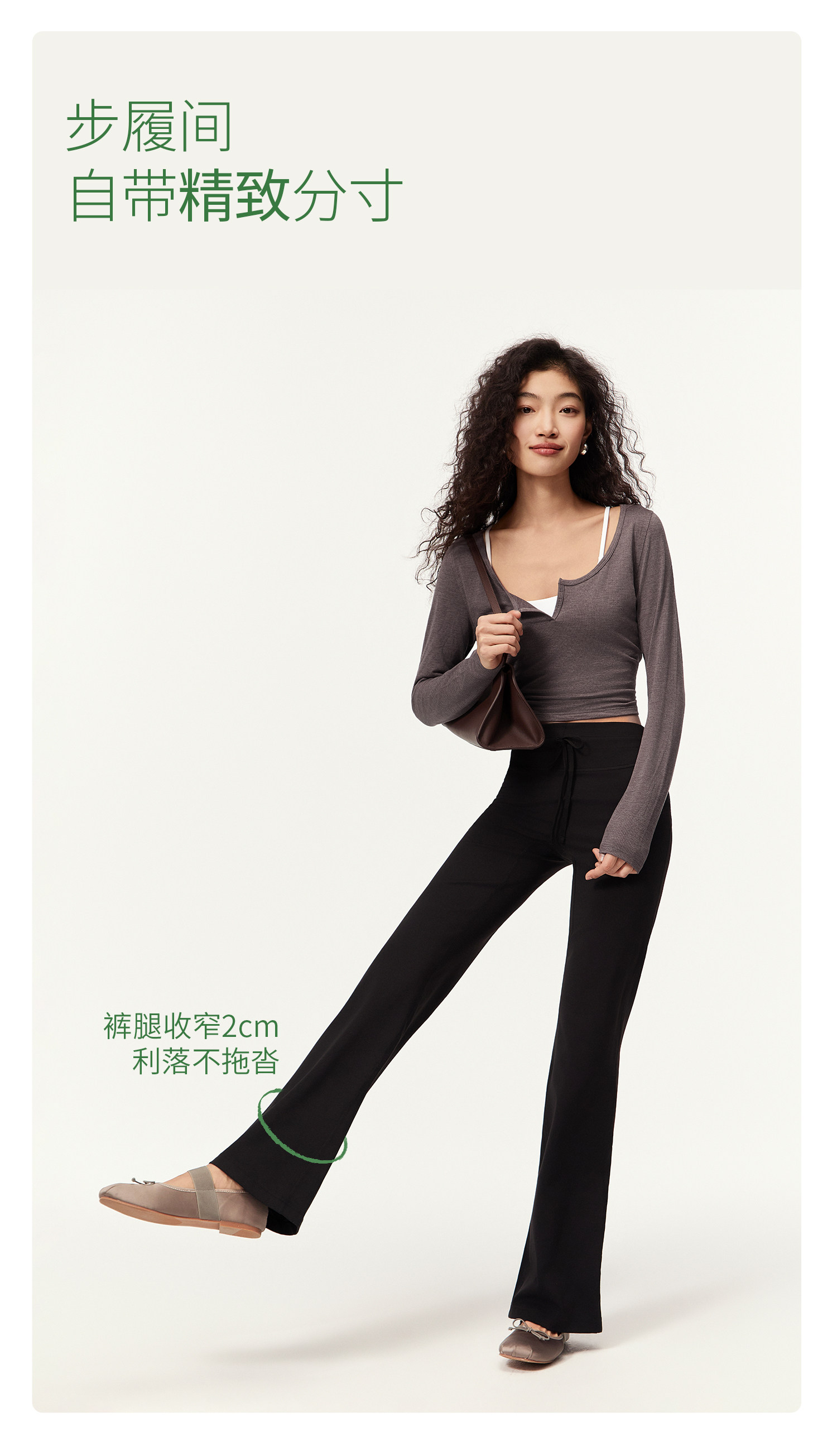 YOTTOY抽绳微喇裤 瑜伽长裤女 喇叭高腰提臀 运动普拉提训练服 健身裤