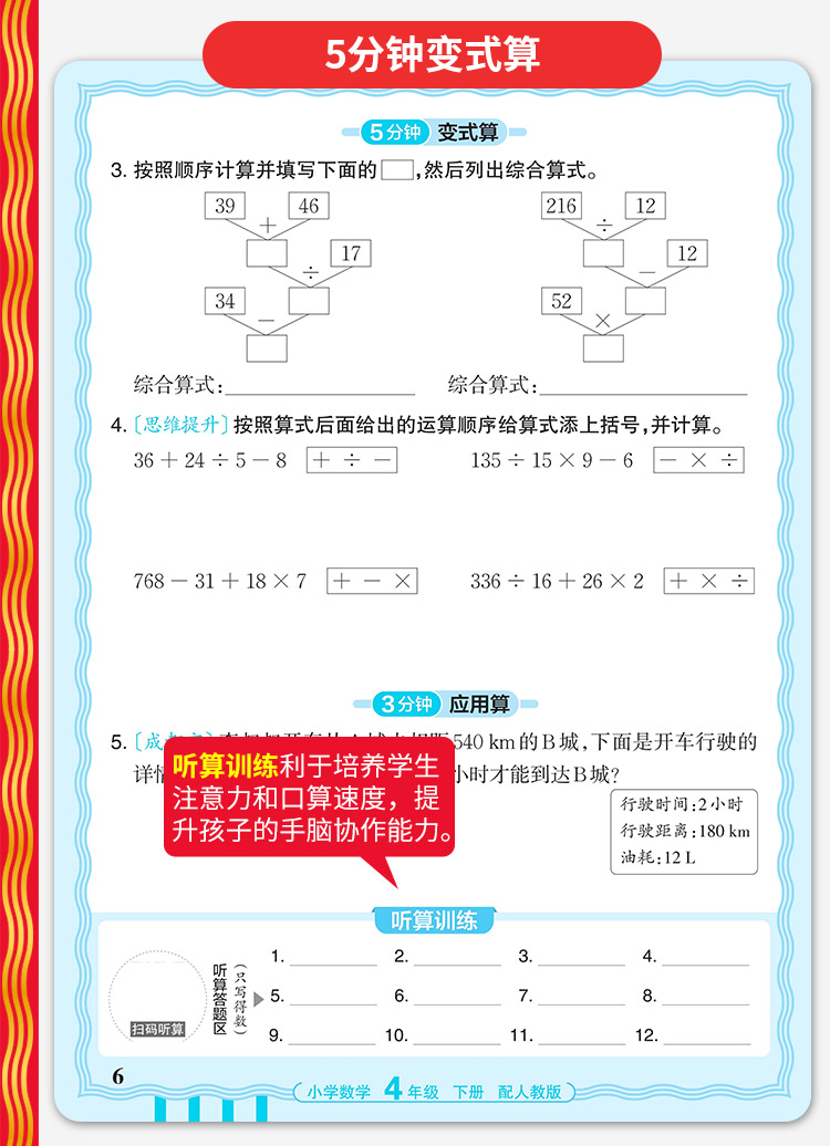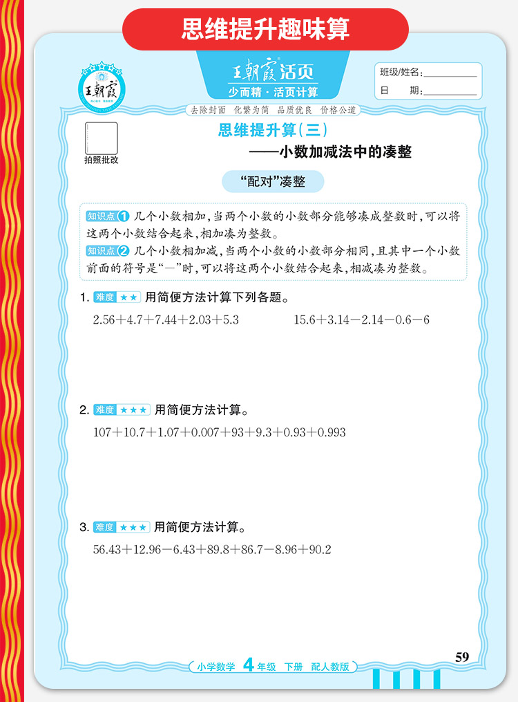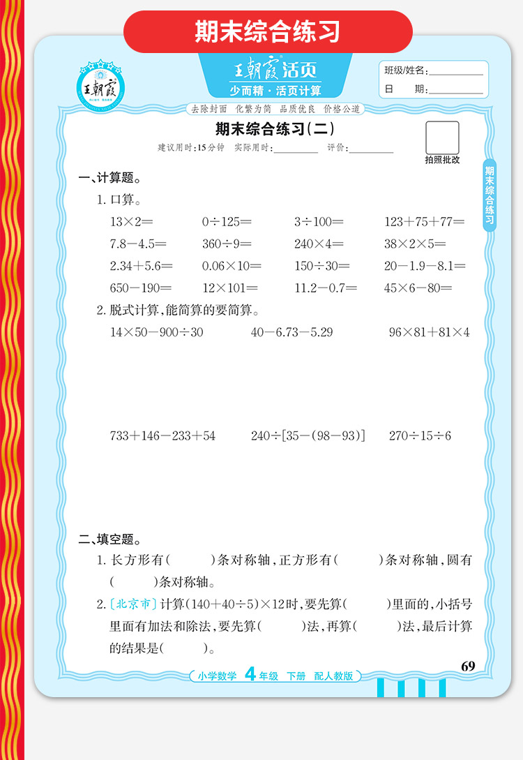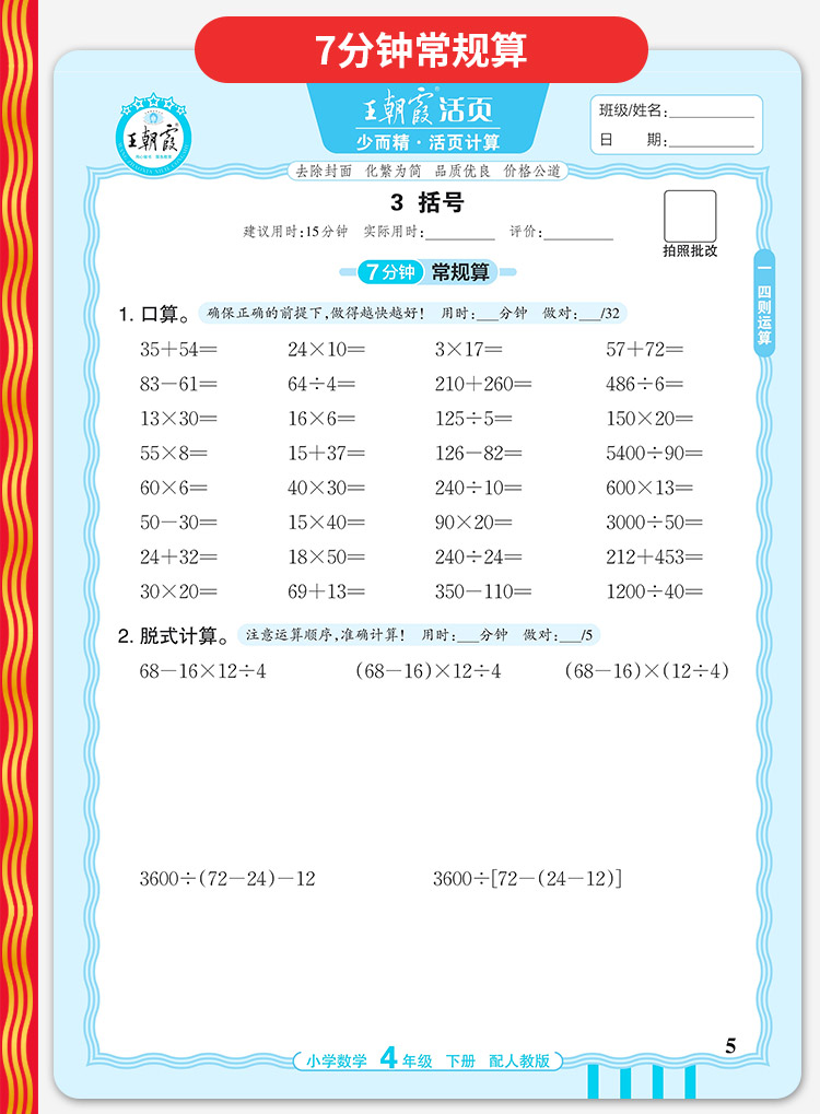 2026春下册王朝霞新品人教版活页计算1-6年级