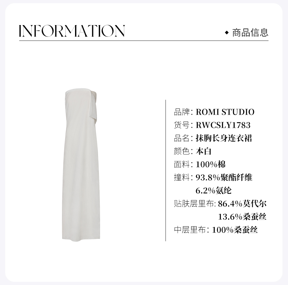 ROMI STUDIO极简度假风高支棉桑蚕丝双层抹胸式连衣裙 RWCSLY1783