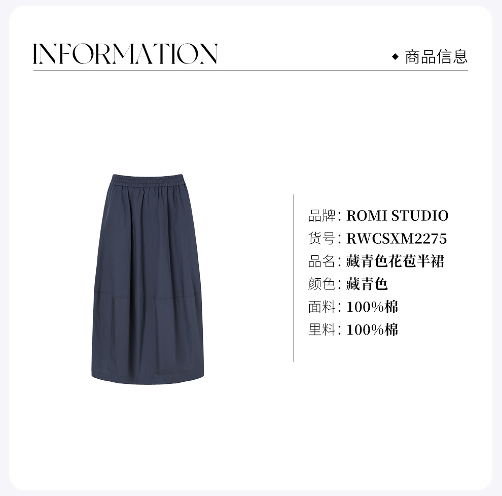ROMI STUDIO“简约随性”100%棉松紧腰挺括蓬松花苞半裙 RWCSXM2275