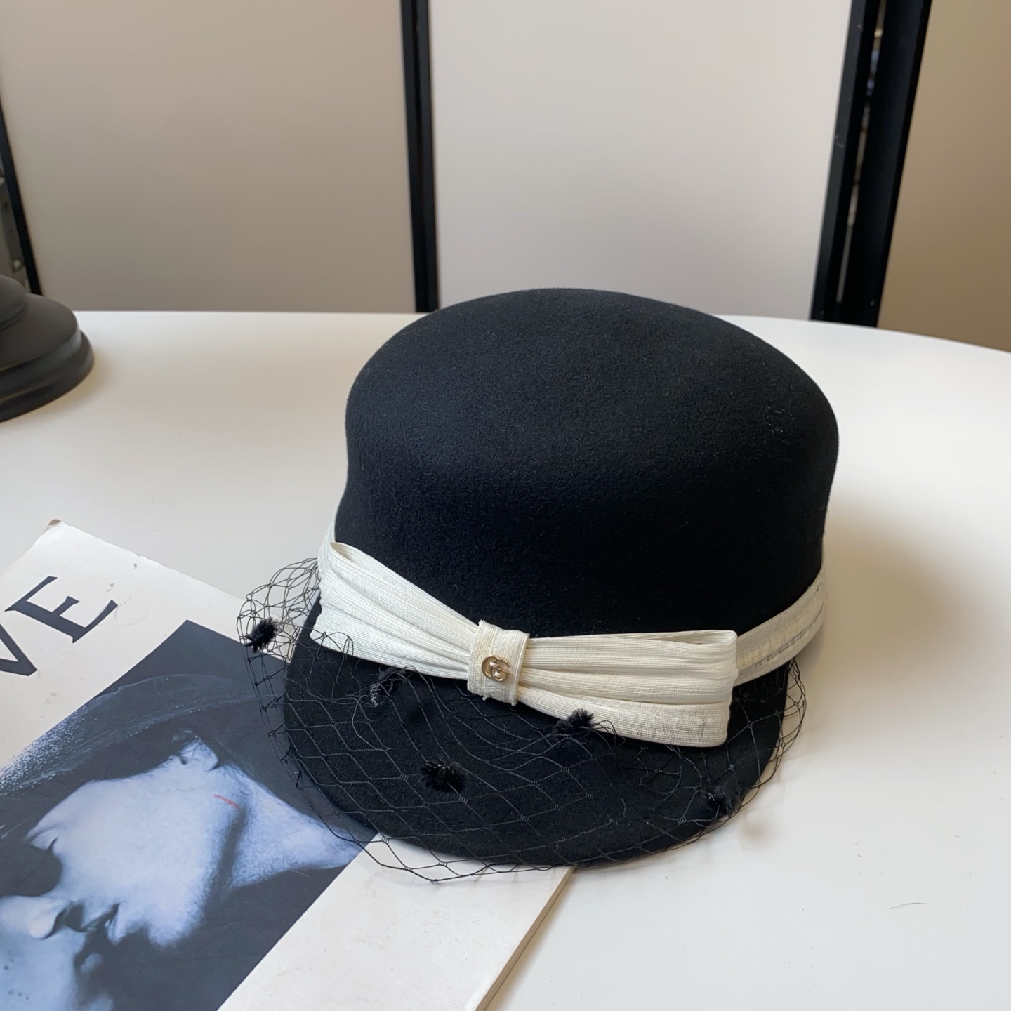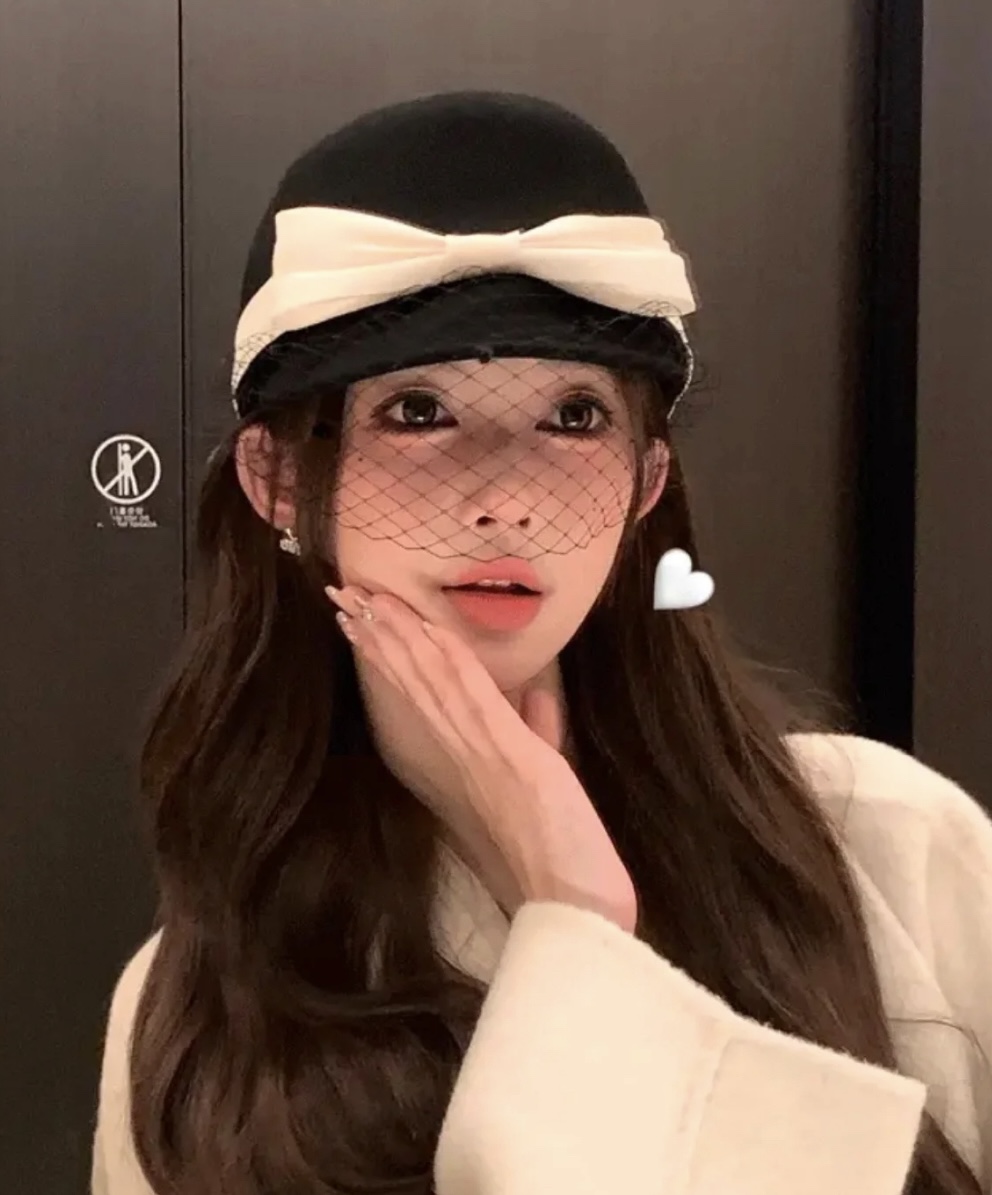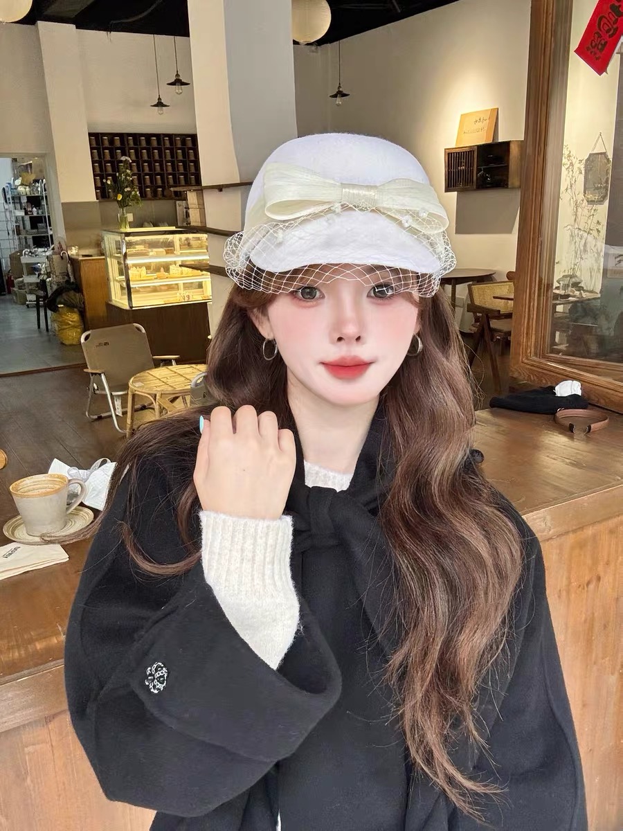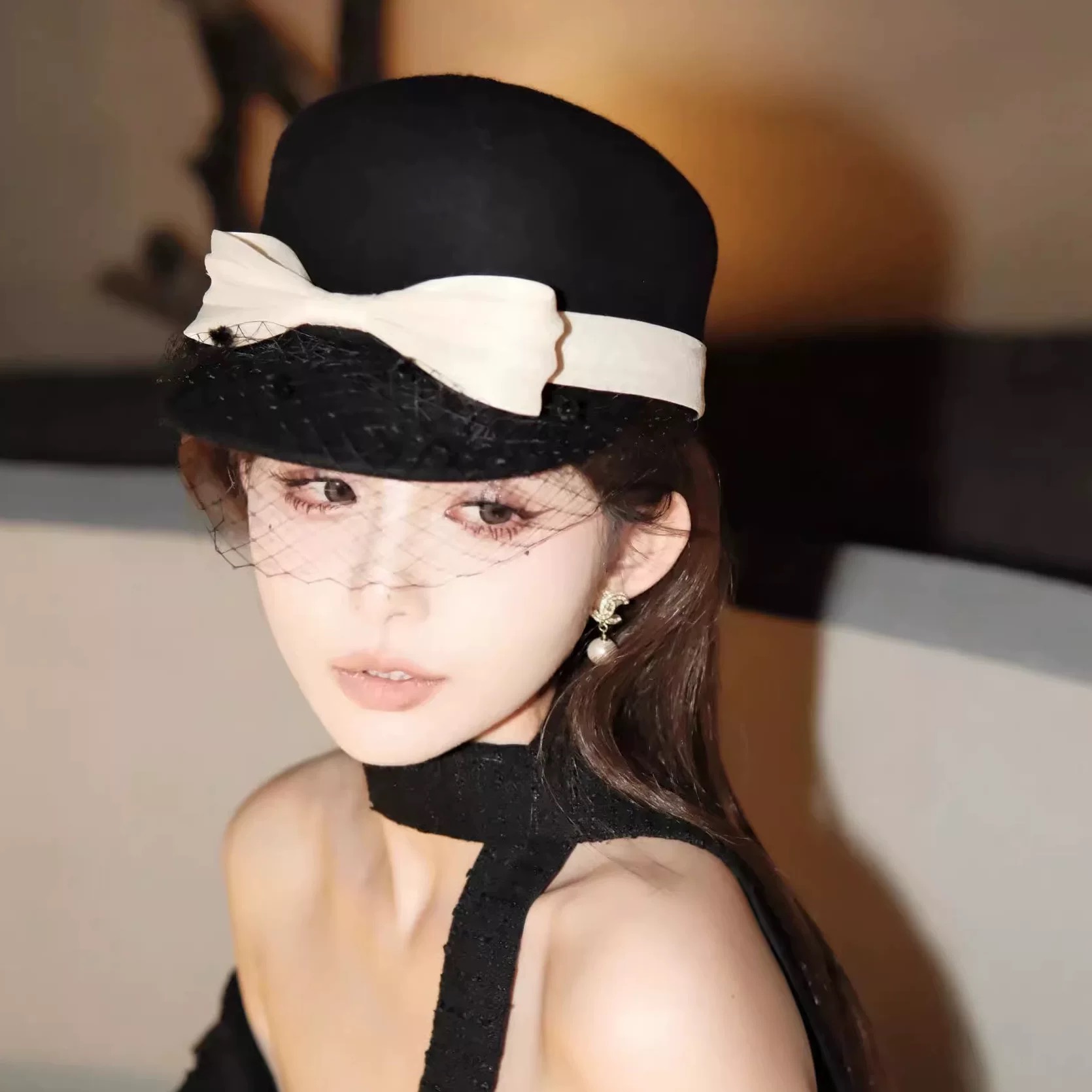 蝴蝶结装饰纱网羊毛马术帽(COCO)