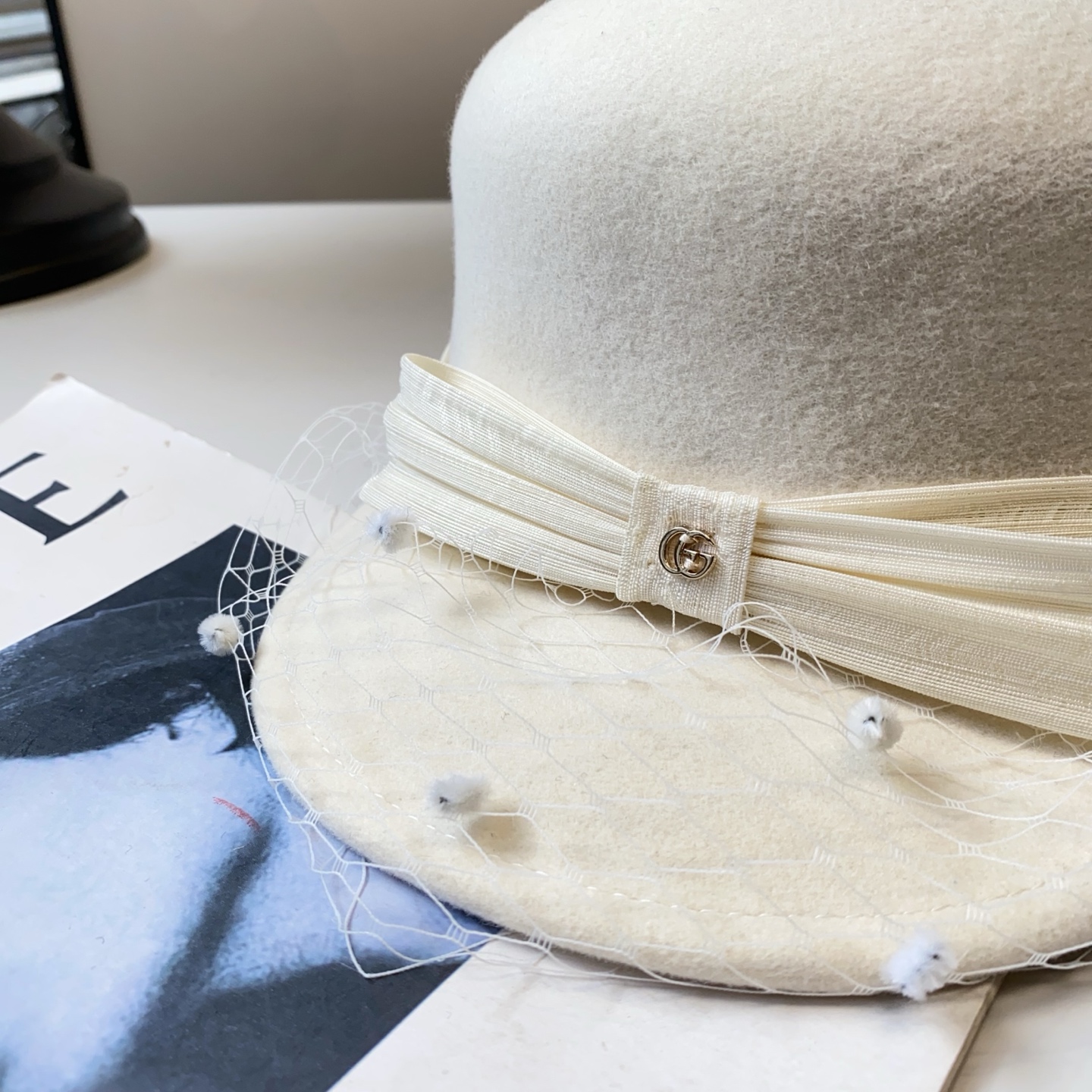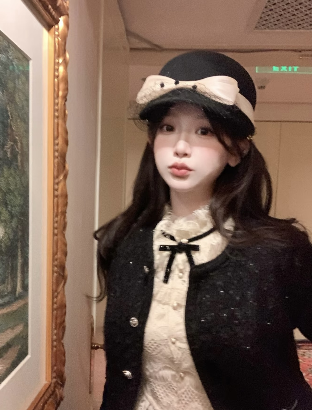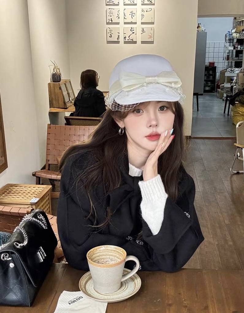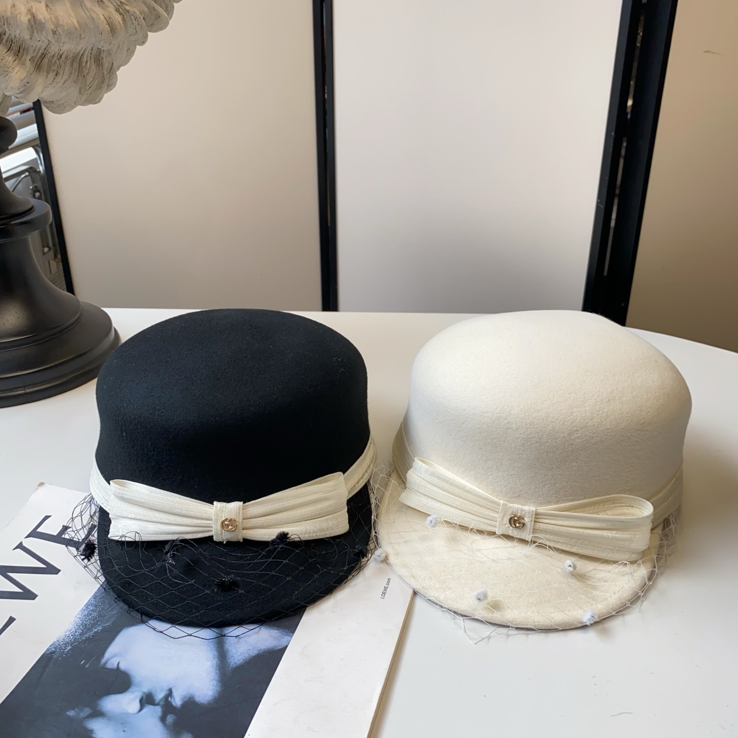 蝴蝶结装饰纱网羊毛马术帽(COCO)