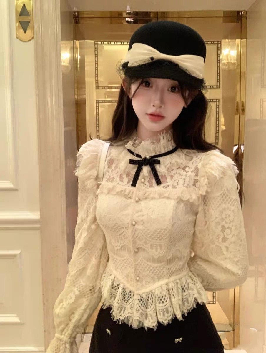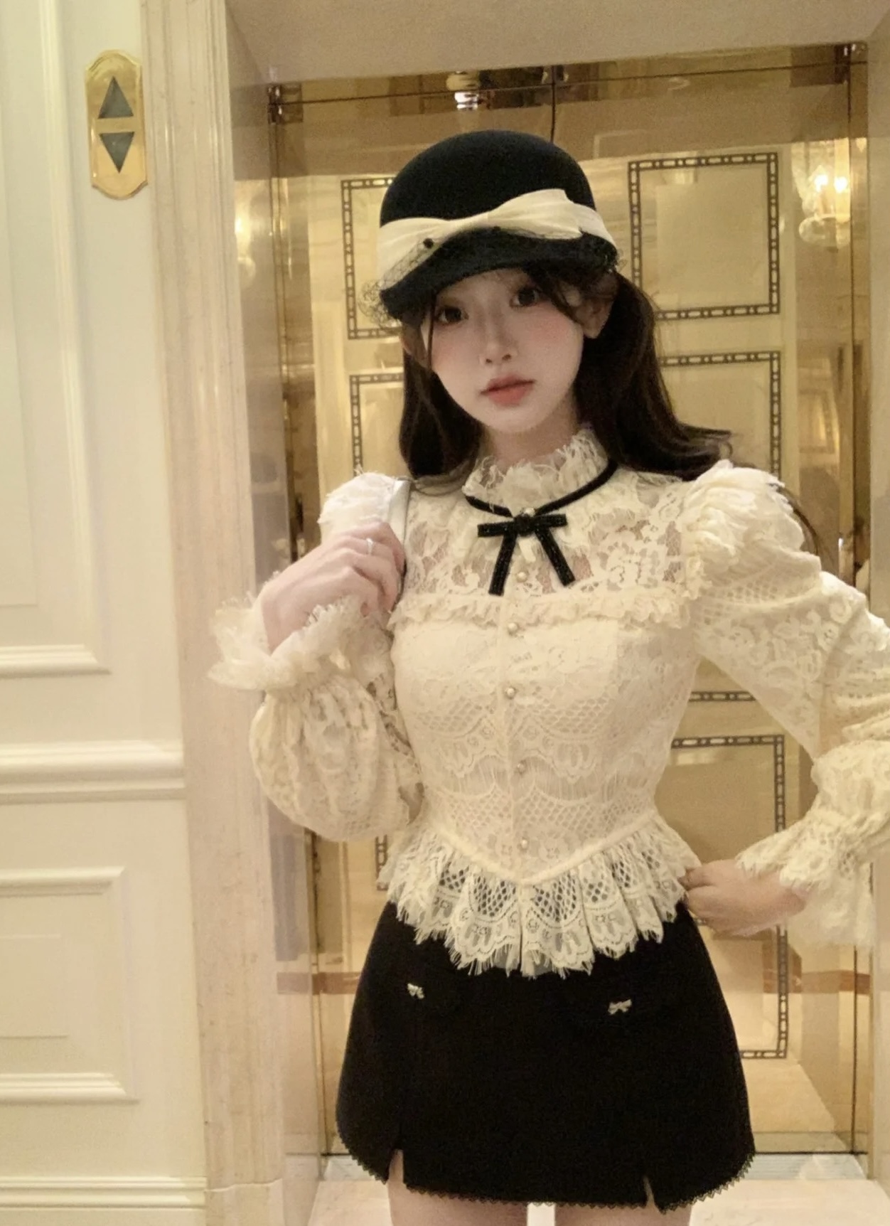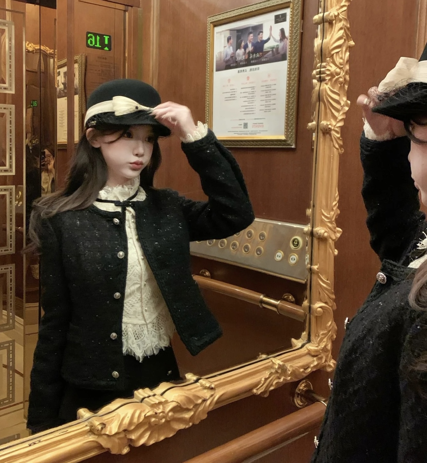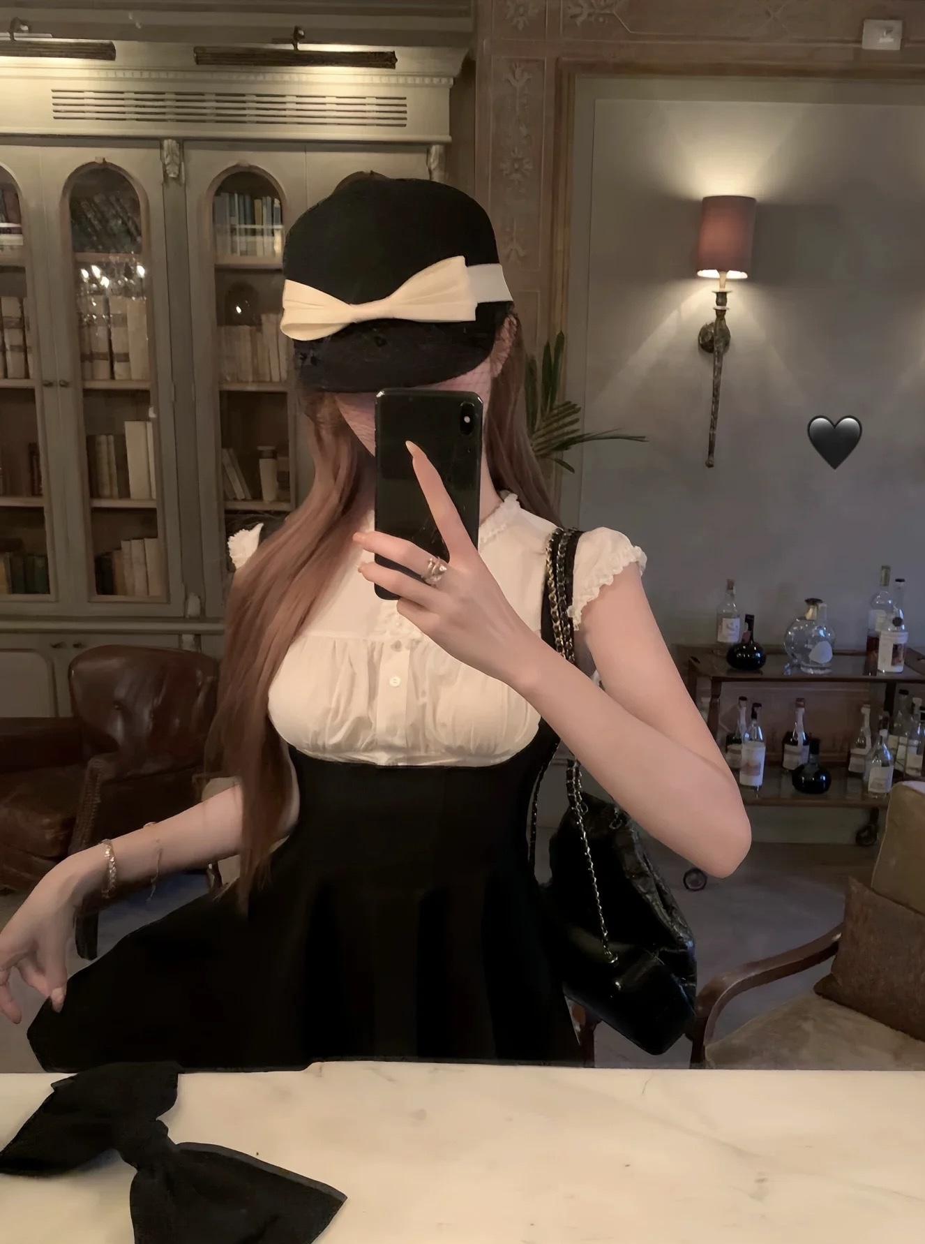 蝴蝶结装饰纱网羊毛马术帽(COCO)
