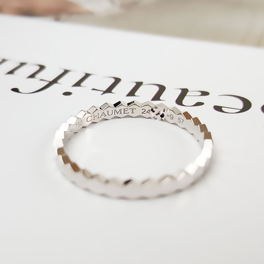 【95新】CHAUMET尚美Bee de Chaumet爱·巢系列18K白金蜂巢戒指57号中性款090226NJM43