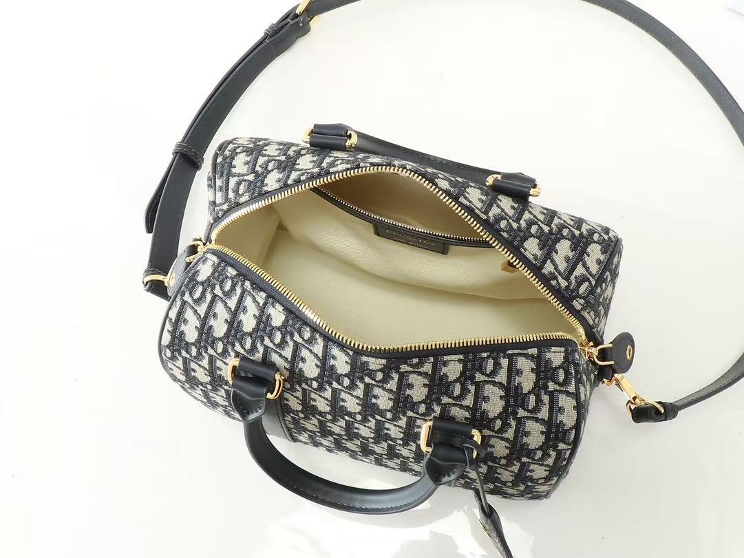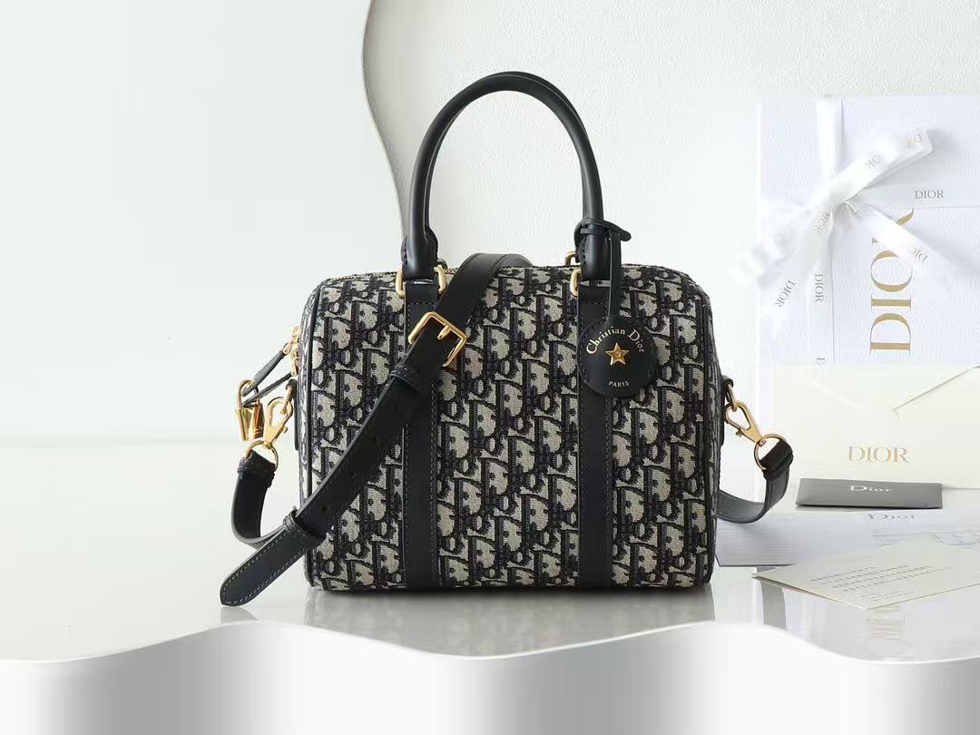 Groove🔆 25 手袋 Groove 25 手袋是二零二四冬季成衣系列新品,由玛丽亚·嘉茜娅·蔻丽 (Maria Grazia Chiuri) 设计,优雅时尚。采用蓝色 Oblique 印花面料精心制作,饰以绗缝效果超大藤格纹图案,彰显 的精湛工艺,皮革钥匙包饰以 Cistian Paris 标志,并点缀以金色饰面星星,别具一格。随挂钥匙可打开拉链挂锁,宽敞的隔层设有一个插袋和一个拉链口袋,可收纳各种日常用品。搭配皮革顶部手柄和可调节、可拆卸的肩带,可手提、肩背或斜挎,是打造日常造型的理想手袋。