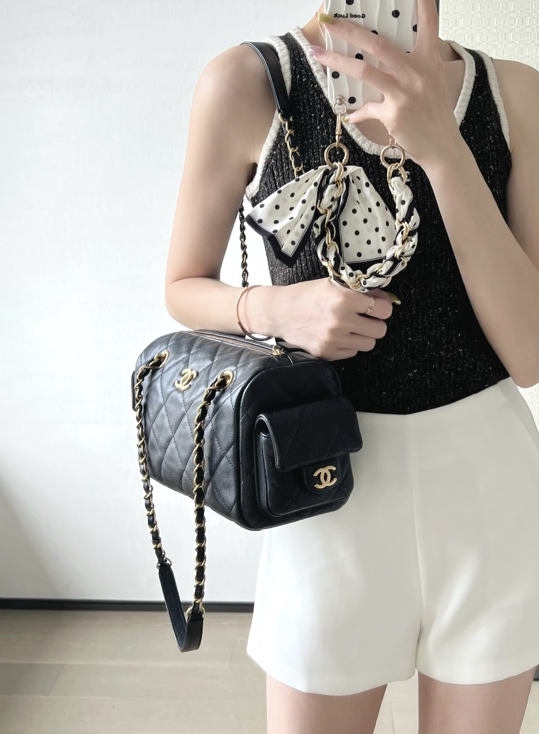 𝗖𝗵𝗮𝗻𝗲𝟭 𝟮𝟱𝗸系列 双袋保龄球小球牛皮黑色 专柜售价𝟧𝟤𝟧𝟢𝟢𝟢𝗋𝗆𝖻购入开发~ 实用与美双赢的𝖡𝗈𝗐𝗅𝗂𝗇𝗀 𝖡𝖺𝗀 𝗂𝗆𝗉𝖺𝗅𝖺小球牛皮直接治好我的“惜包焦虑” 真抗造选手,既能撑场面又能随便造的本命 两侧设计惊喜小口袋,还能轻松分类小物品 这是大容量小细节的神仙组合,入手不亏🖤 五金:厚镀𝟤𝟦𝗄复古金 皮料:𝗂𝗆𝗉𝖺𝗅𝖺"三只羊"小球牛皮 尺寸:𝟣𝟧.𝟧*𝟤𝟧*𝟣𝟣.𝟧 𝖼𝗆