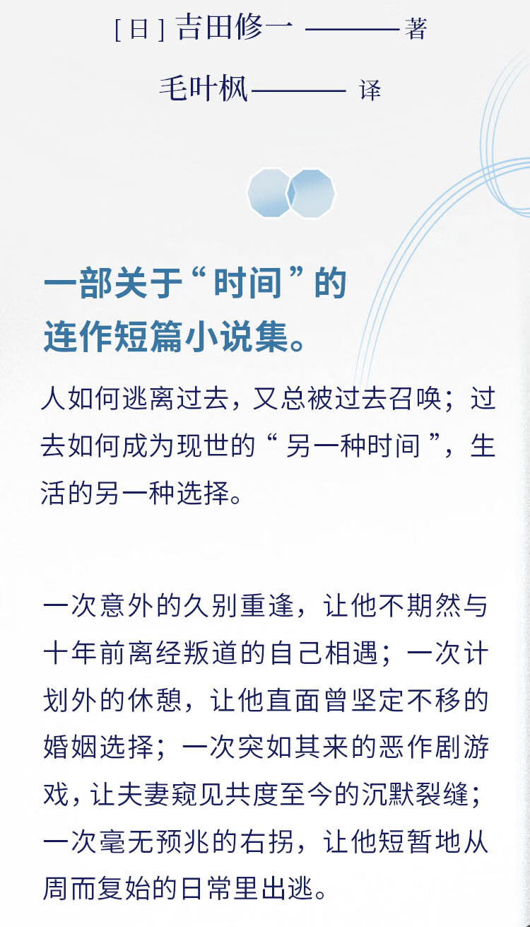 一部关于“时间”的连作短篇小说集。人如何逃离过去,又总被过去召唤;过去如何成为现世的“另一种时间”,生活的另一种选择。