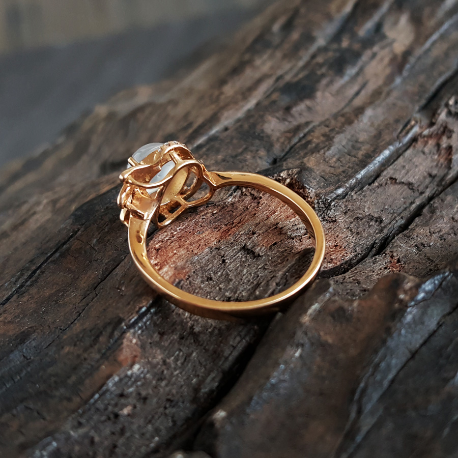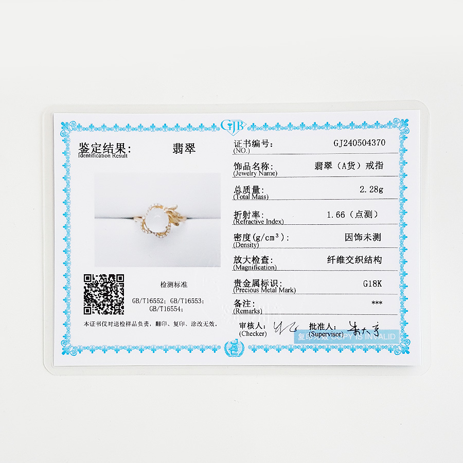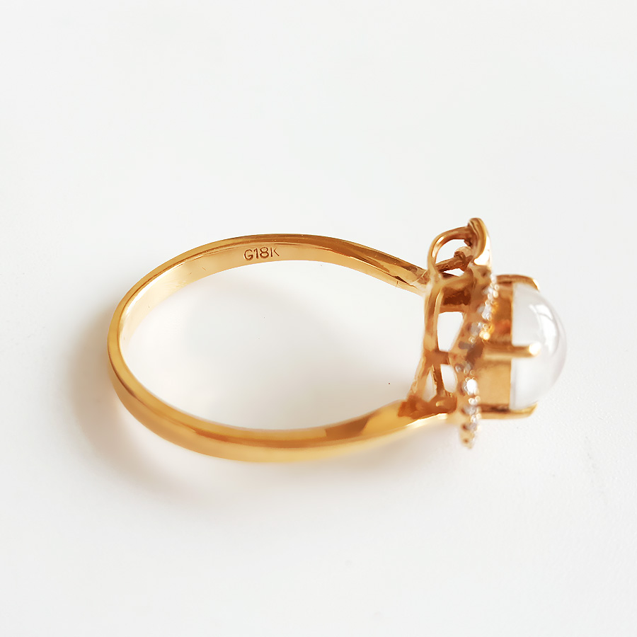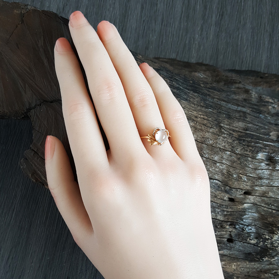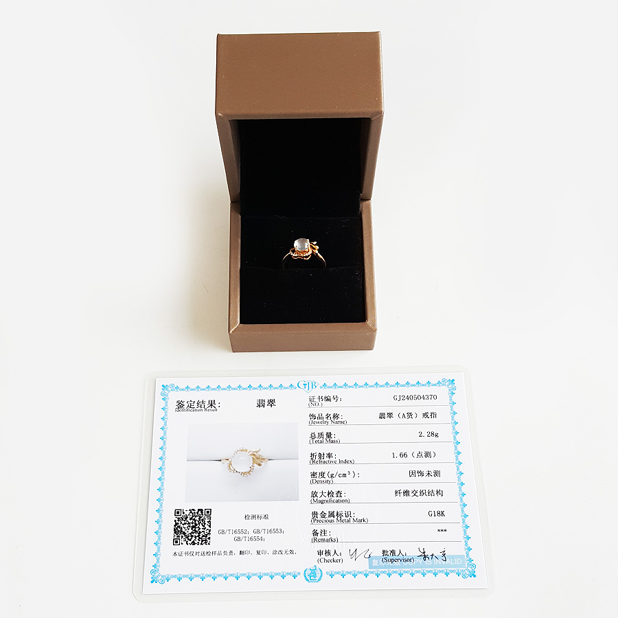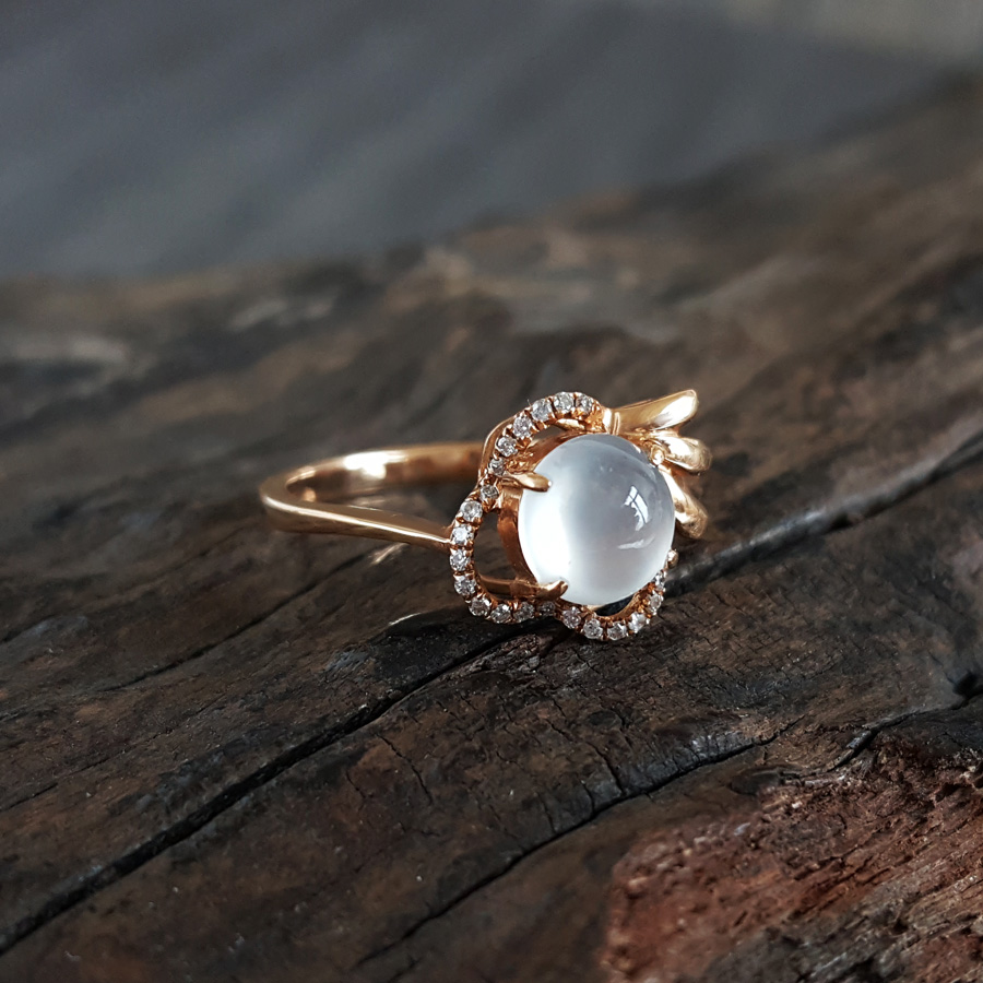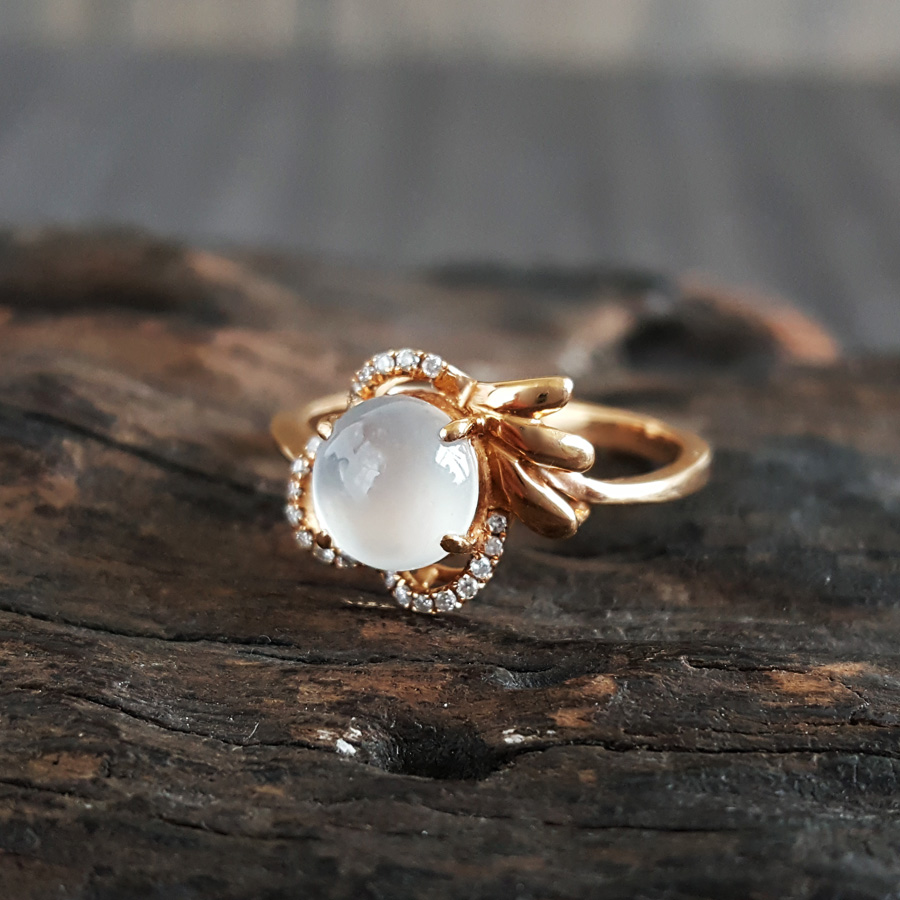 名称 | AU750玫瑰金镶天然冰种白色蛋面翡翠戒指 |